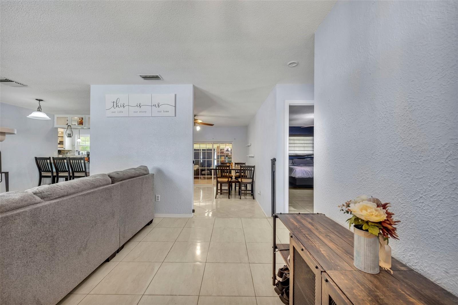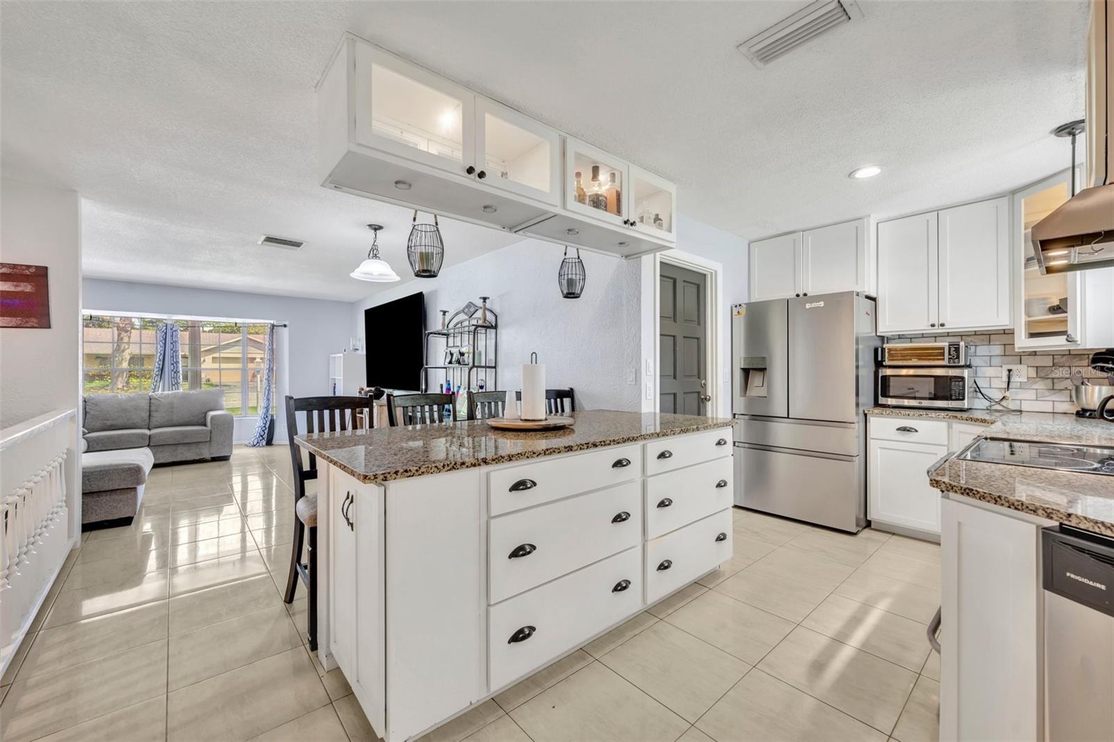 Discover the ease of single-story living in this charming Deltona ranch home. Boasting an open-concept layout and a beautifully updated kitchen, this residence is perfect for modern living. Retreat to the large primary bedroom accompanied with dual vanities and an oversized walk in closet. Enjoy exceptional privacy on the expansive lot, fully enclosed with new vinyl fencing. The beautiful brick exterior adds perfect curb appeal, while the oversized garage provides ample space. Benefit from convenient access to retail, entertainment, and easy access to I-4. Don't miss this opportunity for comfortable and convenient Florida living right here in Central Florida!