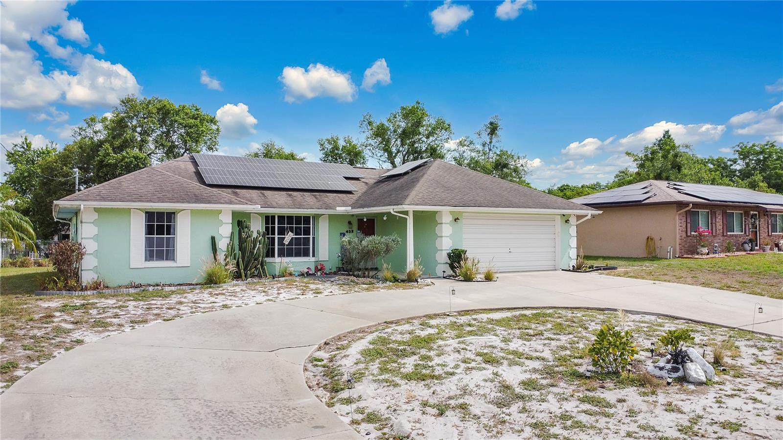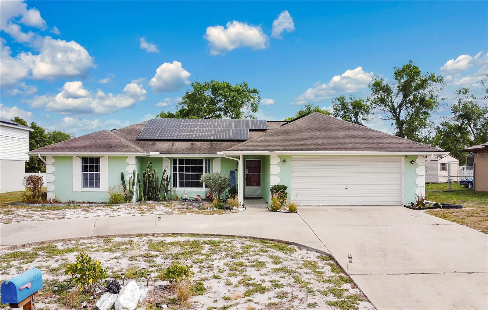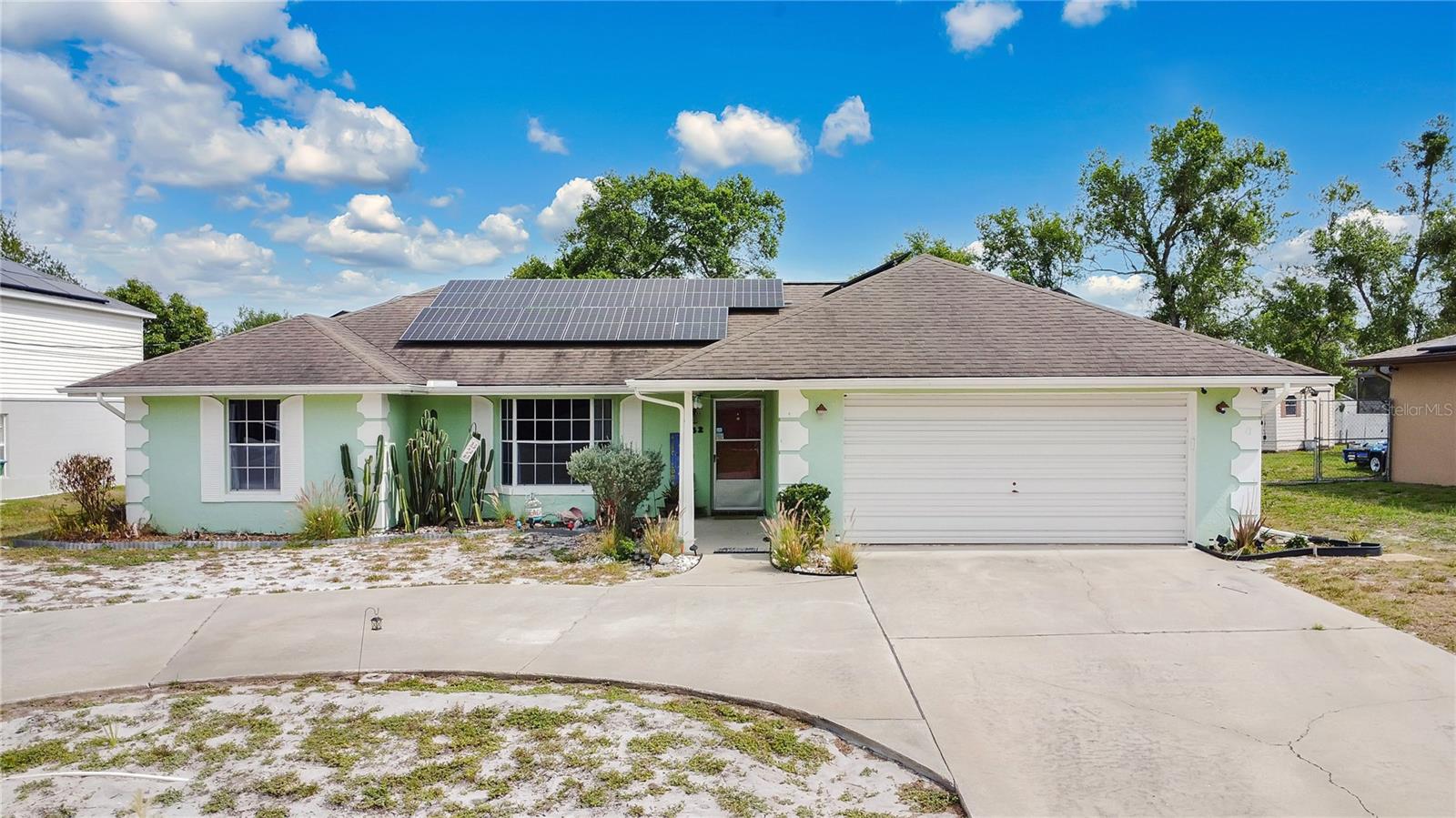 Motivated Seller at this home that can be purchased with NO MONEY DOWN and NO PMI. Welcome to this beautiful 2-bedroom, 2-bath home nestled on a spacious lot with a circular driveway in sunny Deltona, FL . Step inside to find an inviting and open living room that offers plenty of space for relaxing or entertaining. The home features a split floor plan that ensures privacy, with the owner’s suite on one side and guest bedroom on the other. This home has the ability to be EASILY converted into a 3 bedroom. The kitchen is equipped with sleek stainless steel appliances and conveniently located next to the dining area, making meal prep and gatherings a breeze. Step out back to the enclosed patio—perfect for enjoying Florida's sunshine year-round—overlooking a generous backyard with plenty of room to play, garden, or simply unwind. With a newer HVAC system, and solar panels to offset a lot of your utility bill, this home combines comfort, space, and style in a location that feels like home from the moment you arrive. NO HOA to worry about, you have plenty of freedom to make this property your own. Deltona offers residents a perfect blend of suburban tranquility and easy access to the excitement of nearby metropolitan areas. With its close proximity to I-4, residents can enjoy a quick commute to Orlando, Daytona Beach, and the attractions that make Central Florida famous. The near by area is home to a variety of shopping centers, restaurants, and entertainment options, ensuring that all your needs are just a short drive away. Don't miss the opportunity to make it yours!