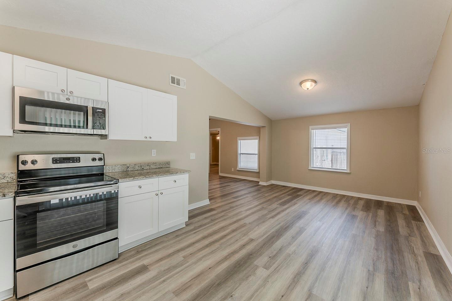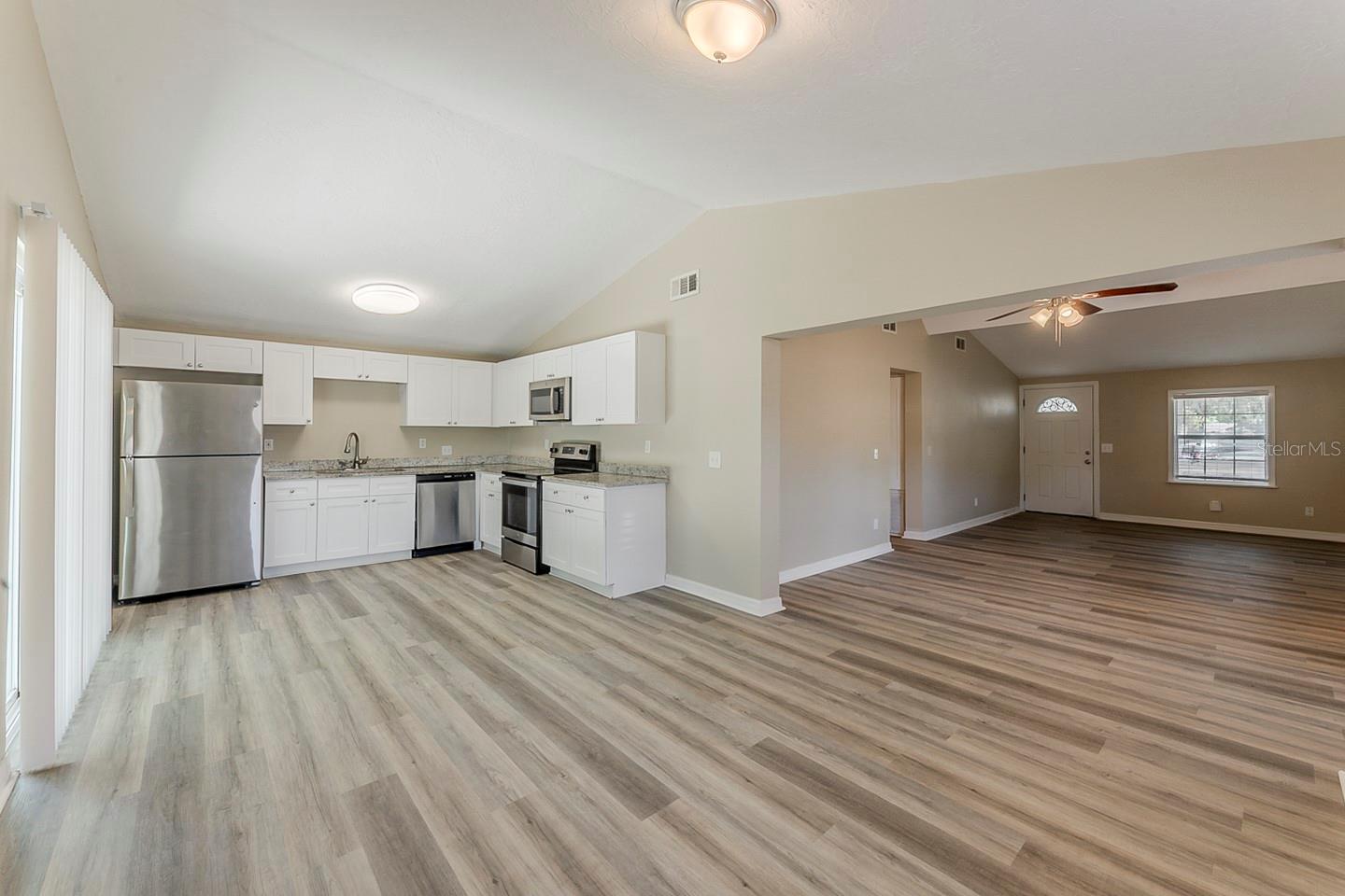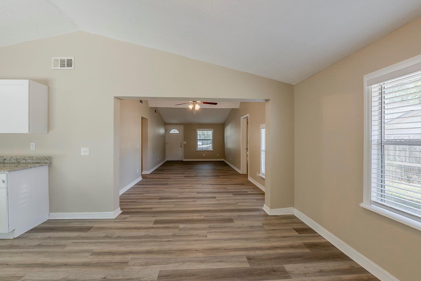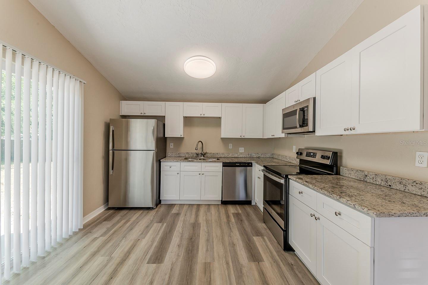 Welcome to this charming single-story home featuring 5 spacious bedrooms and 2 well-appointed bathrooms, perfect for families of all sizes. Step inside to discover an open and inviting floor plan, with durable vinyl and tile flooring that combines style and easy maintenance. The heart of the home is a sleek kitchen equipped with gleaming granite countertops, white cabinetry, and stainless steel appliances — a dream setup for both everyday living and entertaining. The kitchen seamlessly flows into the living and dining areas, creating a bright and cohesive space. Enjoy the comfort of a private fenced backyard, ideal for kids, pets, or weekend gatherings. The covered front porch offers a warm welcome and the perfect spot for relaxing with a morning coffee. A spacious garage provides ample storage and convenient parking. With its modern finishes, functional layout, and prime features, this home is a must-see!