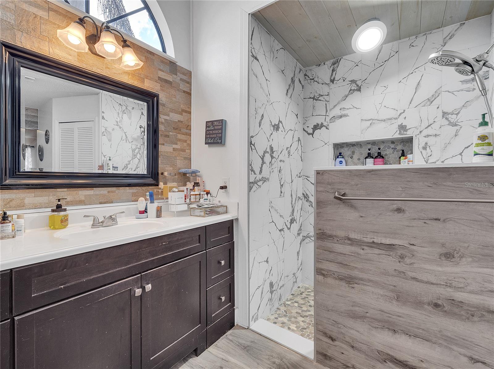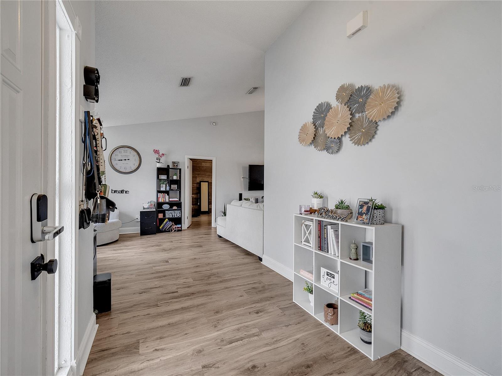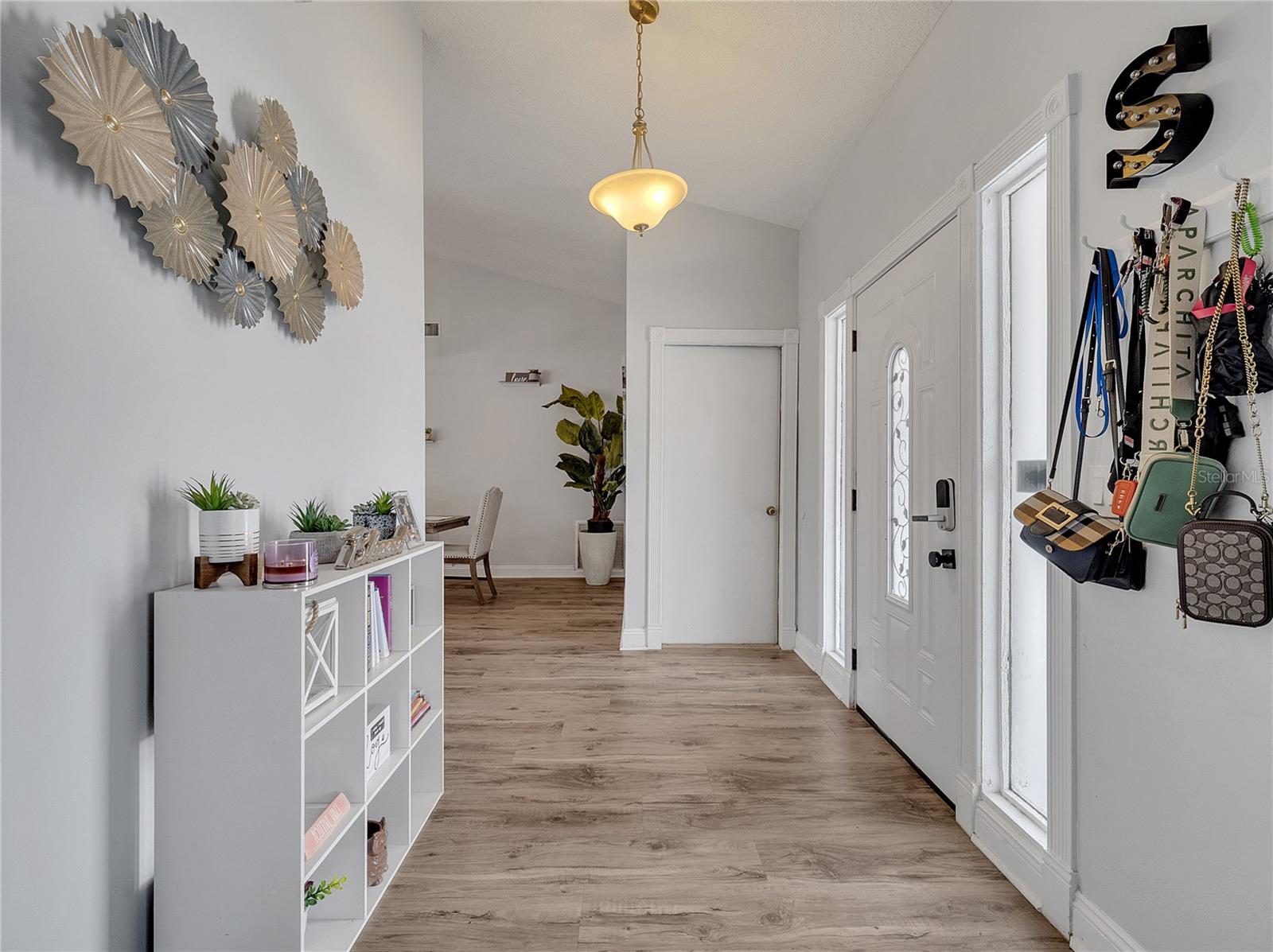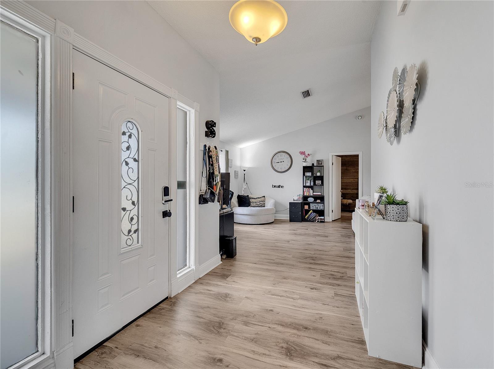 Fall in love with this beautifully updated 3-bedroom, 2-bath home in the desirable Deltona Lakes community! Step inside to discover an open floor plan with vaulted ceilings, offering flexible layout options to suit your lifestyle. Through the front door, you're greeted by a spacious foyer, with a large great room to the left and a formal dining area to the right perfect for both relaxing and entertaining. The private owner’s suite located on the left side of the home, has been tastefully renovated with modern finishes and features a walk-in closet for added convenience. The upgraded en-suite bathroom enhances the contemporary feel, making everyday living a luxurious experience. At the heart of the home, the updated kitchen will delight any home chef, offering a functional and stylish space to prepare meals. The split-bedroom layout places the two guest rooms and second bath on the opposite side of the home, providing comfort and privacy for everyone. Step outside to a screened-in porch overlooking a generously sized, fully fenced backyard perfect for enjoying Florida’s beautiful weather year-round. Recent updates include a brand-new roof, HVAC system, and water softener, ensuring energy efficiency and peace of mind for years to come. Conveniently located near shopping, dining, entertainment, and top-rated schools, this home checks all the boxes for comfort, style, and convenience. Don’t miss your opportunity—schedule your private showing today before it’s gone!