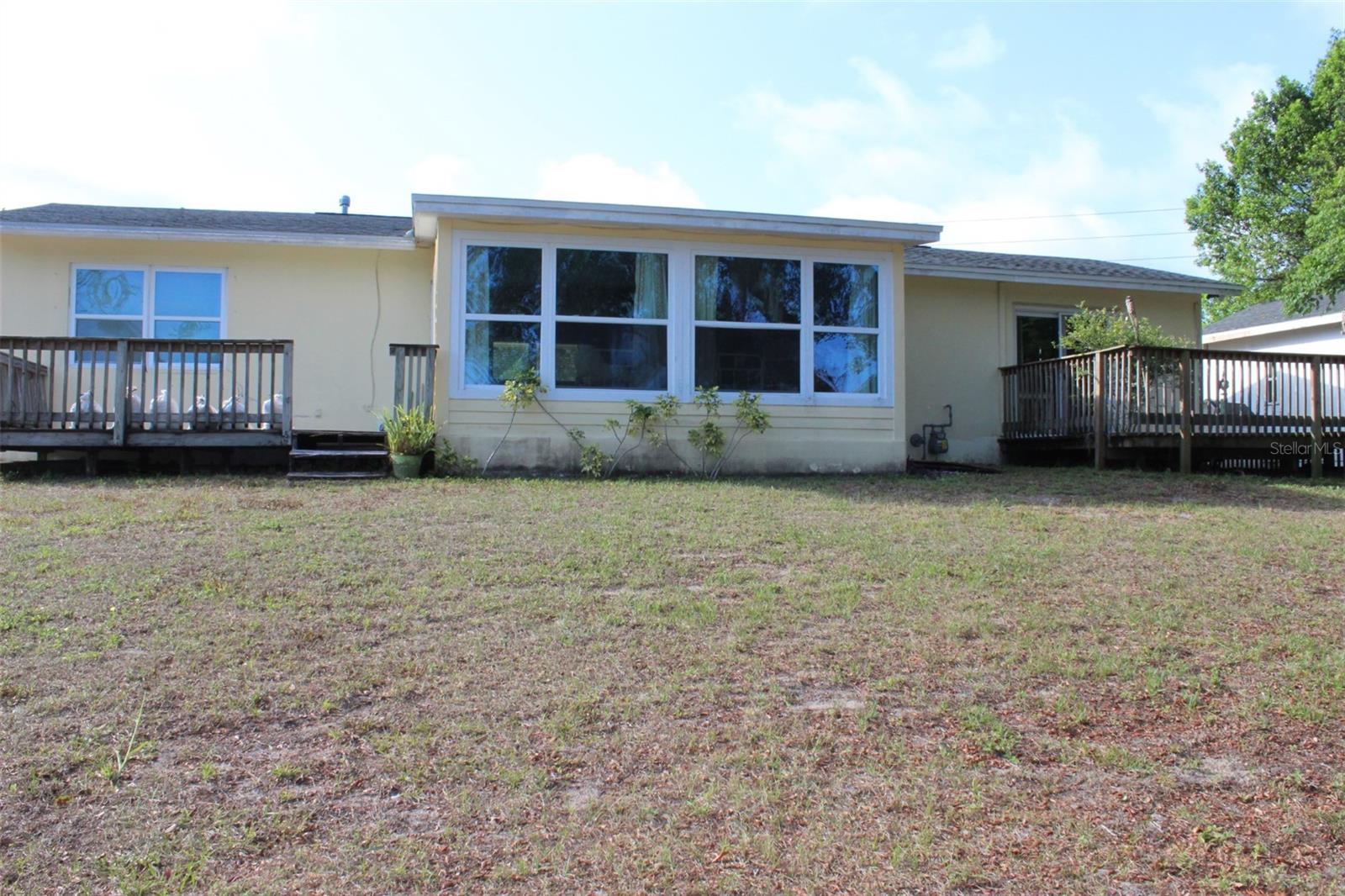 Don't miss out the opportunity to own this 3 bedroom, 2 bathroom home. You could live outside of Orlando but be able to commute in approximately 35 minutes and also enjoy the beach in 30 minutes. Walk through the front door and instantly see a view of your back yard and lake through the picturesque windows of your Bonus/Sunroom. Stroll out the sliding door onto a wooden deck and see a backyard where you have the opportunity to enjoy outside recreation and relaxation. Bedrooms are a split plan, the primary bedroom and bath for your privacy offer a view of your backyard and lake; on the opposite side of the home there are two bedrooms which share a full bath. The garage has been converted and is under a/c. Roof and windows are less than 3 years old and a/c was replaced 4 years ago. Conveniently located to park, banking, and I-4. This home is a MUST SEE!!!