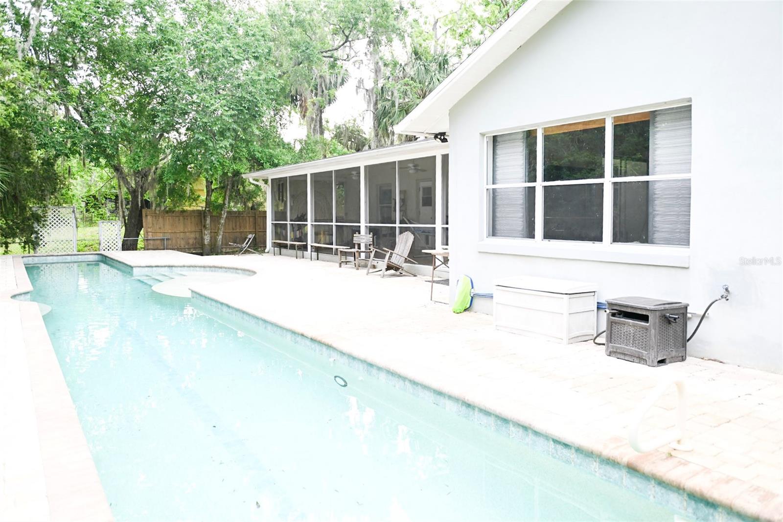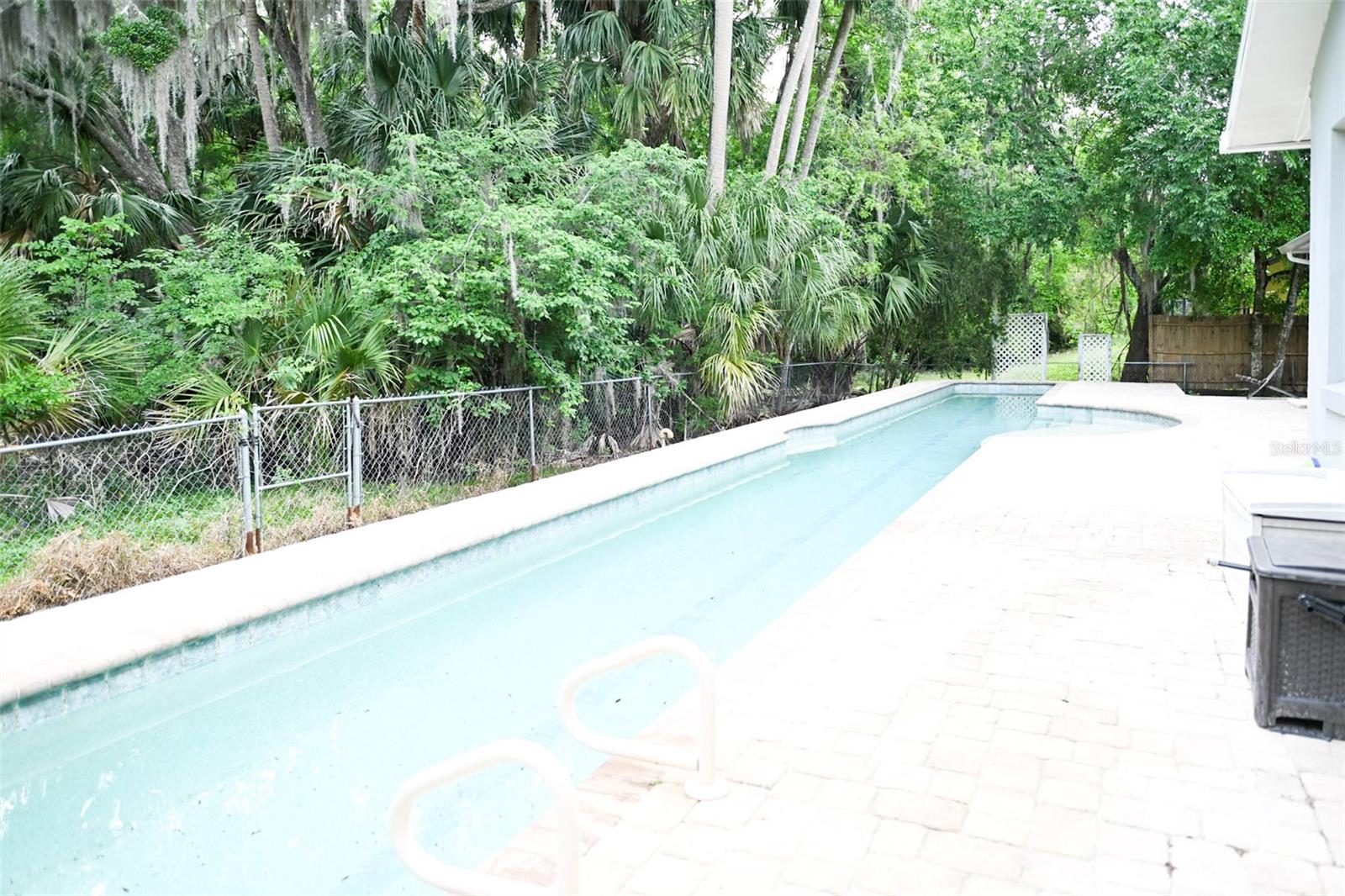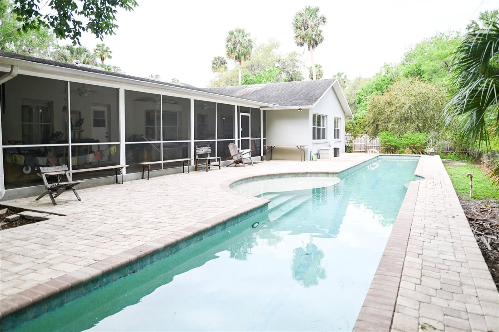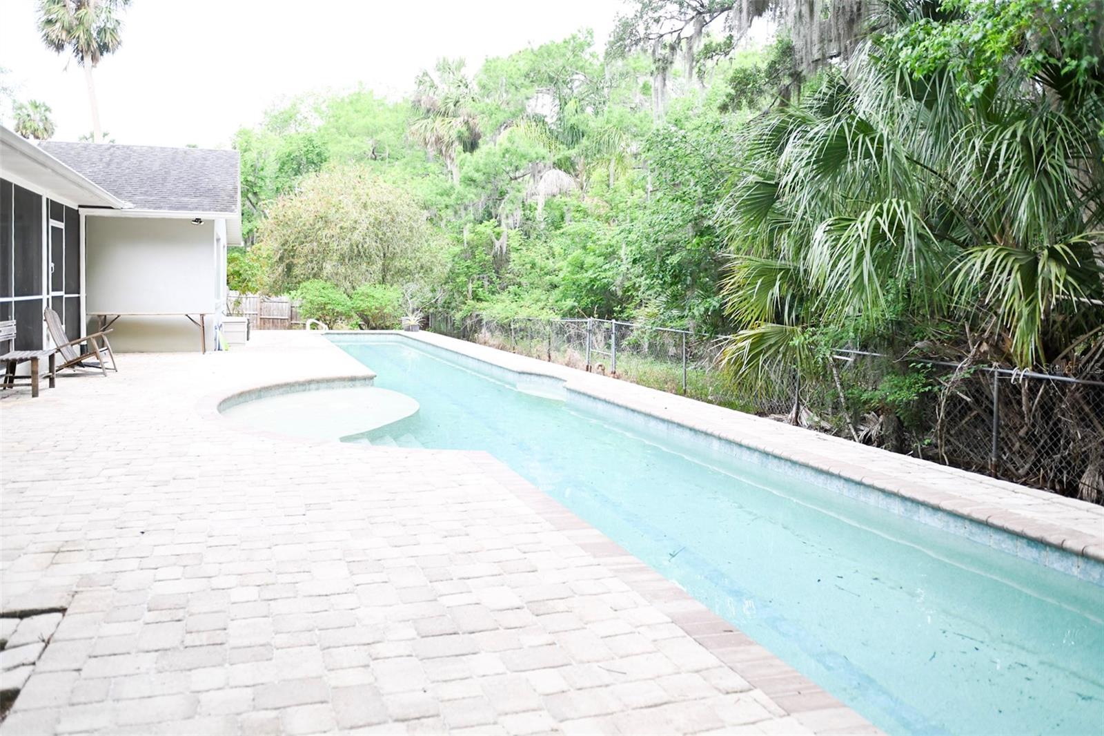 Discover this beautifully designed custom home, perfectly situated on a 1/3-acre lot that backs onto over 60 acres of serene neighborhood conservation land. Ideal for nature lovers and fitness enthusiasts, this residence features a 25-yard saltwater lap pool with a sun shelf, built-in benches, and a low-maintenance paver deck—perfect for relaxation or entertaining. Inside, the open floor plan welcomes you with slate tile flooring and an updated kitchen showcasing granite countertops, a breakfast nook, and seamless flow into the spacious living and dining areas. Large windows frame stunning views of the pool and preserve, bringing in natural light throughout the main living spaces. The split-bedroom layout includes a generous primary suite with a walk-in closet, dual vanities, and a large walk-in shower, plus three additional bedrooms on the opposite side of the home. One bedroom features built-in bookshelves, making it ideal for a home office or study. Step outside to a long, screened-in porch with ceiling fans—accessible from both the living room and second bathroom—for convenient pool access and perfect mornings with coffee or evening gatherings. A fully fenced backyard with doggy-door access to the porch and pool area offers freedom and comfort for your pets. Home features newer HVAC system (2018) and has no HOA, even though it is located in the Stone Island Community. This home has never experienced flooding! Enjoy private lake access just around the corner, complete with a neighborhood boat ramp on Lake Monroe and the St. Johns River. Community amenities include stables, tennis courts, a playground, and a lakeside gazebo with fire pit—ideal for events and gatherings (some fees may apply). With private roads perfect for walking, jogging, or biking, this quiet community offers safety, natural beauty, and a true sense of escape.