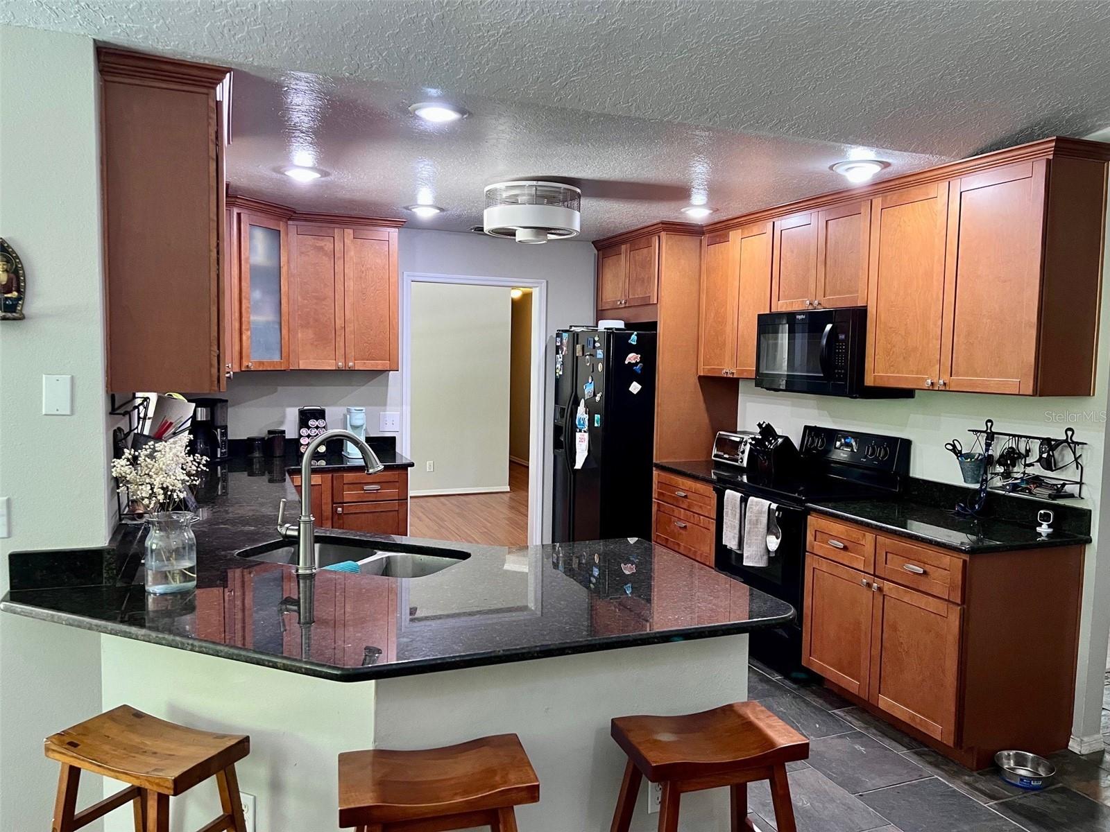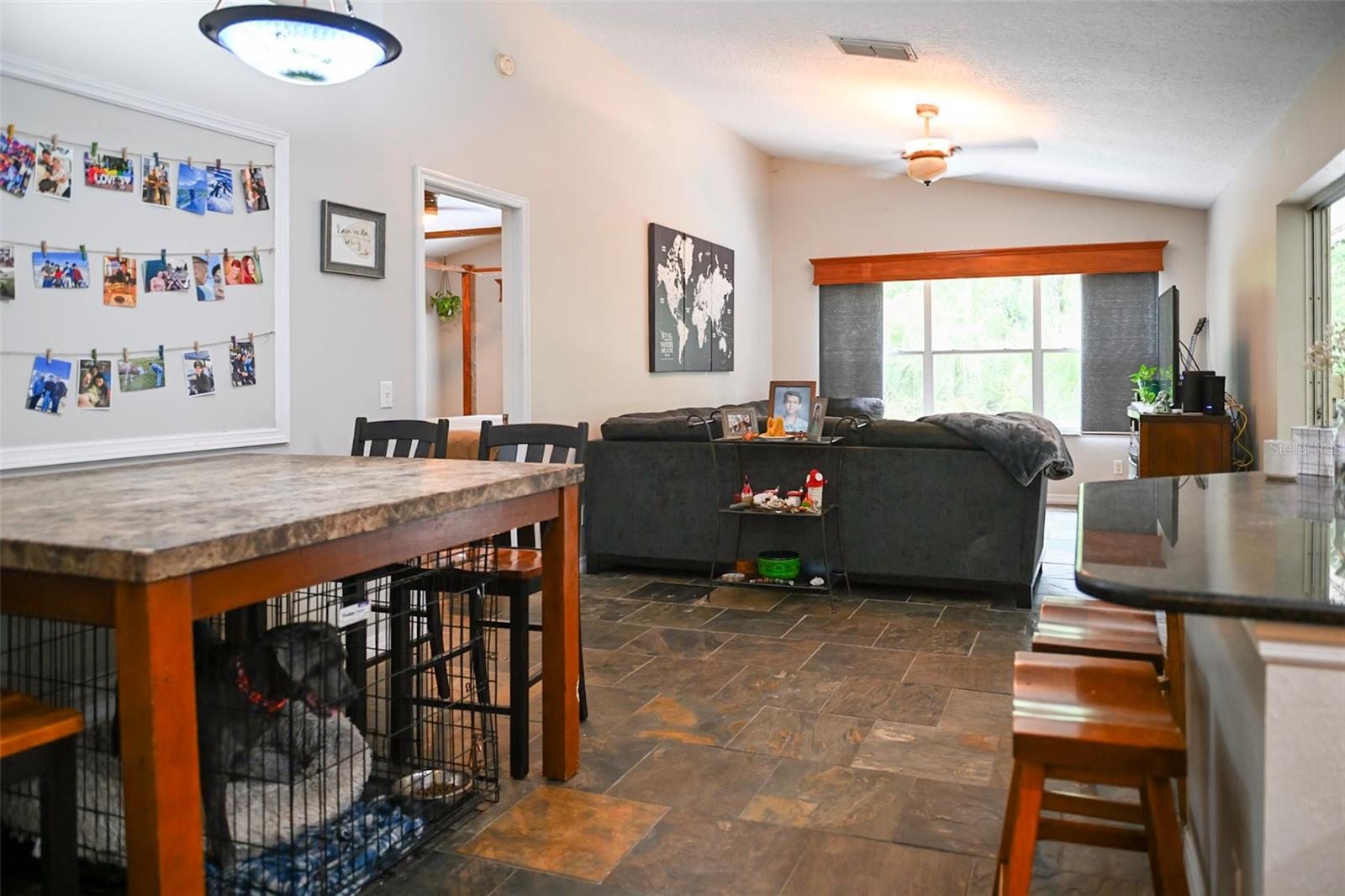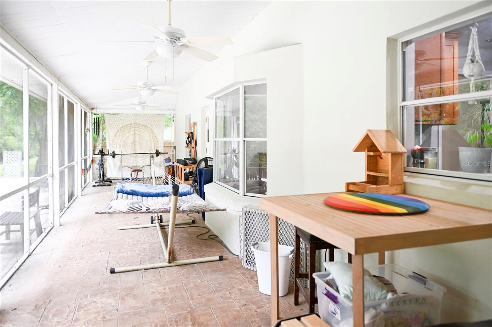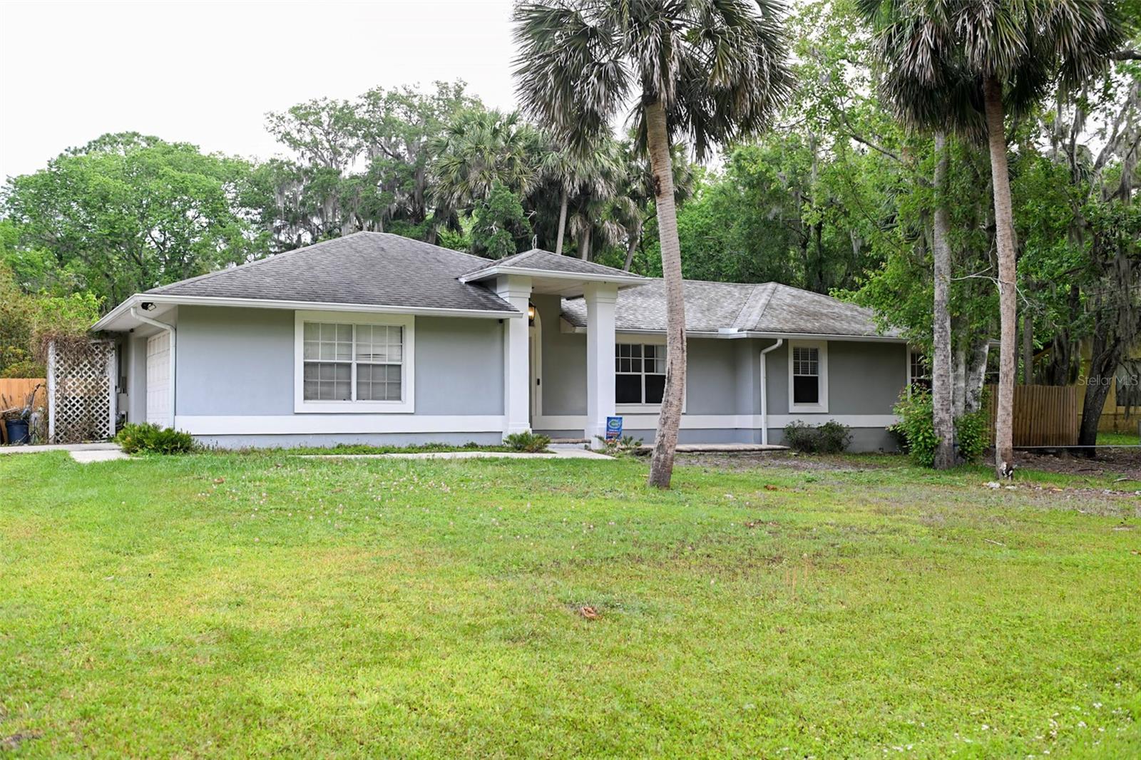Discover this beautifully designed custom home, perfectly situated on a 1/3-acre lot that backs onto over 60 acres of serene neighborhood conservation land. Ideal for nature lovers and fitness enthusiasts, this residence features a 25-yard saltwater lap pool with a sun shelf, built-in benches, and a low-maintenance paver deck—perfect for relaxation or entertaining. Inside, the open floor plan welcomes you with slate tile flooring and an updated kitchen showcasing granite countertops, a breakfast nook, and seamless flow into the spacious living and dining areas. Large windows frame stunning views of the pool and preserve, bringing in natural light throughout the main living spaces. The split-bedroom layout includes a generous primary suite with a walk-in closet, dual vanities, and a large walk-in shower, plus three additional bedrooms on the opposite side of the home. One bedroom features built-in bookshelves, making it ideal for a home office or study. Step outside to a long, screened-in porch with ceiling fans—accessible from both the living room and second bathroom—for convenient pool access and perfect mornings with coffee or evening gatherings. A fully fenced backyard with doggy-door access to the porch and pool area offers freedom and comfort for your pets. Home features newer HVAC system (2018) and has no HOA, even though it is located in the Stone Island Community. This home has never experienced flooding! Enjoy private lake access just around the corner, complete with a neighborhood boat ramp on Lake Monroe and the St. Johns River. Community amenities include stables, tennis courts, a playground, and a lakeside gazebo with fire pit—ideal for events and gatherings (some fees may apply). With private roads perfect for walking, jogging, or biking, this quiet community offers safety, natural beauty, and a true sense of escape.