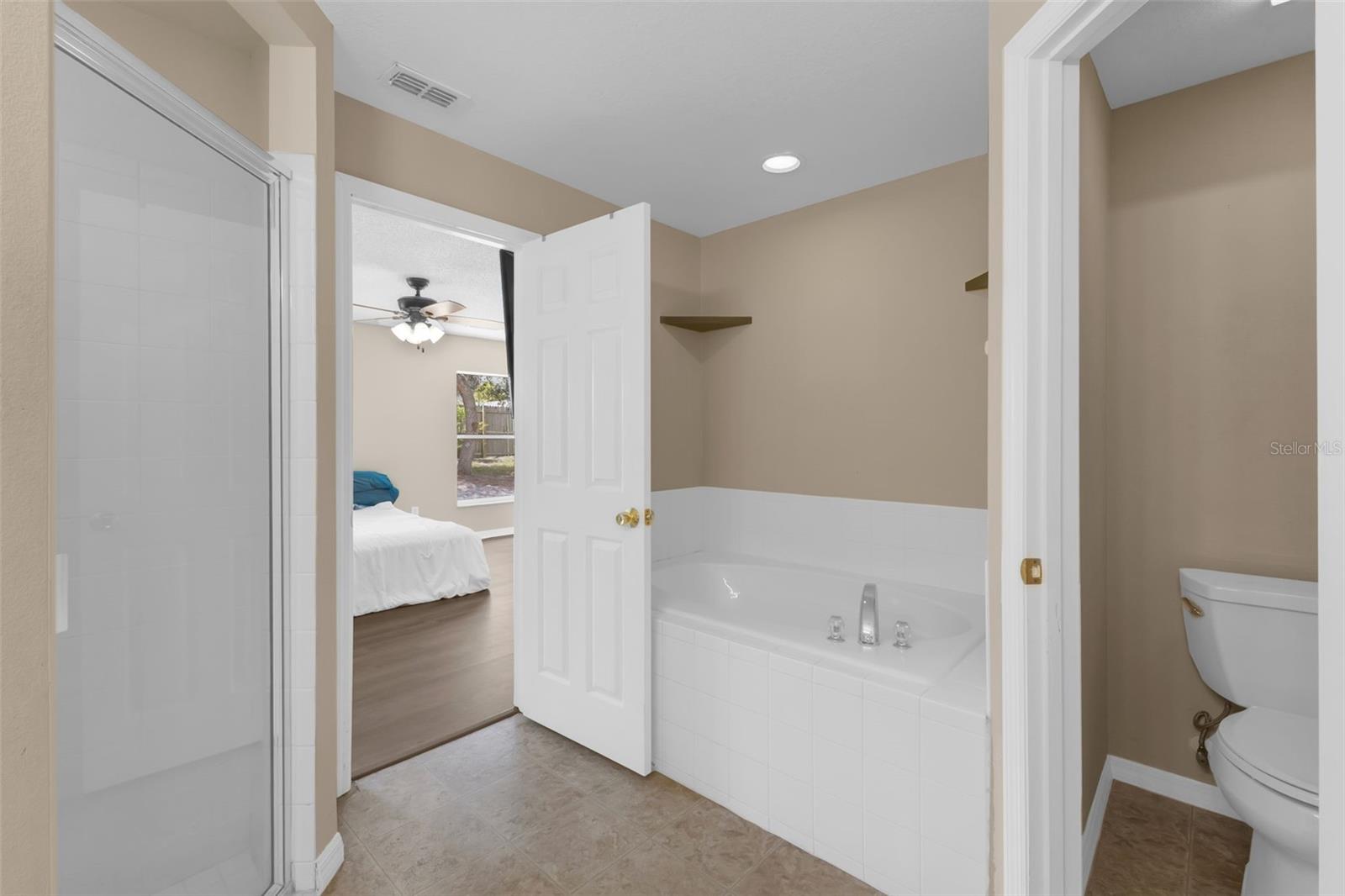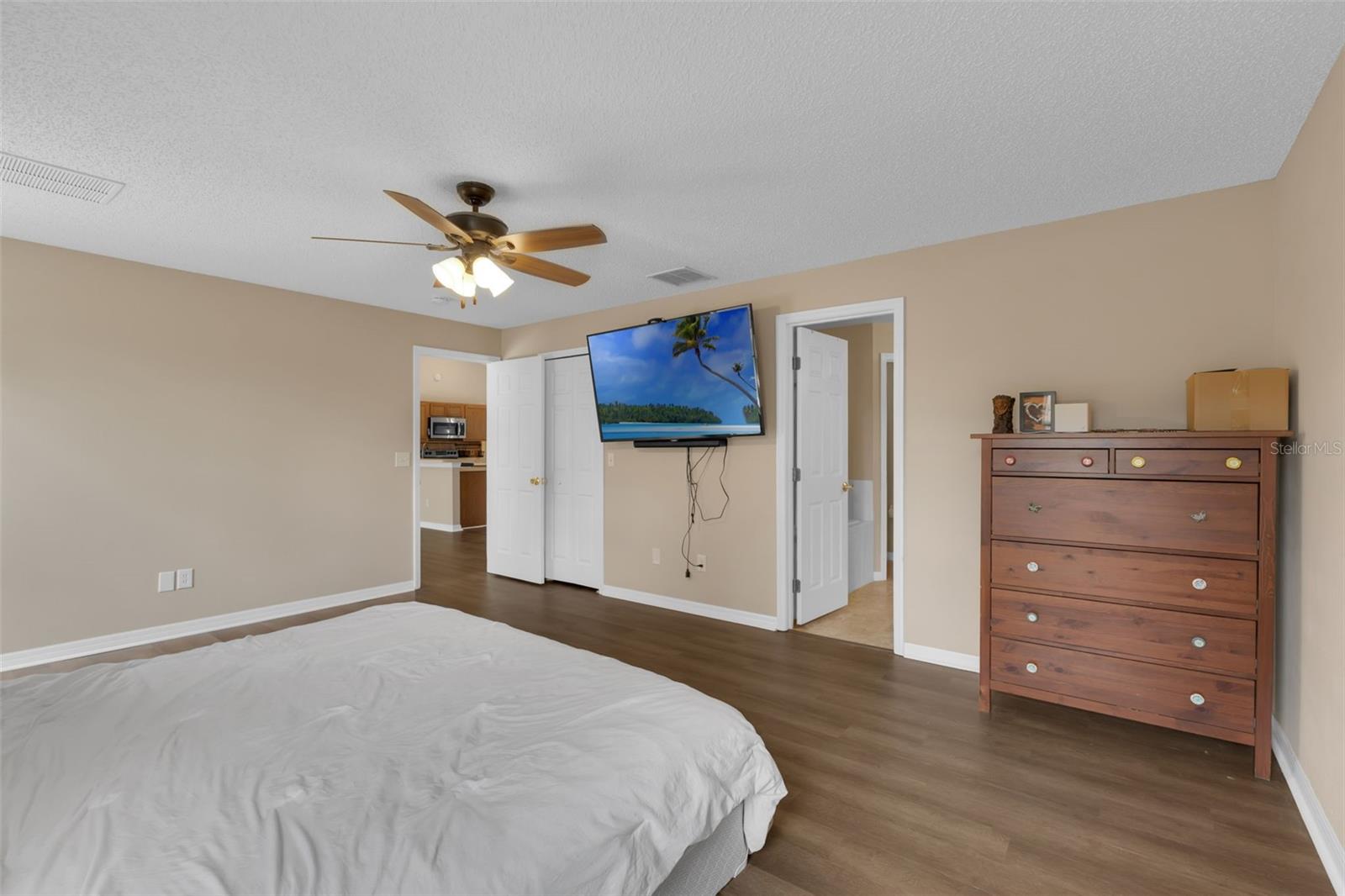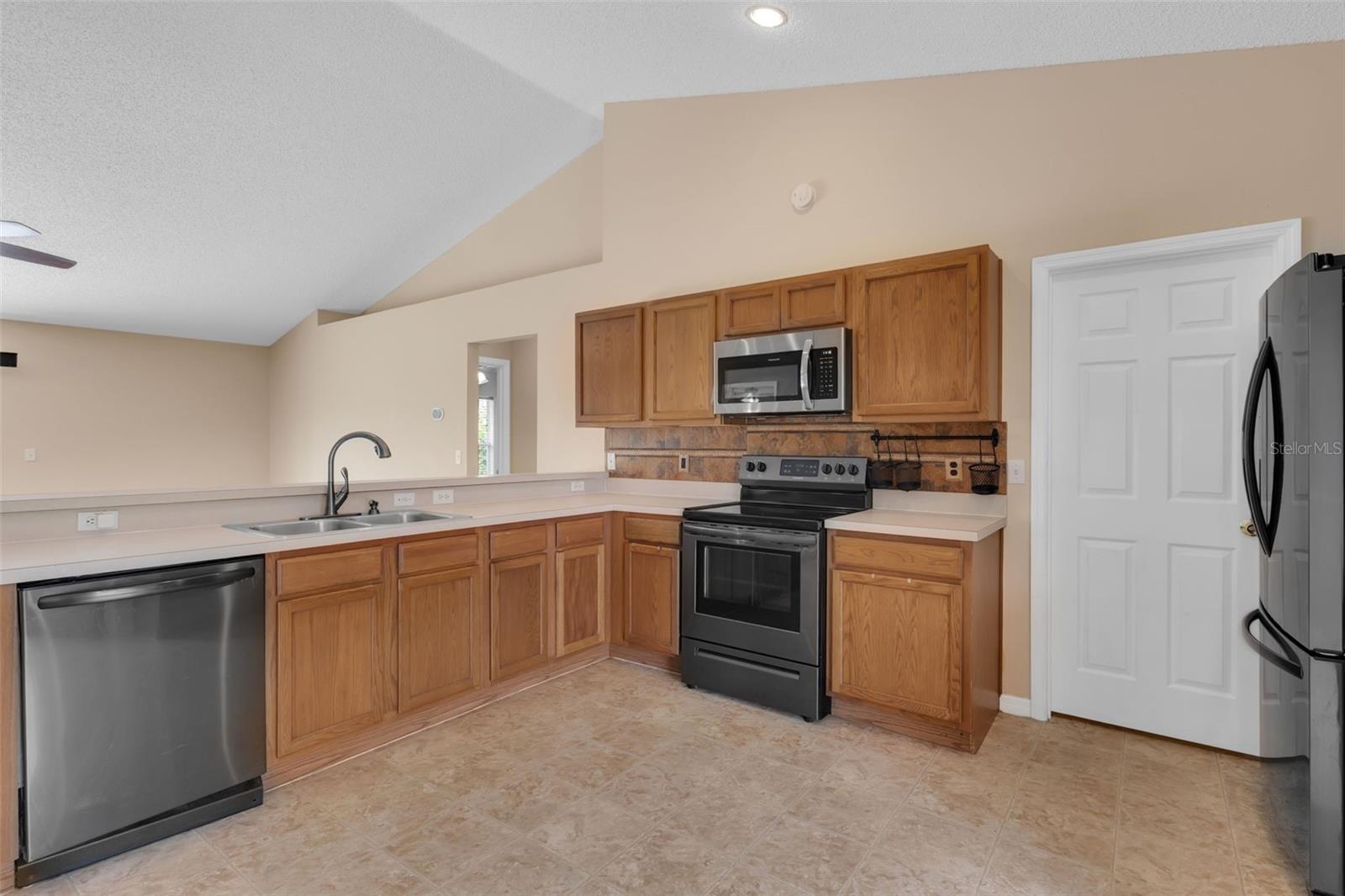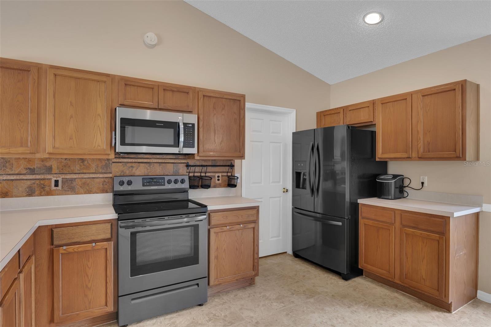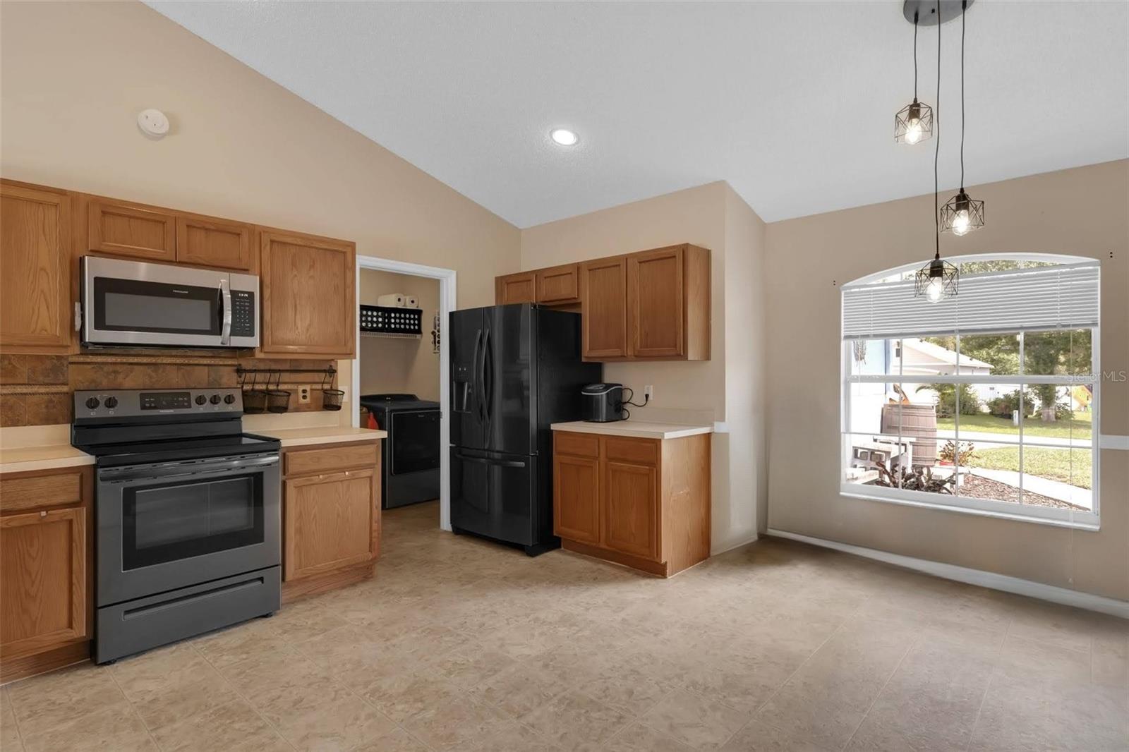One or more photo(s) has been virtually staged. Welcome home to this cozy and inviting 4-bedroom, 2-bathroom gem nestled in the back of a quiet community near the peaceful Deep Creek Preserve, just moments from the Lake Helen border in north Deltona. Enjoy carefree living with brand-new laminate flooring, a 1-year-old roof, and a 3-year-old AC unit, all complemented by freshly painted exteriors. No HOA restrictions mean freedom and flexibility, while the spacious backyard boasts a picturesque shade tree—perfect for a swing and endless relaxation. Inside, discover a generous 18'x20' great room ideal for gatherings, and the impressive 13'x18' primary bedroom comfortably accommodates a king-sized bed and additional furniture. The cozy ensuite features dual sinks, a spacious garden tub, separate standing shower, water closet, and ample elbow room. Convenience is key with included washer and dryer, a coat closet, and a practical eat-in kitchen complete with breakfast bar. Additional peace of mind comes from recently pumped septic (last year), a 2019 water heater, and well-maintained appliances (6 years old). Low monthly bills ($230-250 for power, $30-40 for water) make this move-in-ready home as economical as it is welcoming!