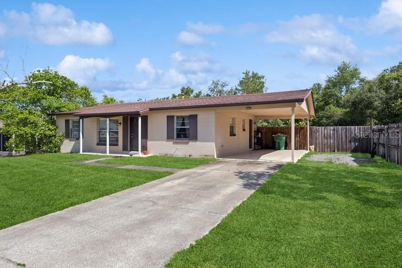 Very nice 3 Bedroom/ 2 Bathroom 1212 sq' house on almost quarter acre. Large fenced in back yard with a fire pit, patio and shed. The gas stove and gas hot water heater help keep the electric bill down. In 2016, New ROOF, and house was painted, the exterior and the interior. New A/C in 2017. In 2023 2nd bath was updated. 3rd bedroom has closet but could be den, or lanai if desired. The nice attached carport with side entrance into house makes it easy to bring in groceries etc without getting wet if raining. this is a great location. Close to I-4, shopping, restaurants and gas stations. Walking distance to the elementary school. House may be under audio video surveillance.