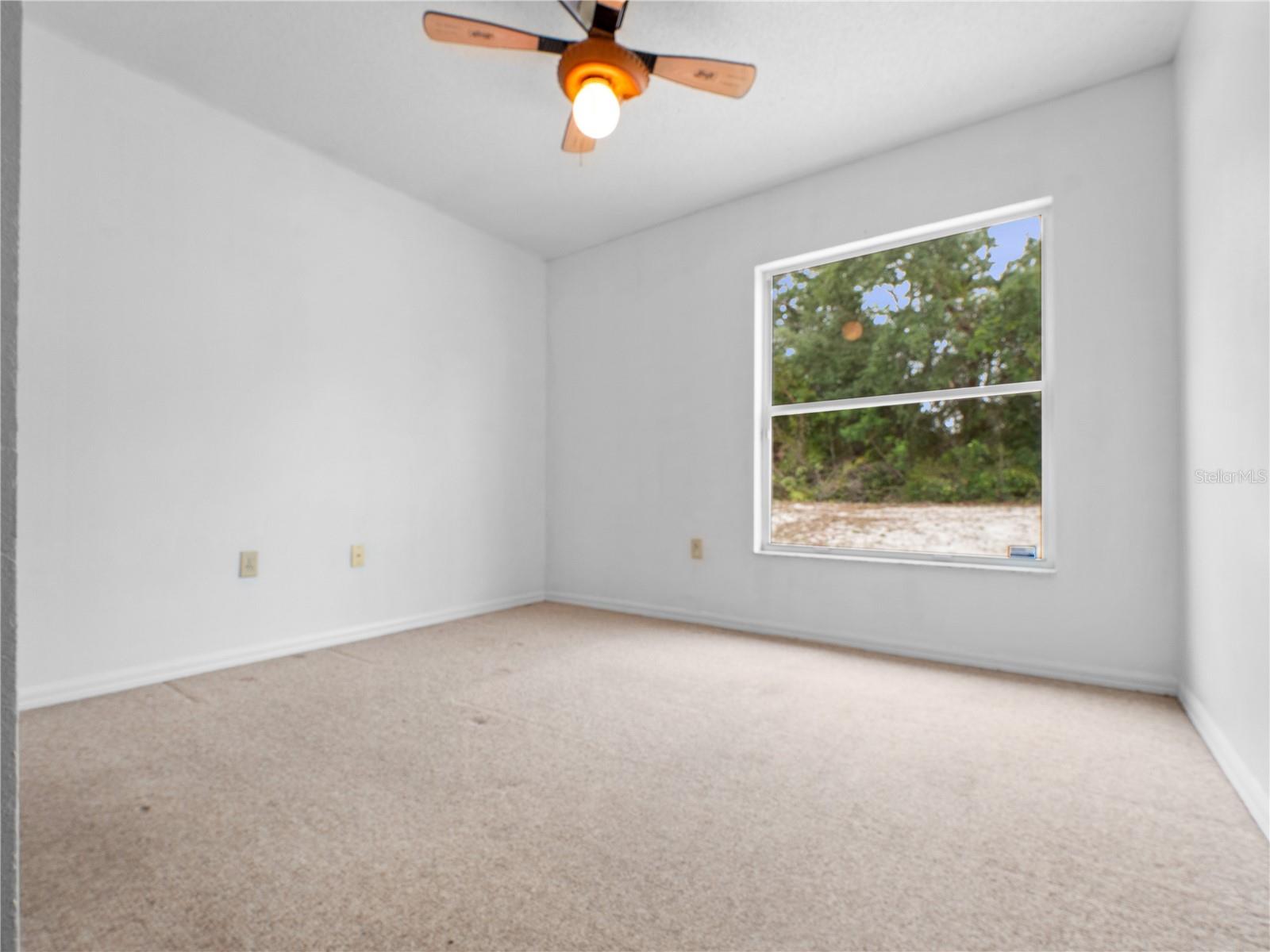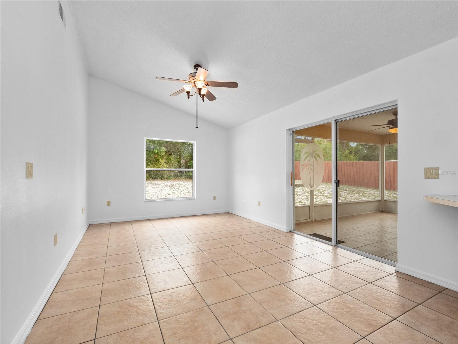 MOVE-IN READY | NO HOA | 2022 Roof | Oversized Lot - Welcome to 2741 Beaver Dr, a delightful 3-bedroom, 2-bath single-family home nestled on a generous lot in a peaceful pocket of Deltona, surrounded by mature trees and no rear neighbors. Step inside to discover a bright and spacious 1,403 sq ft layout, freshly painted and designed for comfort and functionality. The vaulted ceilings, oversized tile floors, and large windows fill the living spaces with natural light, while the split-bedroom design offers the perfect balance of privacy and flow. The heart of the home is the galley-style kitchen with plenty of cabinet space, a breakfast bar, and a clear view of the living and dining areas - perfect for both everyday meals and entertaining. The primary suite features wood-look floors, a walk-in closet, and an en suite bath with a walk-in shower. The two secondary bedrooms are tucked away on the other side of the home, ideal for guests or a home office. Step outside through the sliding glass doors into the screen-enclosed patio—a peaceful spot to unwind with your favorite drink as the Florida sun sets. The fenced backyard is spacious and private, with endless possibilities for a pool, garden, or playground. Notable Updates & Features include 2022 Architectural Shingle Roof, Fresh interior paint, Indoor laundry room, Two-car garage, No HOA, Tile throughout main areas and laminate and carpet in bedrooms, as well as screened-in front and rear porches. This home is conveniently located near I-4, Amazon distribution center, AdventHealth hospital, schools, dog parks, Daytona State College, Lyonia Preserve, movie theaters, and shopping. You’re just a short drive from Daytona Beach, New Smyrna, and Orlando’s world-class theme parks - perfectly positioned between Florida fun and everyday convenience. Whether you're buying your first home, downsizing, or investing, 2741 Beaver Dr checks all the boxes: space, value, location, and peace of mind. Schedule your private showing today before it’s GONE!