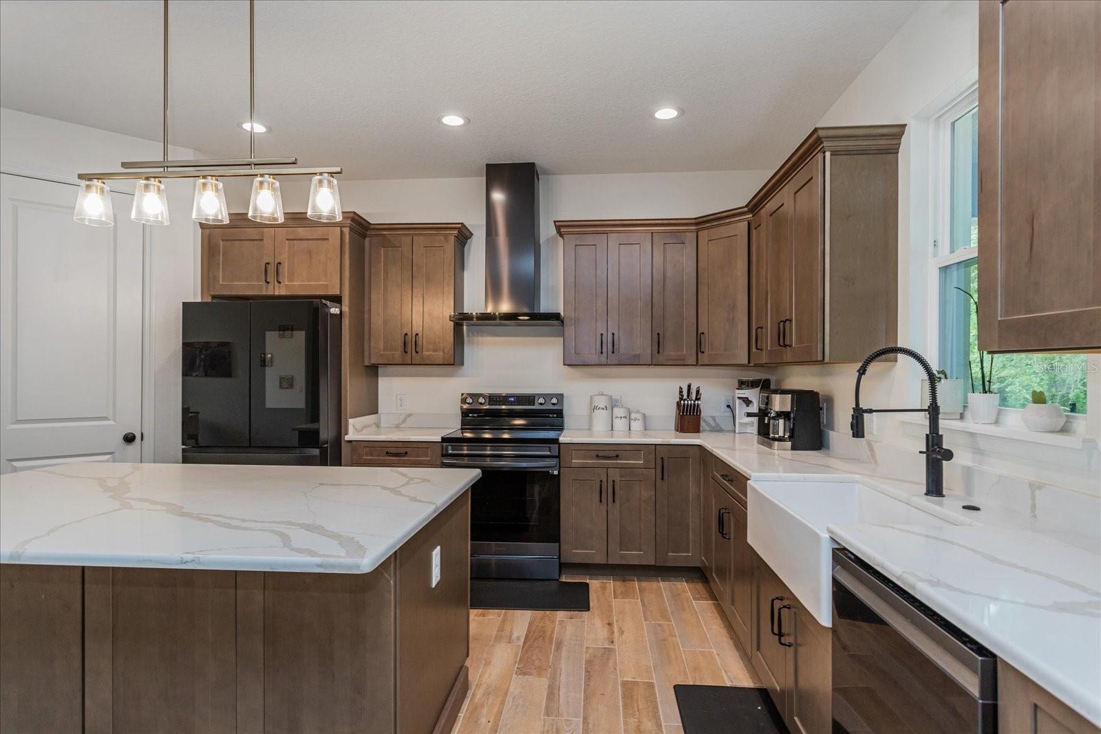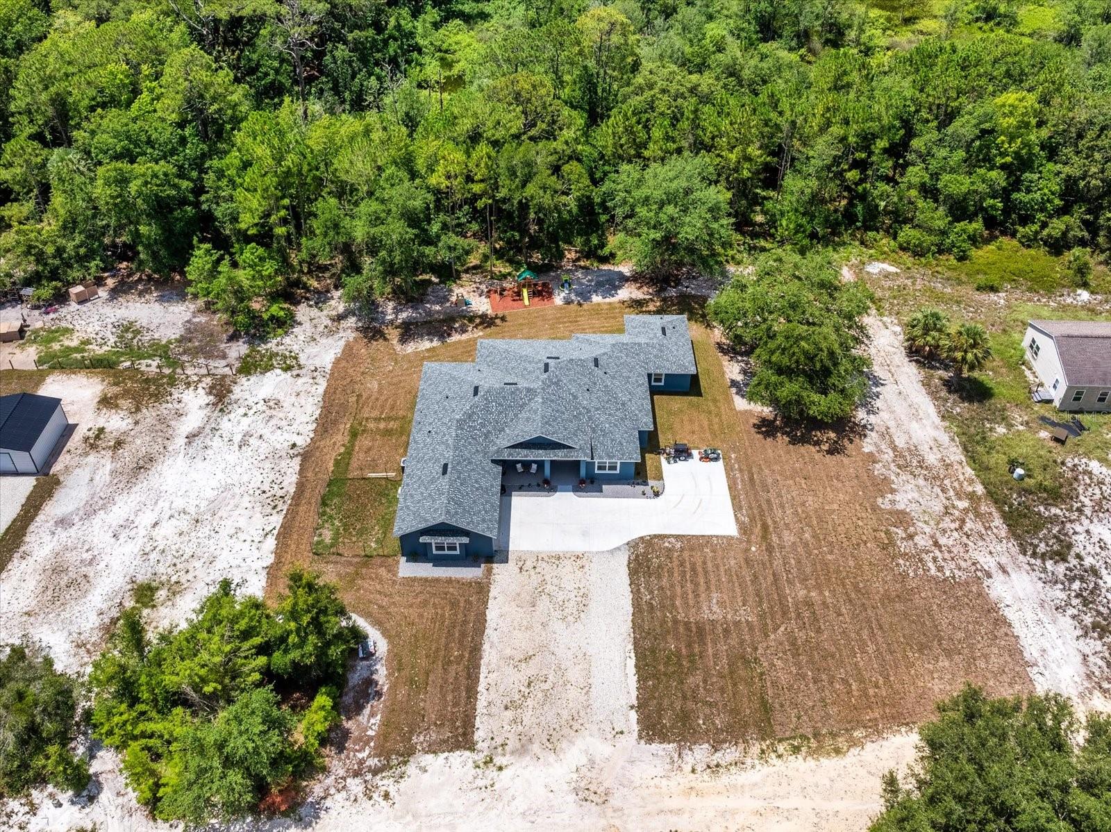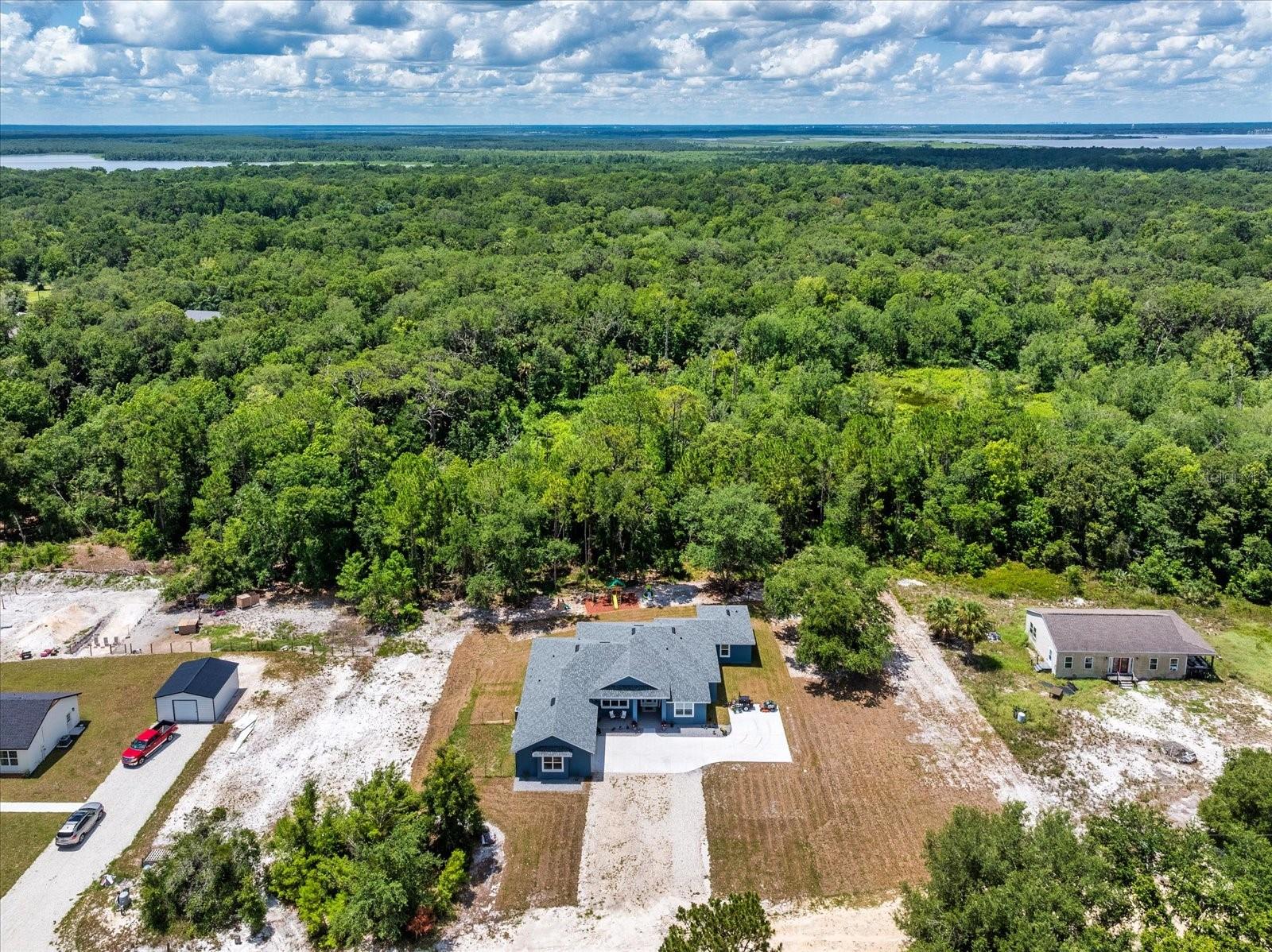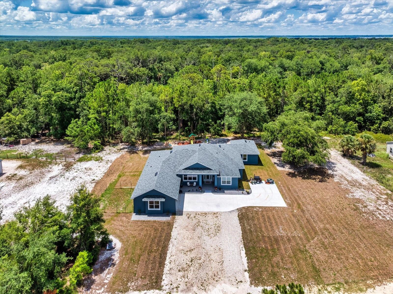 Welcome to 1845 Springhead Dr, located on a serene and scenic 2.5-acre lot in Enterprise. This charming residence was built in 2025 by the leading custom home builder, American Family Homes, and offers the perfect blend of comfort and tranquility, featuring 5 bedrooms, 4 bathrooms, an (IN-LAW SUITE), and a thoughtfully designed open floor plan that makes the most of its generous square footage. When entering the inviting entryway, you’ll be greeted by beautiful plank tile, soaring high ceilings, and an inviting living space abundant with natural light. The well-appointed kitchen will be ideal for entertaining and boasts quartz countertops, a farmhouse sink, 36” cabinets with crown molding, recessed lighting, and an oversized island with a built-in microwave and bar stool seating. You’ll love this home's split floor plan, including a lavish master bedroom featuring a spa-like bathroom suite complete with a spacious walk-in closet, dual granite vanities, and a massive walk-in shower that will take your breath away. The in-law suite is ideally situated on the opposite side of the home and has its own living space, complete with a kitchenette and master bath featuring a walk-in closet, dual granite vanities, and a luxurious walk-in shower with a frameless glass enclosure. There are also 3 additional bedrooms on this side of the home that share 2 additional guest bathrooms complete with modern fixtures and a shower and tub combo. Let's not forget the expansive lanai located off of the great room and in-law suite that will be ideal for outdoor gatherings and relaxation. This home also offers a water treatment system, double-pane windows, a fenced-in area for pets, and a transferable builder's warranty. With no rear neighbors and easy access to nearby trails and Lake Monrow, this home offers a lifestyle that’s both peaceful and convenient. Don’t miss this opportunity to own a piece of old Florida charm in beautiful Enterprise. Book your private showing today!
