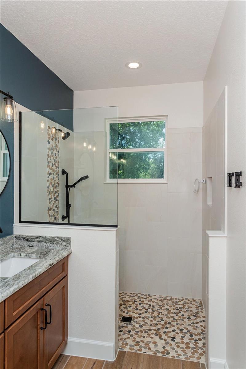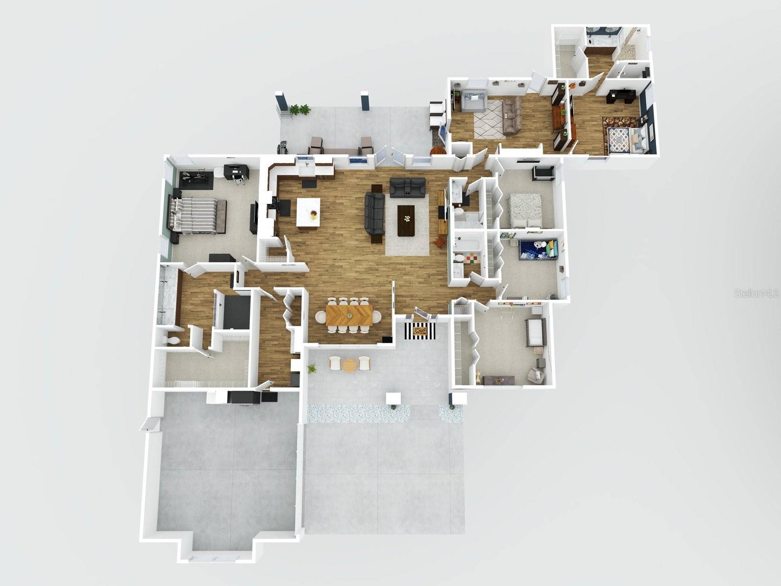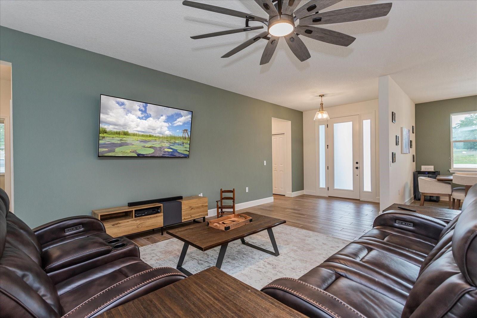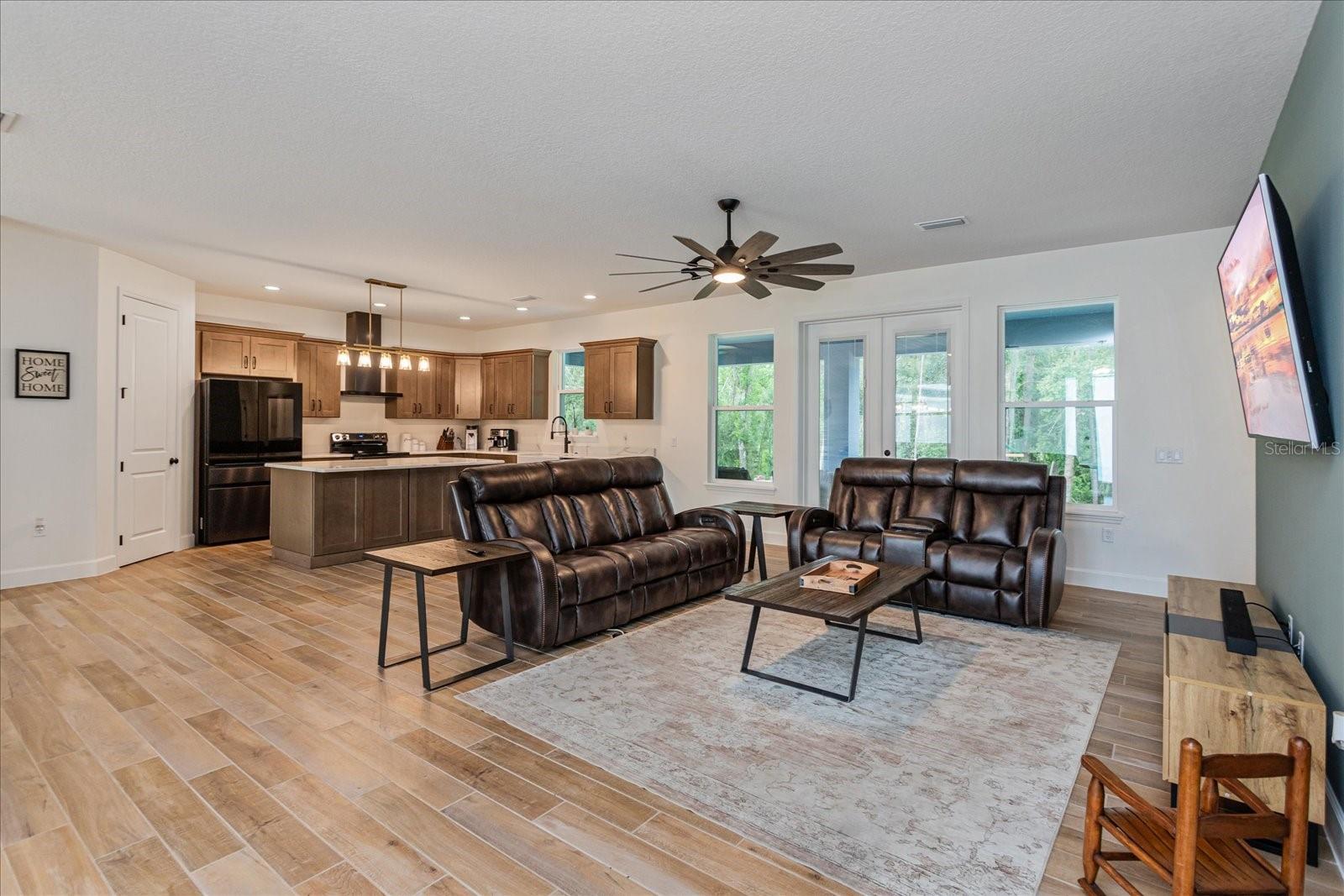 Welcome to 1845 Springhead Dr, located on a serene and scenic 2.5-acre lot in Enterprise. This charming residence was built in 2025 by the leading custom home builder, American Family Homes, and offers the perfect blend of comfort and tranquility, featuring 5 bedrooms, 4 bathrooms, an (IN-LAW SUITE), and a thoughtfully designed open floor plan that makes the most of its generous square footage. When entering the inviting entryway, you’ll be greeted by beautiful plank tile, soaring high ceilings, and an inviting living space abundant with natural light. The well-appointed kitchen will be ideal for entertaining and boasts quartz countertops, a farmhouse sink, 36” cabinets with crown molding, recessed lighting, and an oversized island with a built-in microwave and bar stool seating. You’ll love this home's split floor plan, including a lavish master bedroom featuring a spa-like bathroom suite complete with a spacious walk-in closet, dual granite vanities, and a massive walk-in shower that will take your breath away. The in-law suite is ideally situated on the opposite side of the home and has its own living space, complete with a kitchenette and master bath featuring a walk-in closet, dual granite vanities, and a luxurious walk-in shower with a frameless glass enclosure. There are also 3 additional bedrooms on this side of the home that share 2 additional guest bathrooms complete with modern fixtures and a shower and tub combo. Let's not forget the expansive lanai located off of the great room and in-law suite that will be ideal for outdoor gatherings and relaxation. This home also offers a water treatment system, double-pane windows, a fenced-in area for pets, and a transferable builder's warranty. With no rear neighbors and easy access to nearby trails and Lake Monrow, this home offers a lifestyle that’s both peaceful and convenient. Don’t miss this opportunity to own a piece of old Florida charm in beautiful Enterprise. Book your private showing today!