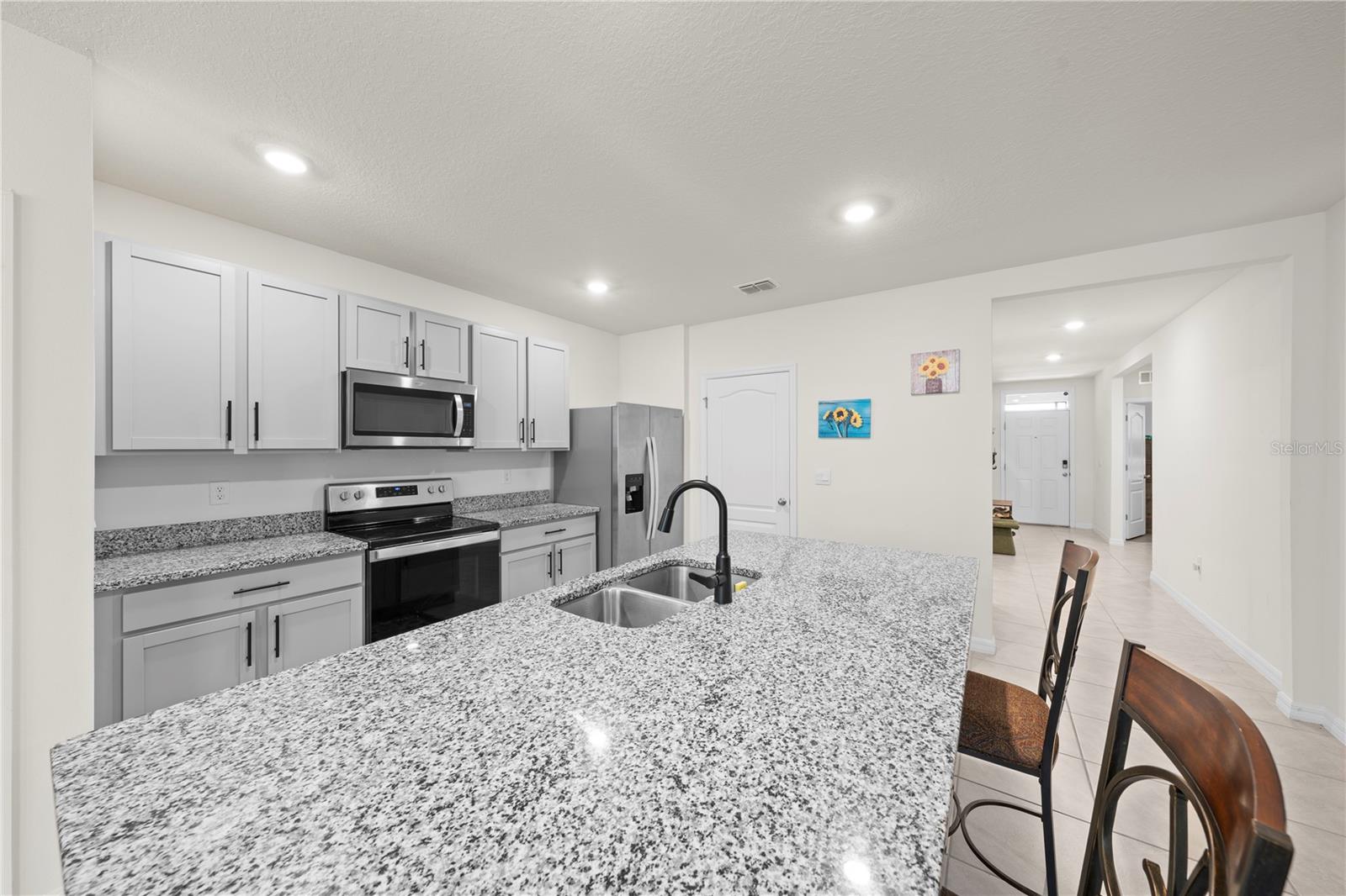 Sellers are motivated. The seller will contribute $10,000 towards the buyers' closing costs, thus allowing the buyers to save a lot on out-pocket costs and expenses. If you love Central Florida, then you will love Deltona. Welcome home to Deltona, Florida. Deltona is half-way between Orlando and Daytona. Only 30 to 45 minutes from Orlando, the theme parks and Downtown Orlando, Florida, makes this an awesome location. Also, only 30–45 minutes from the World Famous Daytona Beach, you have the best of both worlds. Even closer to the beach is New Smyrna Beach, which is 15–20 minutes away. This home is almost NEW because it was only built in 2023. This home consists of a NEWER three bedrooms and two baths tucked away in a quaint neighborhood! This home was recently built by D.R Horton and is the Aria Floor Plan Model. As mentioned, this home is nearly NEW. However, the home has recent upgrades with NEW laminate/vinyl floors in all the rooms. When you enter the home, the open concept is ideal for entertaining guests, whether in the kitchen or in the family room! The major upgrades of granite countertops and stainless-steel appliances allow for the glamour of the kitchen to shine with brilliance. Embrace the outdoors on a screened lanai with plenty of space to enjoy guests. Literally, steps away is the East Central Regional Trail, which is a walking and biking trail that stretches 52 miles from Deltona to Osteen near the east coast of Florida. Sellers welcome all buyers including FHA, USDA, VA and Conventional Loans!