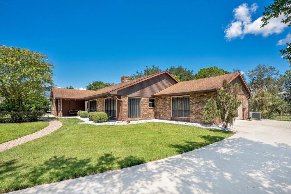 Stunning Custom Brick LAKEFRONT Home – A Rare Gem on .82 Acres! Welcome to your dream lakefront retreat! This impressive 3+bedroom, 2-bath with option for the 4th bedroom/office space/Bonus room, custom brick home is nestled in one of West Volusia’s most desirable waterfront communities, offering the perfect blend of space, style, and serenity. Set on a beautifully landscaped .82-acre lot, the property makes a bold first impression with its circular driveway, oversized side-entry garage, and inviting covered entryway with a stone-floor foyer. Step inside to discover a modern split-bedroom layout filled with natural light and breathtaking lake views from multiple areas of the home. The spacious great room boasts a stunning stone wood-burning fireplace, perfect for cozy evenings, and seamlessly flows into a grand formal dining room with a convenient pass-through window. The chef’s kitchen is a showstopper—featuring granite countertops, custom wood cabinetry, stainless steel appliances, tile backsplash, a built-in desk, and a walk-in pantry—ideal for everyday living and entertaining alike. New porcelain tile flooring (2024) adds a fresh, elegant touch throughout. Enjoy Florida living at its finest on your expansive 35' x 12' screened-in porch or the 442 sq ft open deck, both overlooking the peaceful lake and lush backyard. With three sets of sliding glass doors, indoor-outdoor living is effortless. Additional highlights include Fully remodeled bathrooms, Spacious 15’ x 15’ formal dining room, Generous inside laundry/utility room with sink, cabinetry, and second refrigerator, Architectural shingle roof (2019) Just minutes from the Orlando metro area and Florida’s beautiful beaches, this property combines prime location, timeless design, and tranquil lakefront living. Don’t miss the opportunity to make this exceptional home yours—schedule your private tour today!