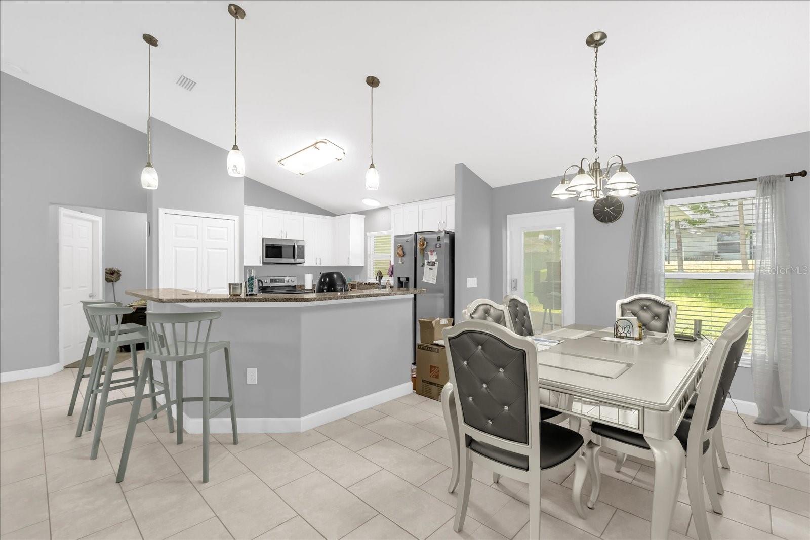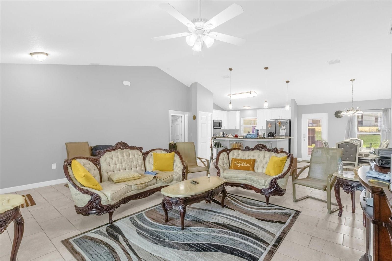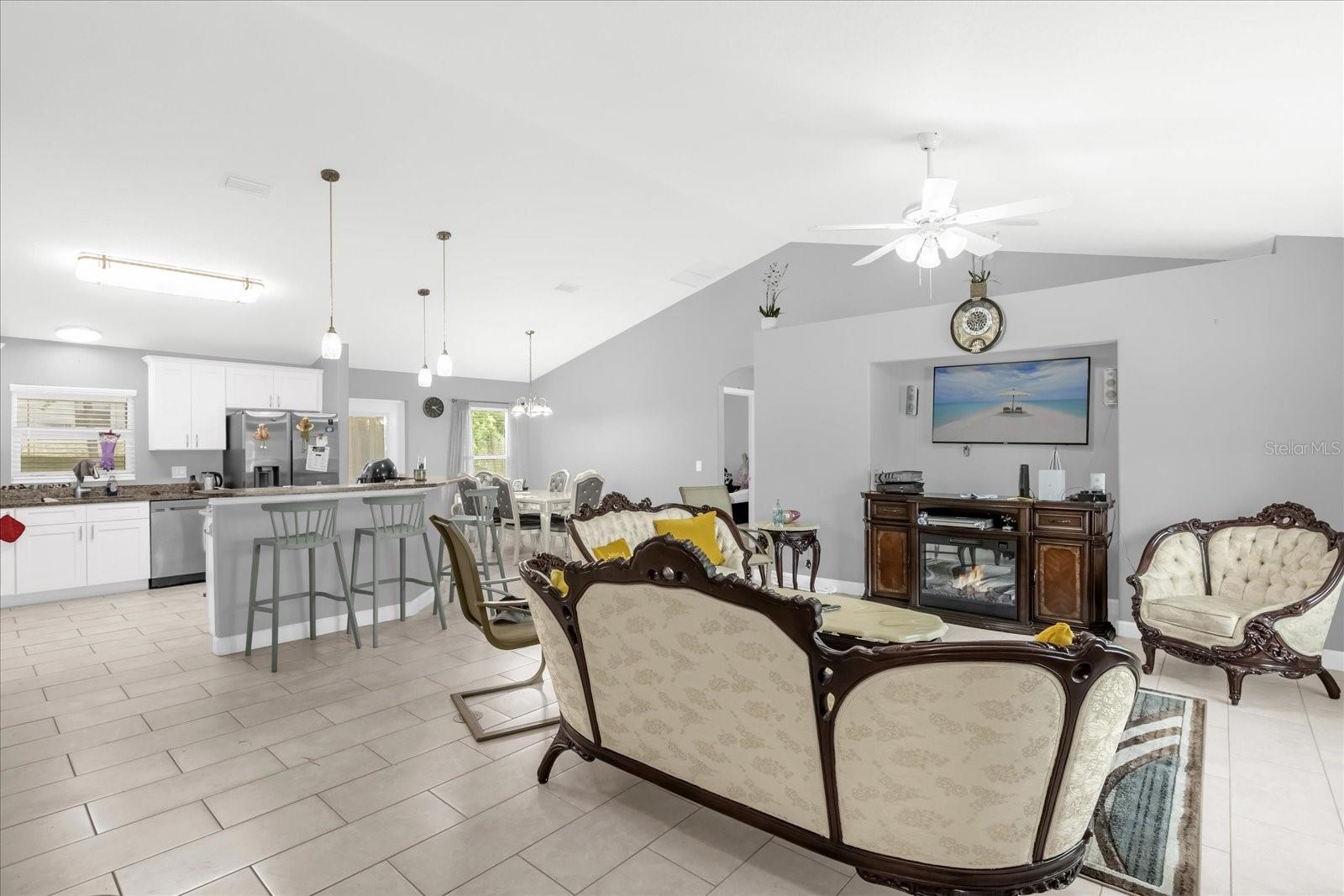 Welcome to this charming 3-bedroom, 2-bathroom home located in the heart of Deltona. Featuring a spacious open-concept floor plan, this home offers a bright and inviting living area with vaulted ceilings, tile flooring in the main living spaces, and plenty of natural light. The kitchen is well-appointed with modern appliances, ample cabinetry, and a convenient breakfast bar that overlooks the living and dining areas, perfect for entertaining. The master bedroom includes a walk-in closet and private en-suite bathroom, while the two additional bedrooms provide flexibility for guests, a home office, or a playroom. Outside, the property features a two-car garage, a large backyard with room to personalize, and a quiet neighborhood setting. Conveniently located near I-4, shopping, dining, and local schools, this home is a wonderful opportunity for both first-time buyers and those looking to downsize. Don’t miss your chance to make home yours! When using my preferred lender you will receive a 1% lender credit of the loan amount that can be used towards closing costs/interest rate buydowns.