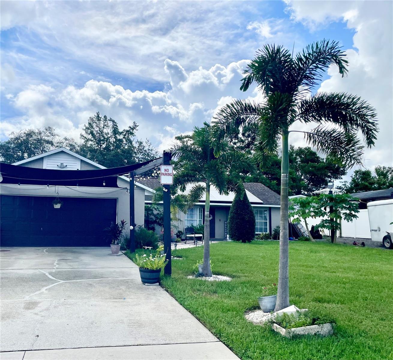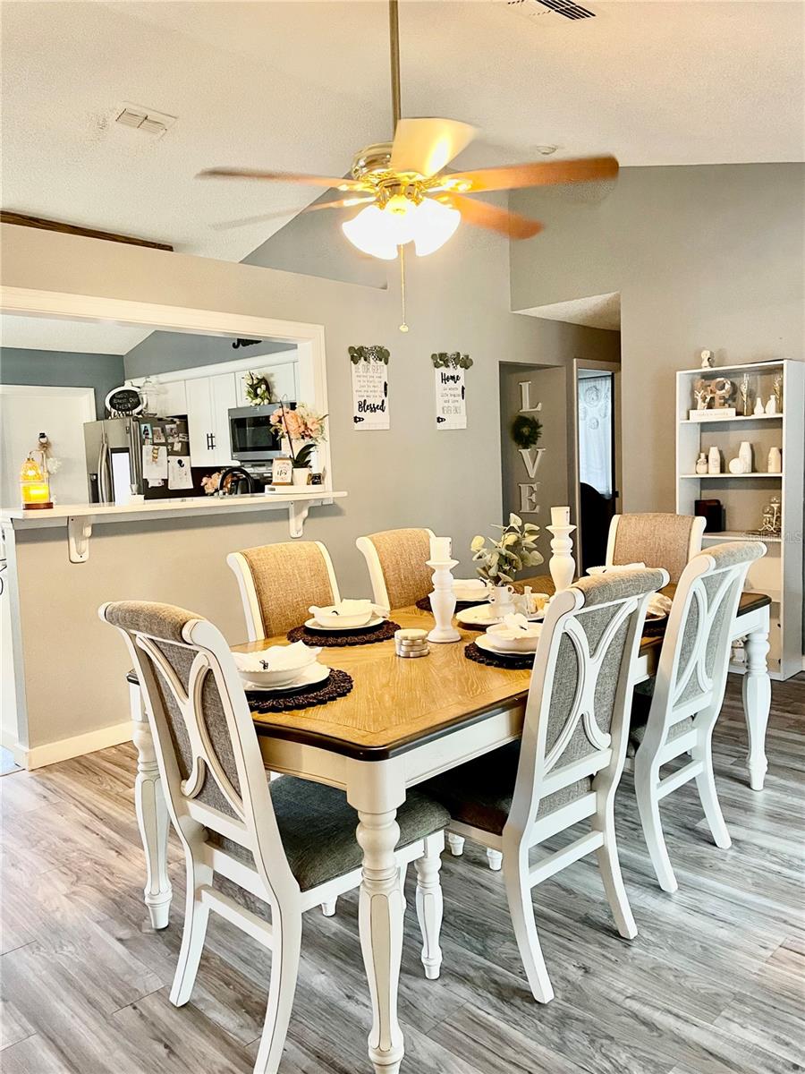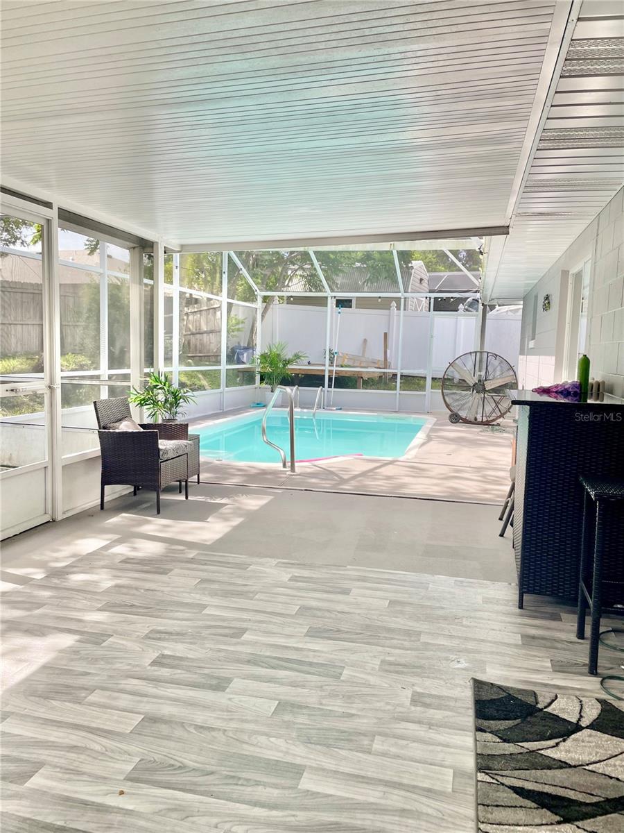 Welcome to a cozy, move-in ready home with a pool! This beautifully updated, solid block home located in Deltona Lakes with NO HOA! ideal for homeowners who need space for an RV, fishing boat, or truck. Combining classic charm with modern finishes, this home creates a warm and inviting atmosphere throughout. Situated in the highly desirable Deltona neighborhood, it offers a spacious split floor plan, featuring 3 bedrooms, 2 bathrooms, and a 2-car garage. Inside, you'll find a formal living room with elegant laminate flooring that flows seamlessly through the main living areas. The separate dining room includes double glass doors that open to a covered patio and screened pool are perfect for indoor-outdoor living. The primary bedroom features a generous walk-in closet and a private en-suite bathroom with a walk-in shower. Two additional bedrooms with luxury waterproof vinyl flooring and share a full guest bathroom with a tub. The kitchen has been upgraded with quartz countertops with a breakfast bar, making it both functional and stylish. A washer and dryer hookup is conveniently located in the garage. Step outside to enjoy a fully fenced, private backyard, ideal for relaxing or entertaining. Mature trees, including papaya trees, in the garden add a tropical touch and provide fresh fruit right from your yard. Host BBQs and gatherings in the screened-in swimming pool area and enclosed patio—your personal retreat awaits! This home also offers easy access to I-4, hospitals, schools, beaches, restaurants, shopping centers, and more! Call to schedule a showing today!