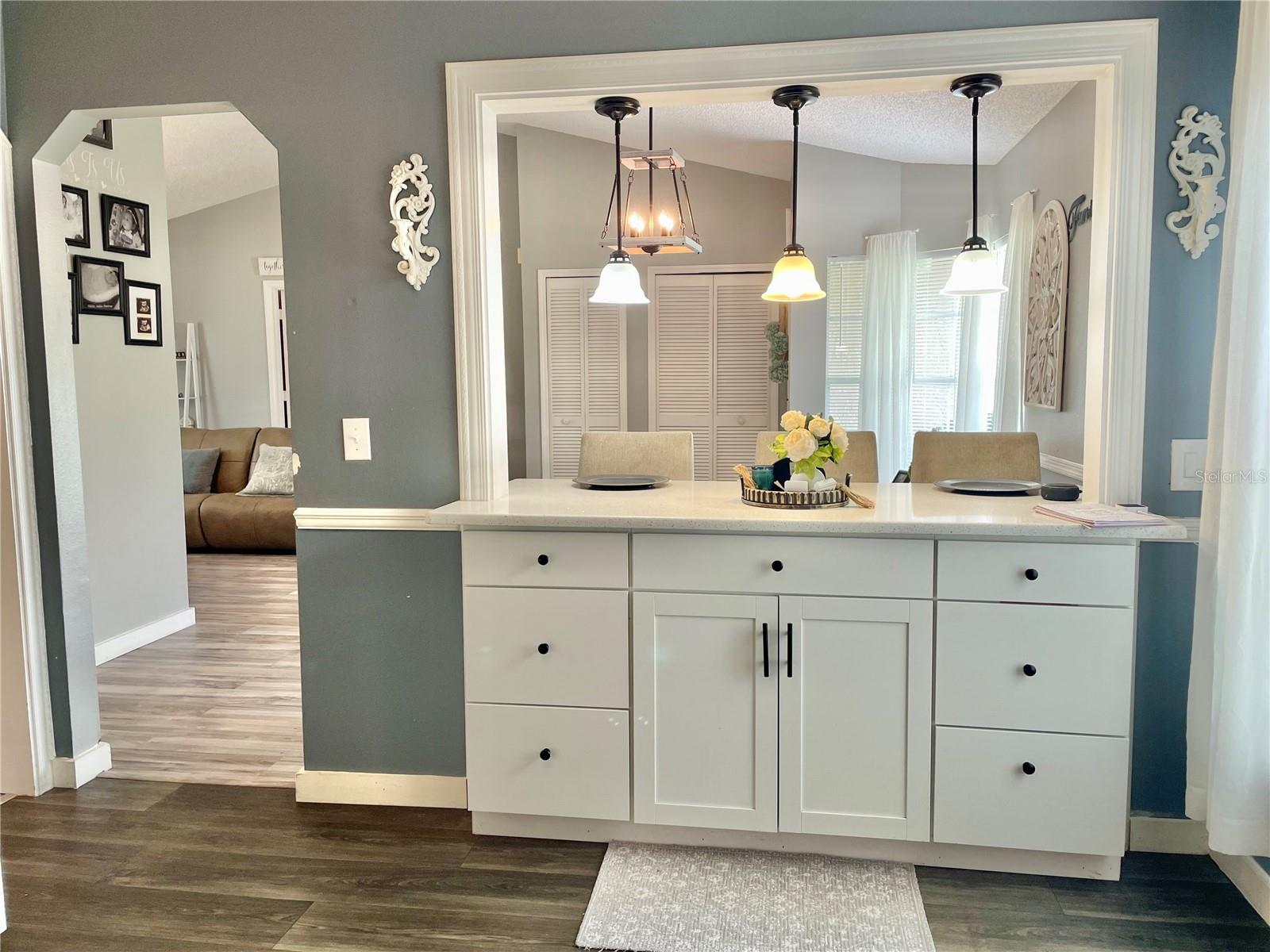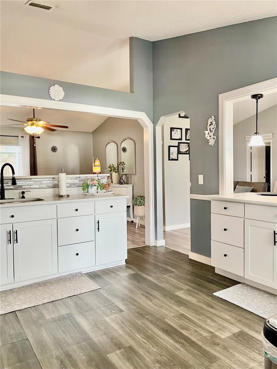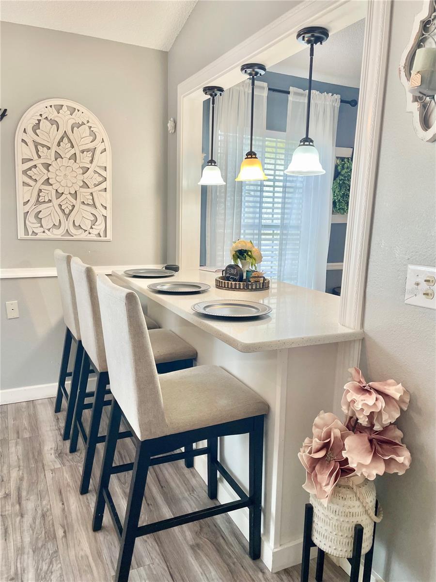 Welcome to a cozy, move-in ready home with a pool! This beautifully updated, solid block home located in Deltona Lakes with NO HOA! ideal for homeowners who need space for an RV, fishing boat, or truck. Combining classic charm with modern finishes, this home creates a warm and inviting atmosphere throughout. Situated in the highly desirable Deltona neighborhood, it offers a spacious split floor plan, featuring 3 bedrooms, 2 bathrooms, and a 2-car garage. Inside, you'll find a formal living room with elegant laminate flooring that flows seamlessly through the main living areas. The separate dining room includes double glass doors that open to a covered patio and screened pool are perfect for indoor-outdoor living. The primary bedroom features a generous walk-in closet and a private en-suite bathroom with a walk-in shower. Two additional bedrooms with luxury waterproof vinyl flooring and share a full guest bathroom with a tub. The kitchen has been upgraded with quartz countertops with a breakfast bar, making it both functional and stylish. A washer and dryer hookup is conveniently located in the garage. Step outside to enjoy a fully fenced, private backyard, ideal for relaxing or entertaining. Mature trees, including papaya trees, in the garden add a tropical touch and provide fresh fruit right from your yard. Host BBQs and gatherings in the screened-in swimming pool area and enclosed patio—your personal retreat awaits! This home also offers easy access to I-4, hospitals, schools, beaches, restaurants, shopping centers, and more! Call to schedule a showing today!