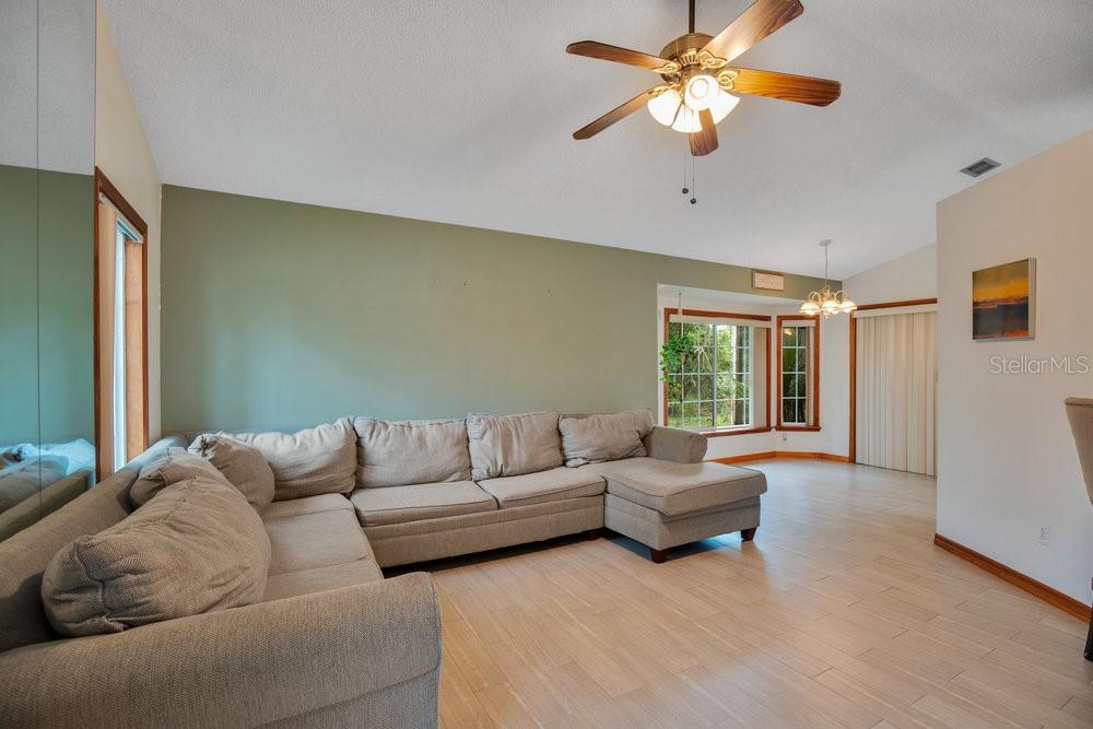 One or more photo(s) has been virtually staged. Price Improvement! Own this spacious Central Florida gem with over 2,000 sq ft of living space and the rare opportunity to assume a 2.875% mortgage—saving you hundreds per month compared to today’s average rates. Plus, this property may qualify for up to $75,000 in down payment assistance through 22 programs! This energy-efficient home features paid-in-full solar panels, double-pane insulated windows, new appliances including microwave, stove, dishwasher, and washing machine, and added attic insulation to keep your monthly bills low. Inside, enjoy vaulted ceilings, engineered hardwood floors, and a smart open layout with multiple living areas—perfect for entertaining or relaxing. Please note: The roof will need to be replaced. The solar panels have been paid in full, and sellers are considering removing them when the new roof is installed. Located in a NO HOA community, you'll enjoy flexibility and freedom just minutes from I-4, schools, shopping, parks, and Central Florida’s famous beaches. Don’t miss this unbeatable blend of affordability, energy efficiency, and opportunity—schedule your private tour today!