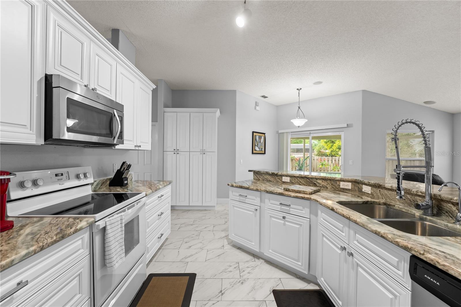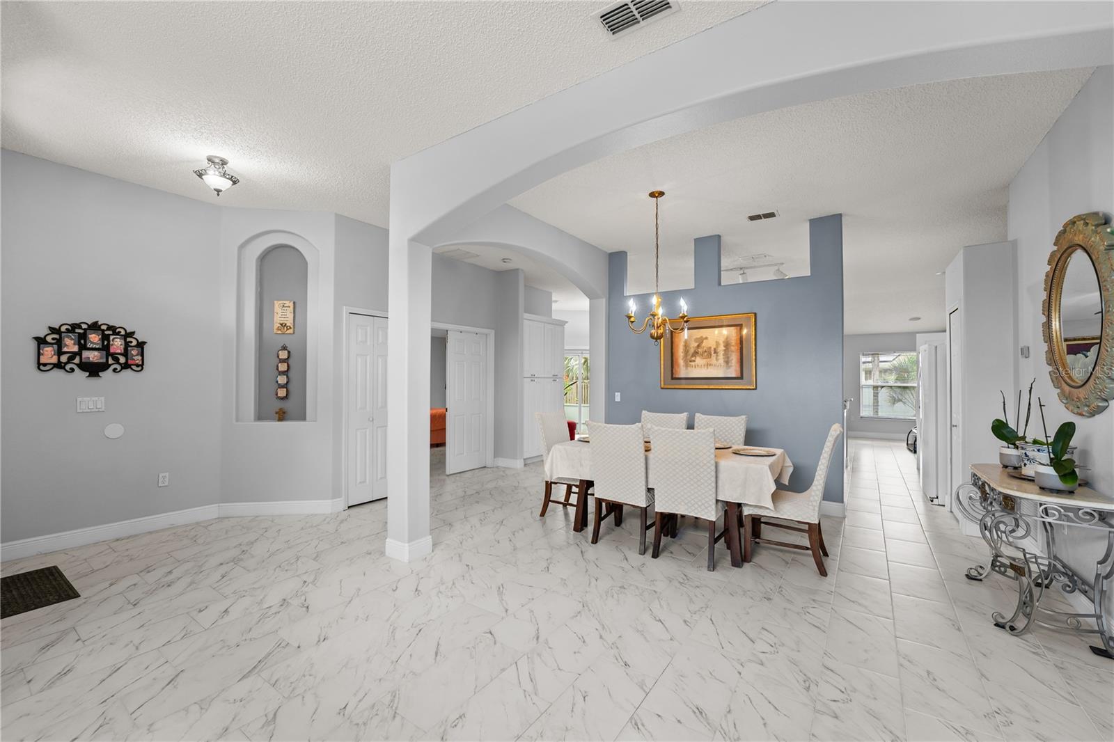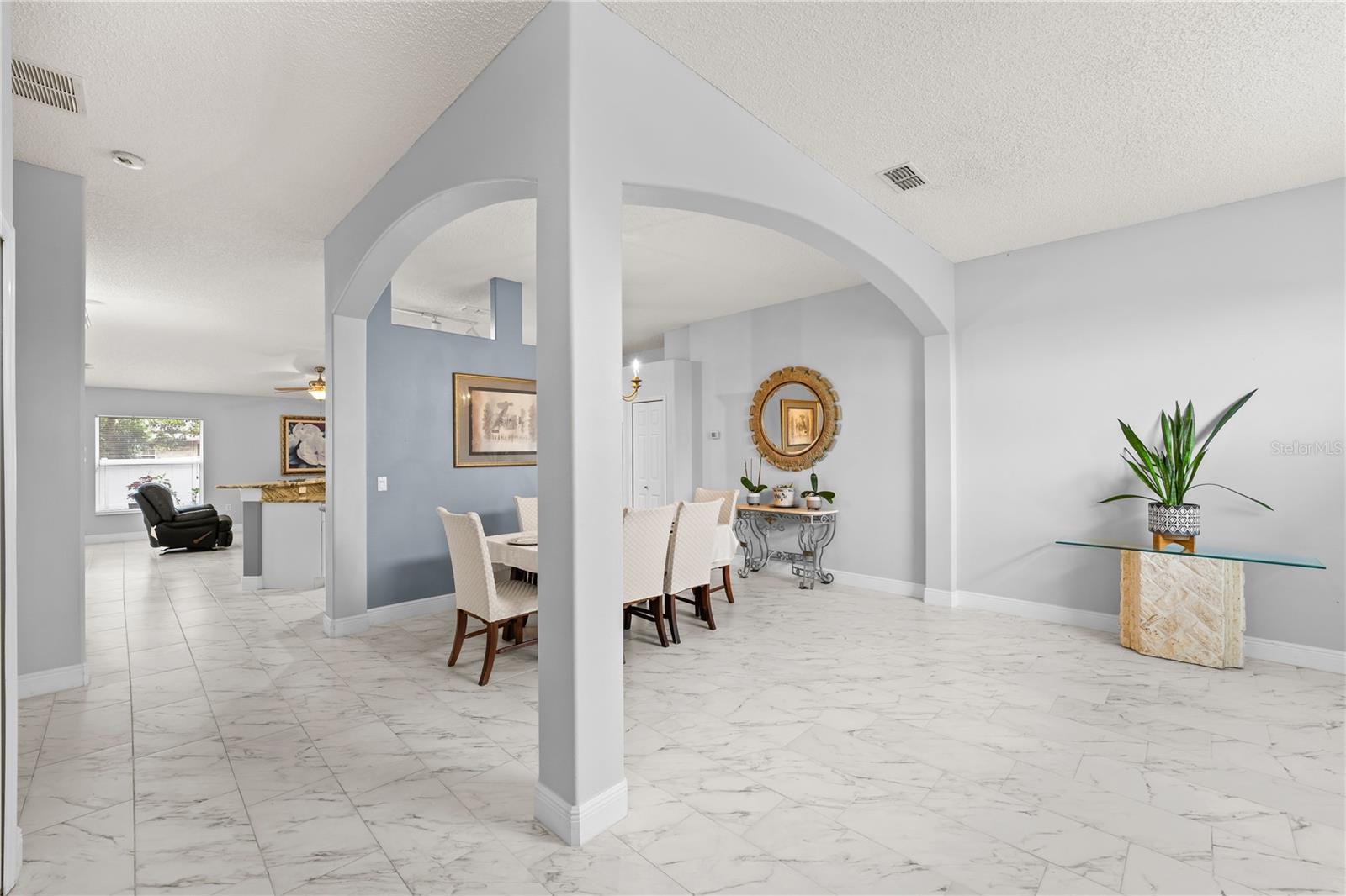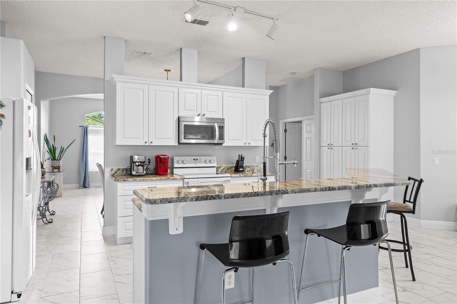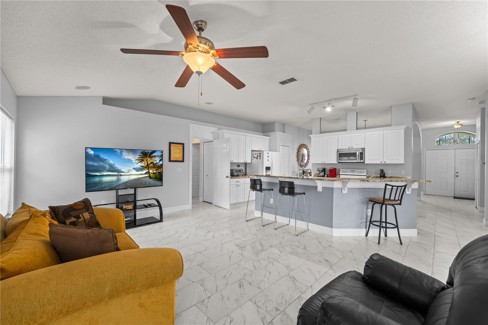 Come see this well-maintained 3-bedroom, 2-bathroom home, built in 2004 and thoughtfully cared for by its owner. From the moment you arrive, the spacious front yard and paved driveway extend a warm welcome, inviting you into a space where charm meets comfort. The lot is HIGH and DRY and NOT in a FLOOD ZONE! This community has NO HOA!! As you walk in the home the foyer opens up to a spacious living and dining room. The kitchen has abundant of cabinet space and breakfast bar. The combine family room with kitchen allows you easily to entertain family and friends. The split-bedroom layout ensures added privacy. The generous primary suite includes two walk-in closets and a in-suite bathroom with dual vanities, a garden tub, separate shower, and private toilet room. The additional bedrooms are comfortably sized and versatile. ROOF is 2018, AC is 2020 and serviced once a year, Septic serviced 2025, Gutters 2022, Aquasasa water filtration system, Porcelain flooring, granite countertop in kitchen. The laundry room is inside of the home with plenty of shelf space. Sitting on .23-acre lot, the covered patio overlooks a fully fenced private backyard, offering a peaceful space to relax or host gatherings. Deltona can be a good place to live if you seek a suburban, family-friendly environment with a rural, residential feel. The central location between Orlando and Daytona makes it a good base for commuters to both areas. Its location offers easy access to major highways, shopping, Orlando's theme parks (Disney, Universal, SeaWorld) and the beaches of Daytona and New Smyrna, all within a 45-minute to 30-minute drive, respectively. The amenities available to residents of the City of Deltona, including those in the Deltona Lakes area, feature a variety of facilities like sports fields (baseball, softball, soccer, football), indoor and outdoor basketball and tennis courts, playgrounds, walking/jogging trails, outdoor fitness area, splash pad, dog parks, a community center with meeting rooms, and pavilions with picnic areas. These are all free for residents of Deltona. Specific Deltona Lakes subdivisions can find the above activates less than 5 minutes away at Dupont Park/Lake and Wes Criles Park. Additional features such as the 10 nearby lakes for fishing and nature-related activities for a peaceful break in a wooded setting. The nearby lakes are popular for fishing Largemouth bass, Black crappie, and Chain pickerel and wildlife viewing opportunities. The outdoor recreations are endless. Come see this home today it wont last!