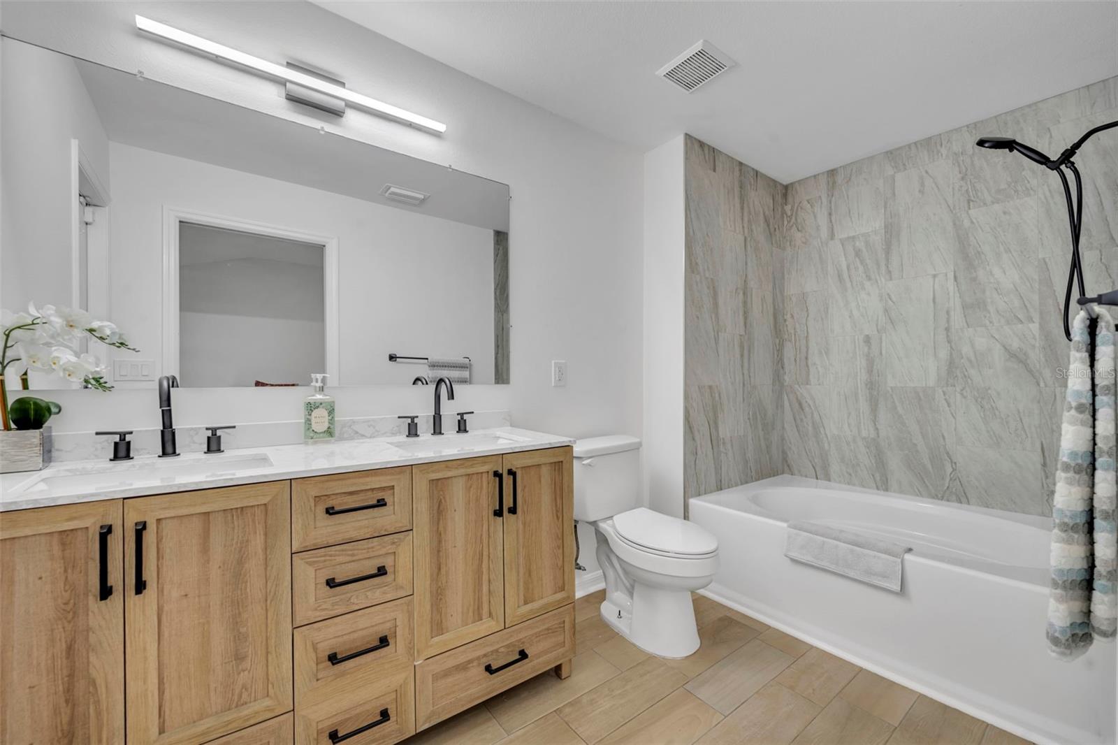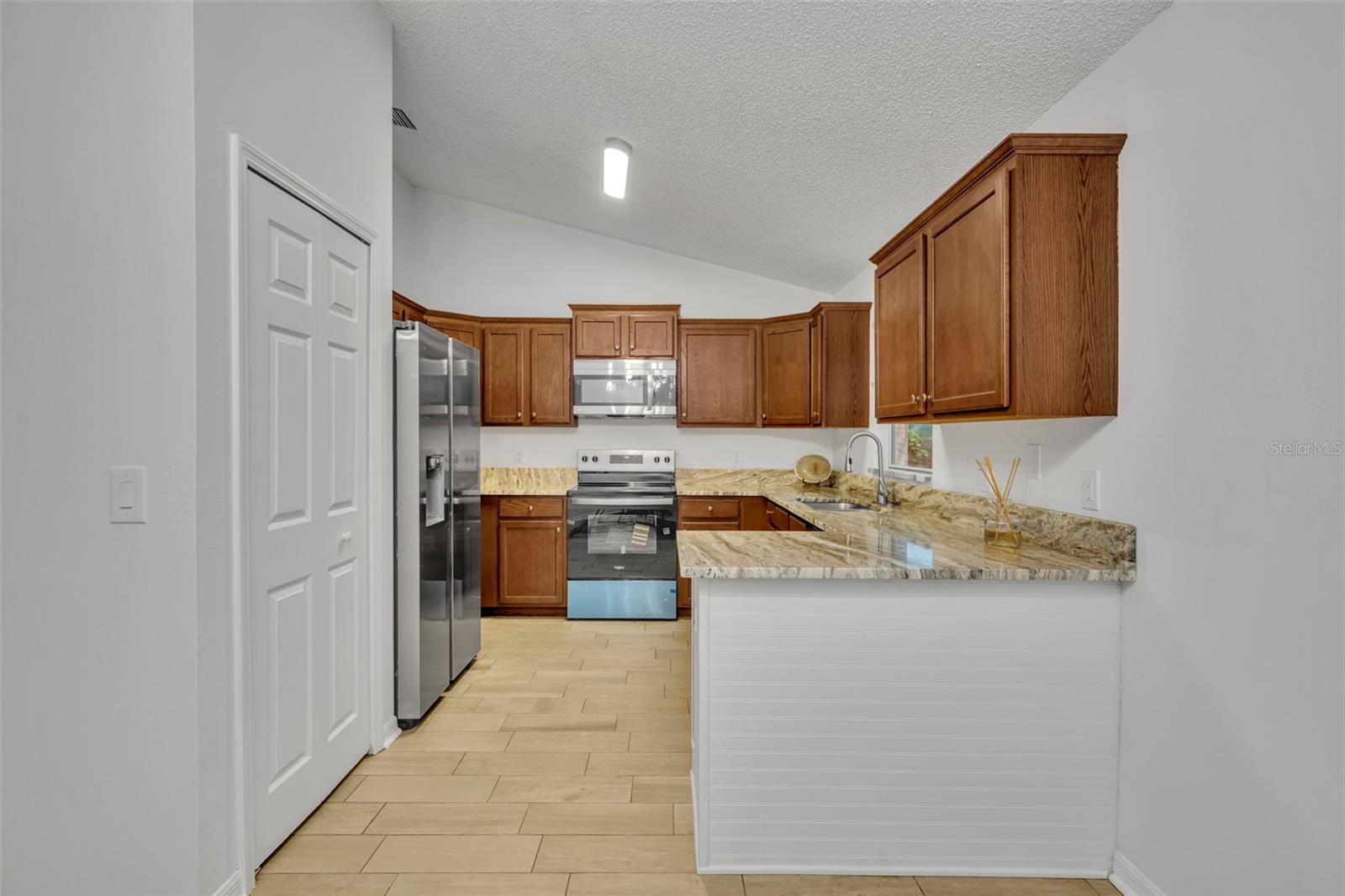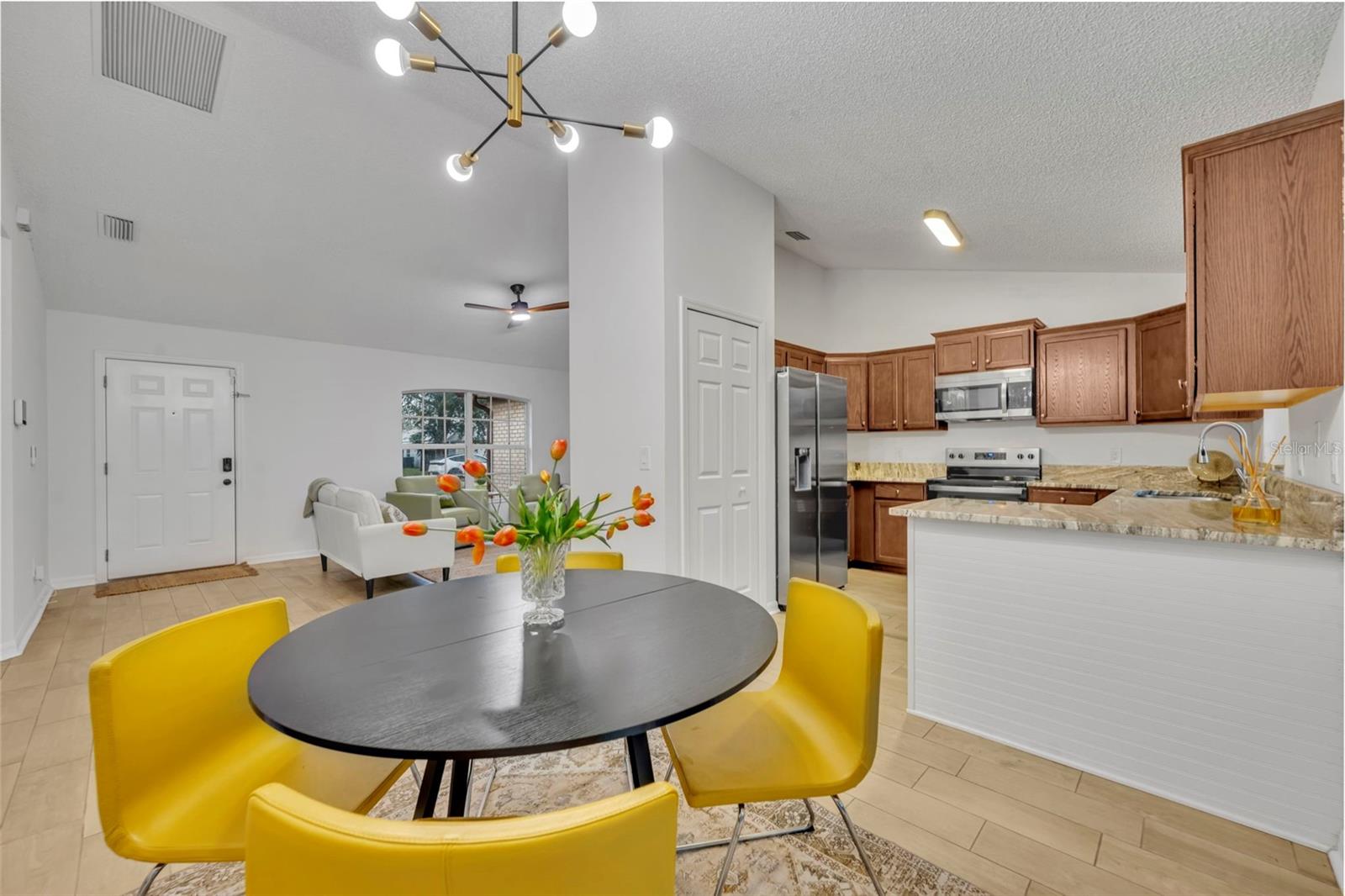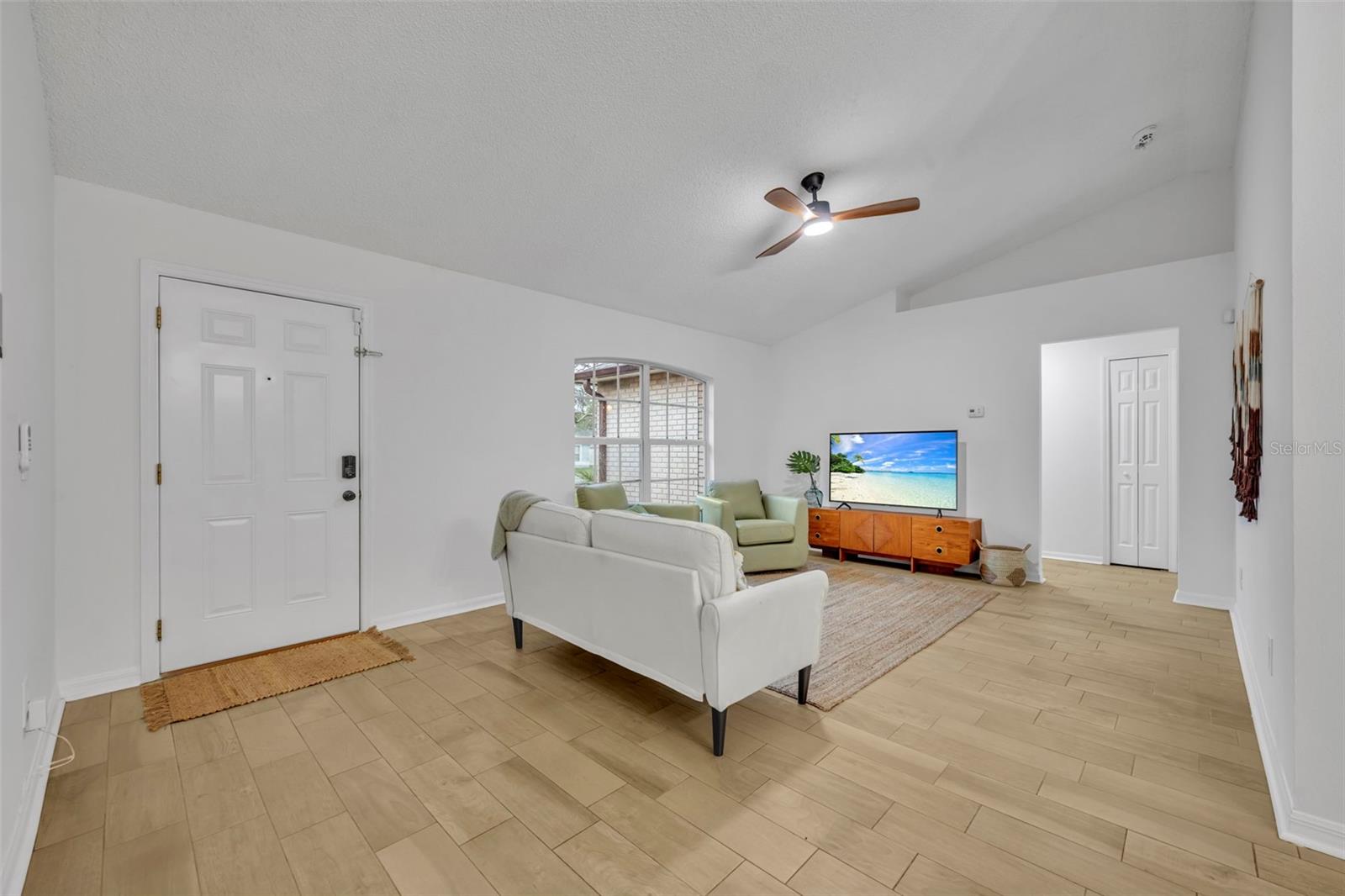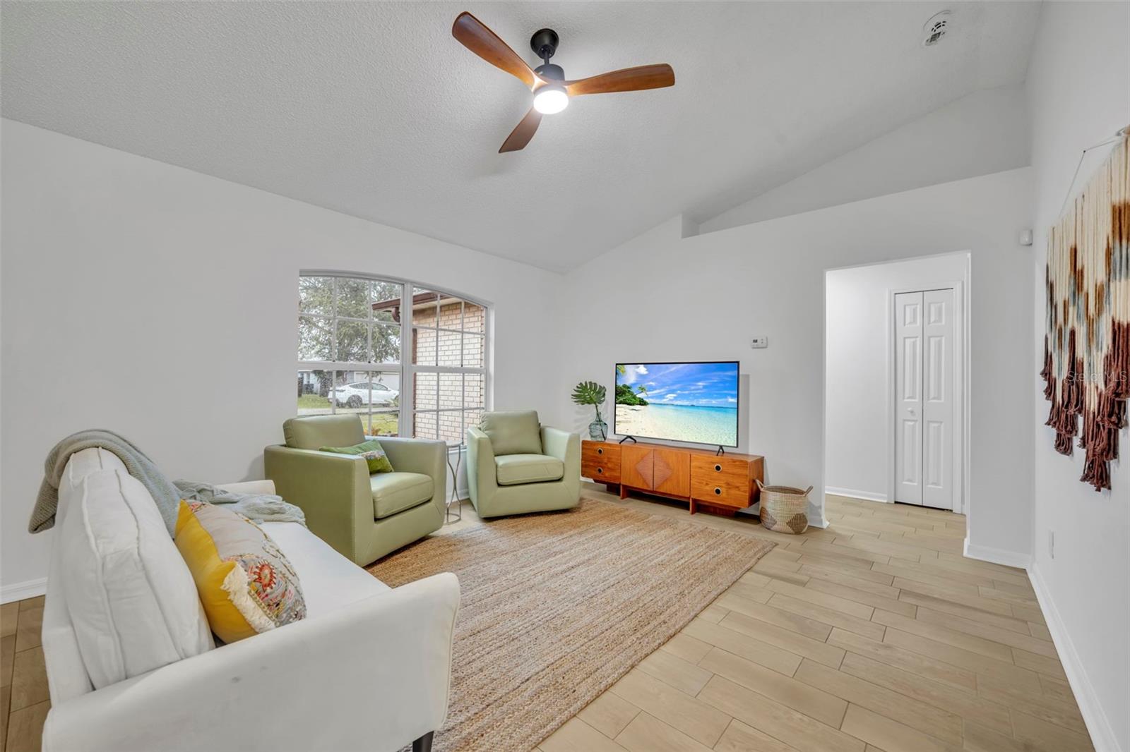You won't want to miss this beautifully updated 3-bedroom, 2-bath home in the desirable Deltona Lakes community—offering a fantastic location with no HOA and convenient access to I-4, shopping, dining, and entertainment. This move-in ready property features a charming brick elevation and a thoughtfully designed split-bedroom floor plan with high ceilings that create an open, airy feel throughout. The home has been tastefully updated with fresh interior paint, brand new natural stone countertops, a new refrigerator and range, and a full stainless steel appliance package. Both bathrooms have been completely renovated, including a luxurious master ensuite and a modernized secondary bathroom. Additional upgrades include new lighting fixtures, electrical receptacles and switches, and a screened-in back porch—perfect for enjoying Florida’s outdoor lifestyle. Practical improvements add peace of mind, with a roof that's just 5 years old, a 2-year-old HVAC system, and included water filtration and security systems. With no HOA restrictions, an unbeatable location, and all the major updates already completed, this home is truly a rare find. Don’t miss the opportunity to make it yours—schedule your showing today!