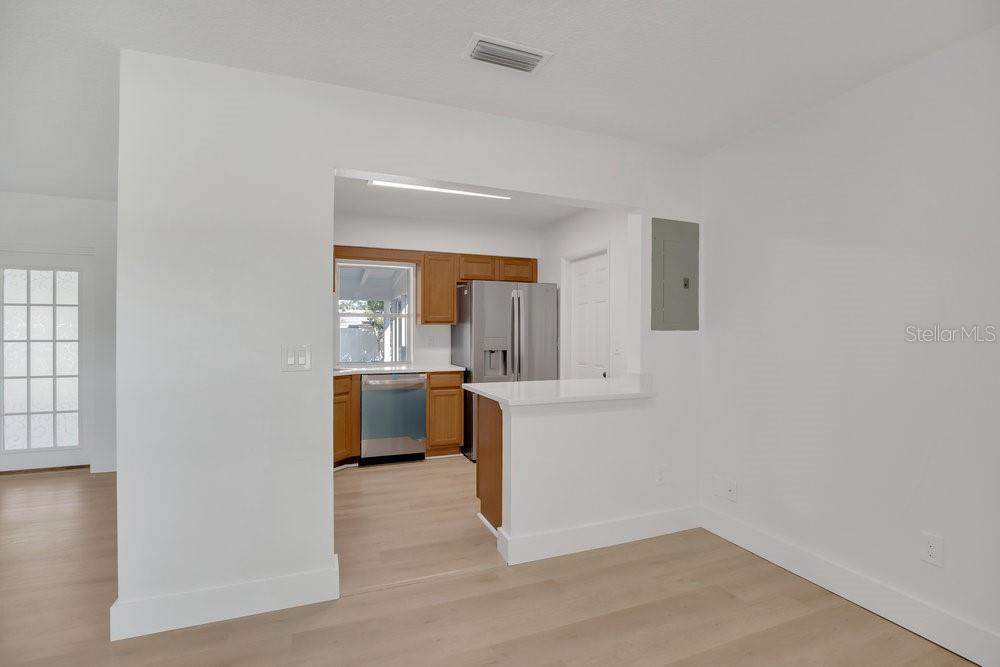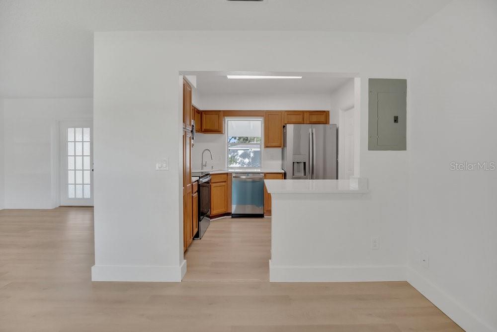 Step into this beautifully updated home offering a bright and modern interior with thoughtful design throughout. The open-concept layout features wood-look vinyl plank flooring and multiple windows that fill the space with natural light. The renovated kitchen features brand-new appliances and quartz countertops. The bathroom has been remodeled, and the entire house has modern lighting and new fixtures. The spacious backyard includes an enclosed screened lanai. Situated in a convenient and desirable location, this home is move-in ready and provides easy access to local shopping, dining, and commuter routes.