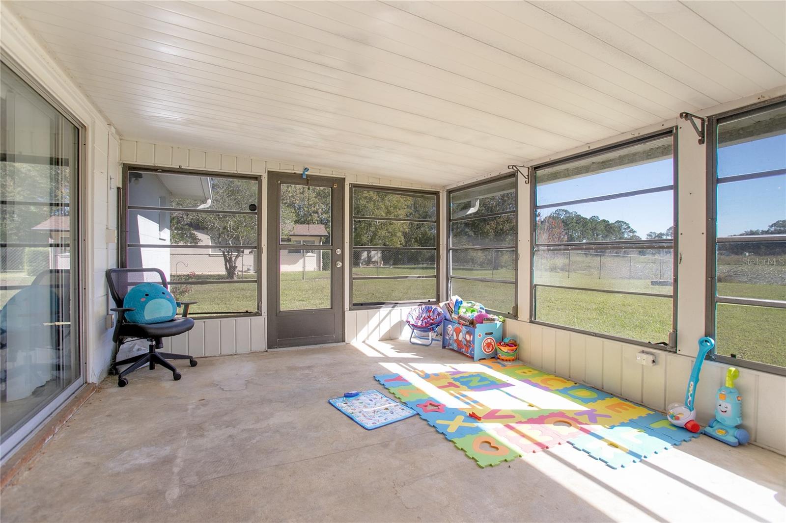 Charming Deltona home with peaceful pond views! This well-kept property features a new water heater (2025), 4 new windows (2025), HVAC (2023), and electric panel (2022). Inside, enjoy LVP flooring and a bright, functional layout. The home also offers an enclosed porch with a mini-split AC, perfect for extra living or relaxation space. Sitting on an over 1/4-acre lot, it’s tucked away in a quiet setting close to shops, schools, and parks.