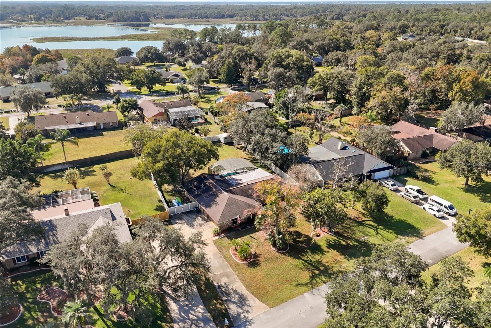 Welcome to your private retreat in the highly sought-after Treeshore Lakes community. This well maintained 3 bedroom, 2 bathroom home sits on an expansive ½-acre lot with a low HOA and exclusive community access to two serene lakes, Big Lake and Lake Sidney. The home includes important updates such as a 2019 roof, 2019 A/C, 2022 water heater, brand-new carpet in the primary bedroom, and a pool resurfaced in 2025. The split floor plan includes a bright kitchen overlooking the sparkling pool, a spacious family room with a brick fireplace, a separate dining room, a welcoming living room, and an indoor laundry room equipped with a reverse-osmosis water filtration system. Sliding glass doors from the family room, dining room, and primary bedroom lead right out to your backyard oasis. The guest bathroom also provides convenient direct pool access. The kitchen features solid wood shaker cabinets, granite countertops, stainless steel appliances, and a roomy pantry. The exterior features an oversized driveway, covered front porch, screened rear patio, newer shed, and a fully fenced backyard providing ample space for outdoor activities. Located minutes from I-4, Daytona State College (Deltona Campus), AdventHealth Fish Memorial, Gemini Springs Park, and a wide variety of shopping, dining, and entertainment options.