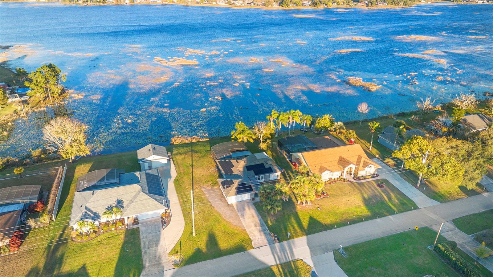 Lakefront pool home offering direct views of Lake Theresa. This well-maintained concrete block 3-bedroom, 2-bath residence features a screened-in pool and patio overlooking the water, ideal for relaxing or entertaining. Situated on a large lot with ample space for an RV, boat, or the addition of a detached garage. Major improvements have already been completed, including a new roof in 2020, water heater in 2022, HVAC in 2023, and solar panels added in 2024, delivering substantial energy savings. The solar panel lease transfers to the buyer and includes repairs, maintenance, and replacements. Priced to allow for cosmetic updates, this property offers a solid opportunity to add personal touches while enjoying lakefront living.