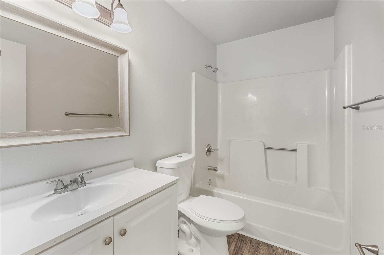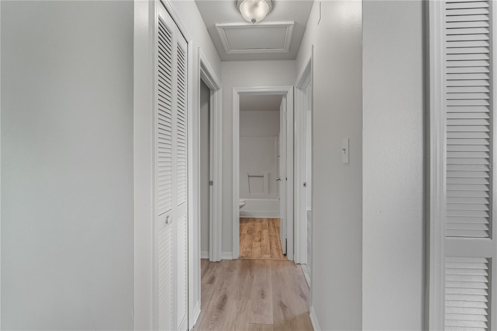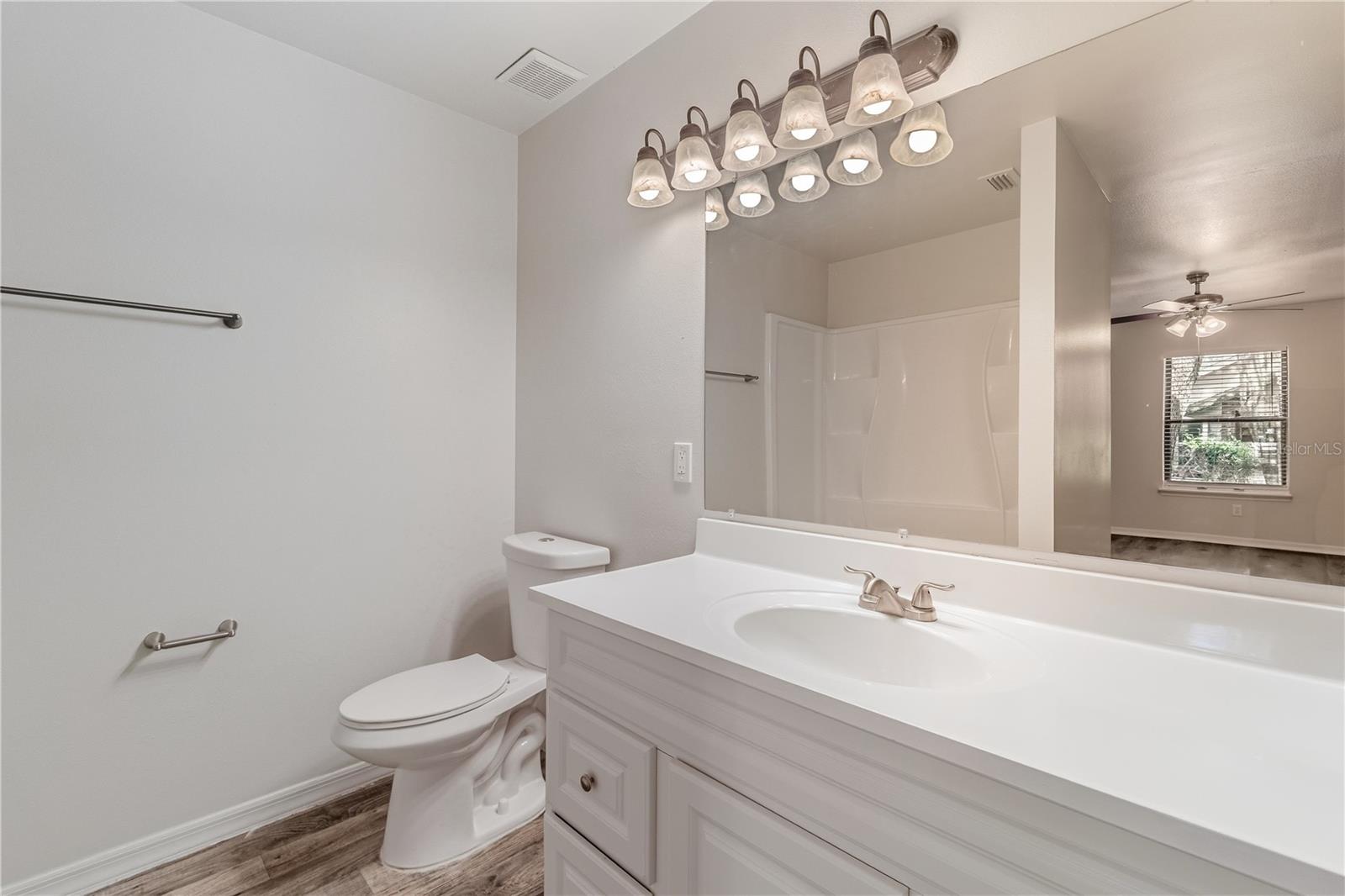 Tucked in Deltona Lakes with easy access to local amenities, this single-level home delivers a well-balanced layout designed for everyday ease and indoor-outdoor connection. Inside, a vaulted ceiling adds depth to the oversized living room, while natural light flows through to the adjacent dining space and screened patio beyond. The home’s kitchen is thoughtfully arranged with bar seating, dark appliances, and durable counters that transition smoothly into a tile-clad family room—ideal for casual living or entertaining. Three bedrooms are split for privacy, including a generous primary suite with a walk-in closet and private bath. Luxury vinyl plank flooring brings a unified aesthetic to the living areas and secondary bedrooms, while both bathrooms maintain a clean, functional design. Outside, a 53-foot screened patio overlooks the backyard, providing plenty of room for alfresco relaxation or weekend fun. A two-car garage, indoor laundry, and a fully fenced yard enhance day-to-day convenience. Situated on a 0.23-acre lot in a flood zone X, this home is just minutes from schools, parks, shopping, and commuter routes.