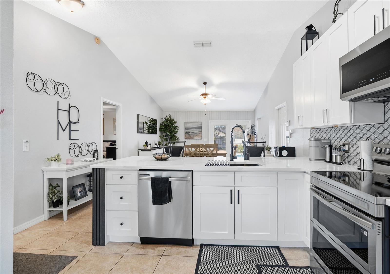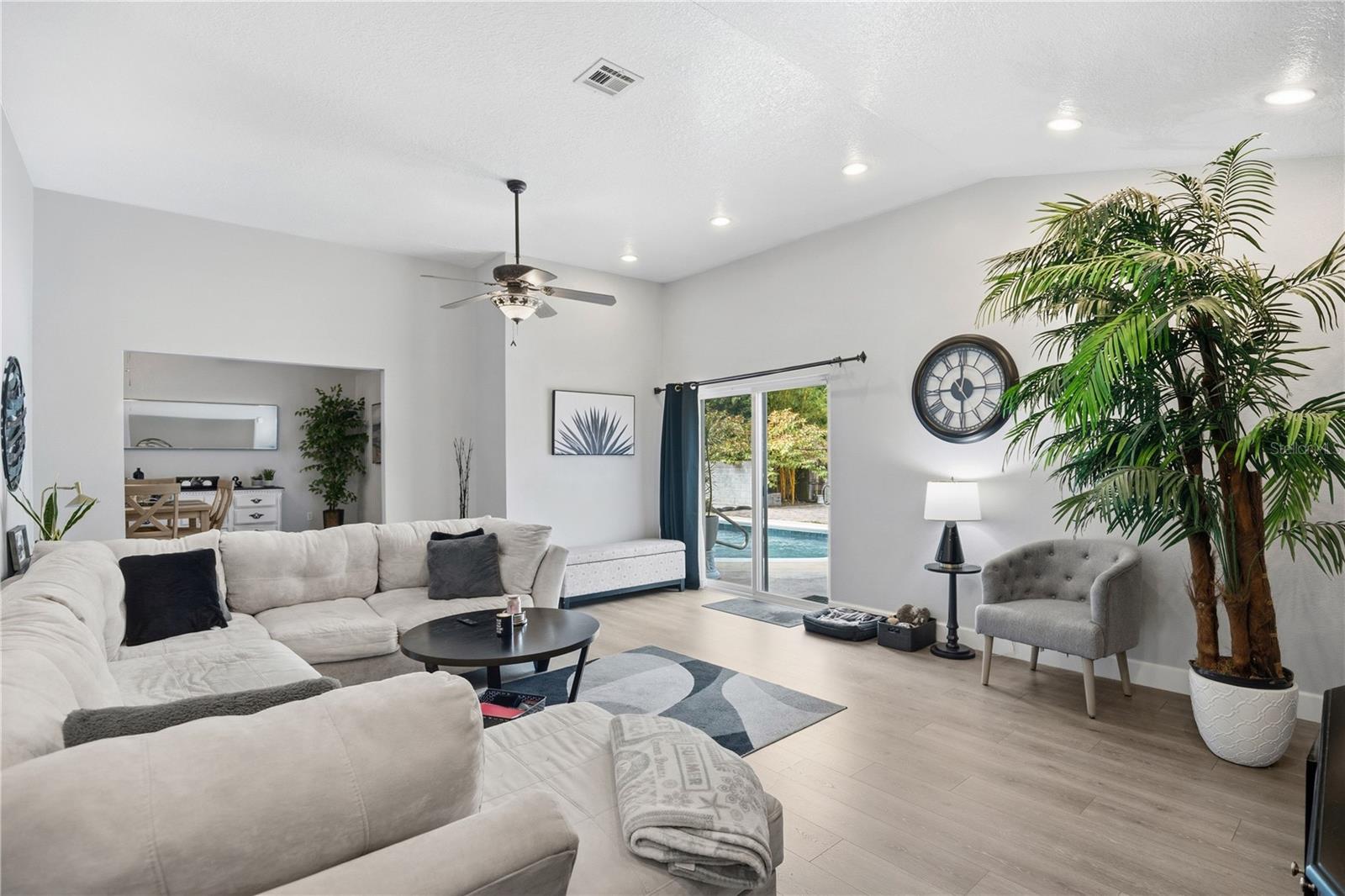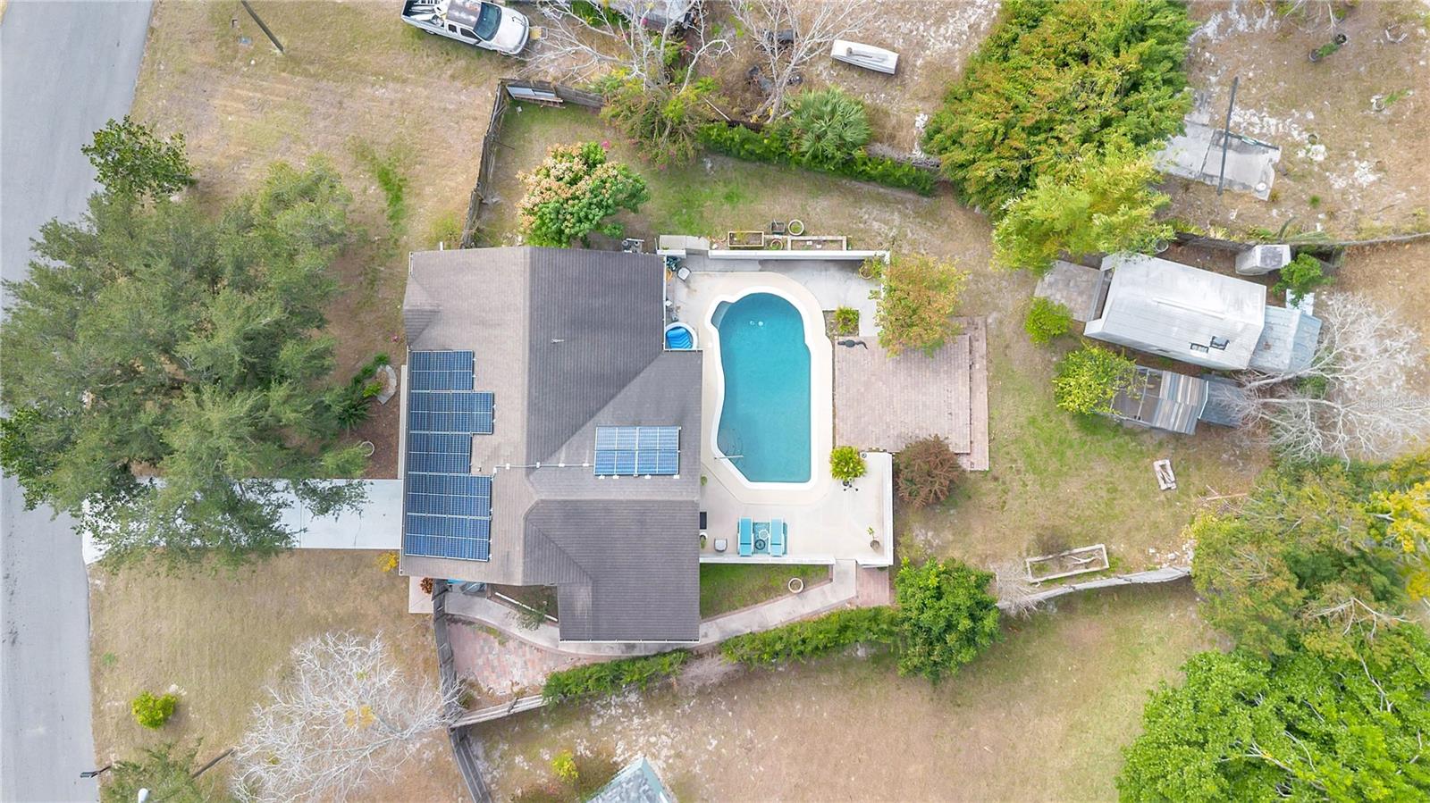 Move in ready, Priced to sell and updates throughout! Discover your perfect home with this charming 2-bedroom, 2-bathroom POOL HOME, featuring a remodeled interior and modern amenities. Situated on over ¼ acre of land with NO HOA, this home offers so much for the money, NEW LVF in the LIVING ROOM, an enclosed screened back patio, and a large fenced yard. Recent upgrades include a NEW PAINT INSIDE AND OUT ,New Baths, NEW KITCHEN FETURING: SHAKER CABS, QUARTZ COUNTER TOPS, STAINLEES STEEL APPIIANCES, AC 2023, POOL RESURFACING in 2024, and extra attic insulation for enhanced energy efficiency. The spacious kitchen boasts ample cabinet space, while the dining and living areas provide plenty of room for gatherings. This home also includes a 5kWh solar panel system (payments are transferable) to substantially reduce electric bills every month. Additional features include an attached 1-car garage, a powered shed, a chicken coop with leg laying chickens, and various fruit trees such as mango, avocado, lemon, white guava, and Japanese plums.