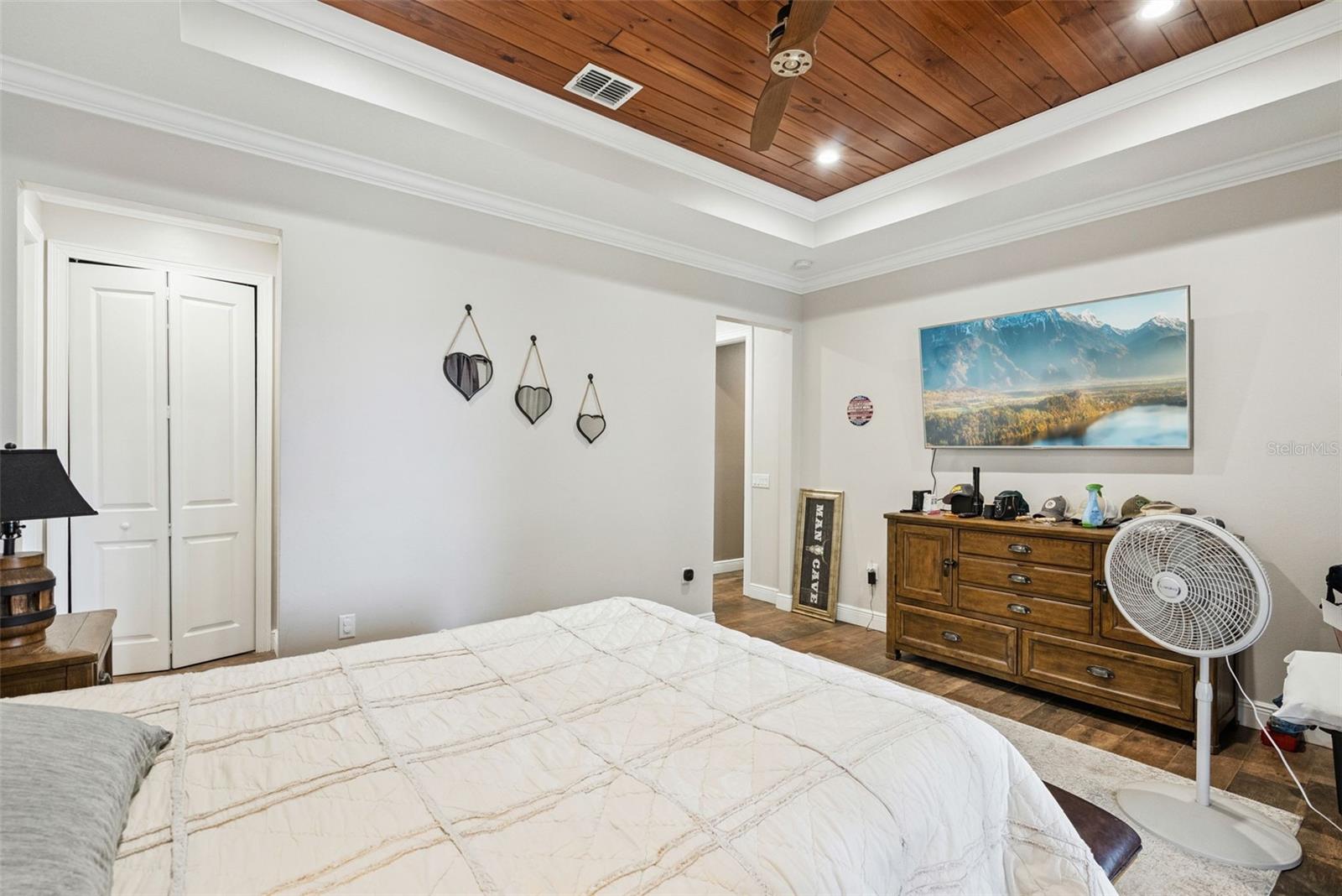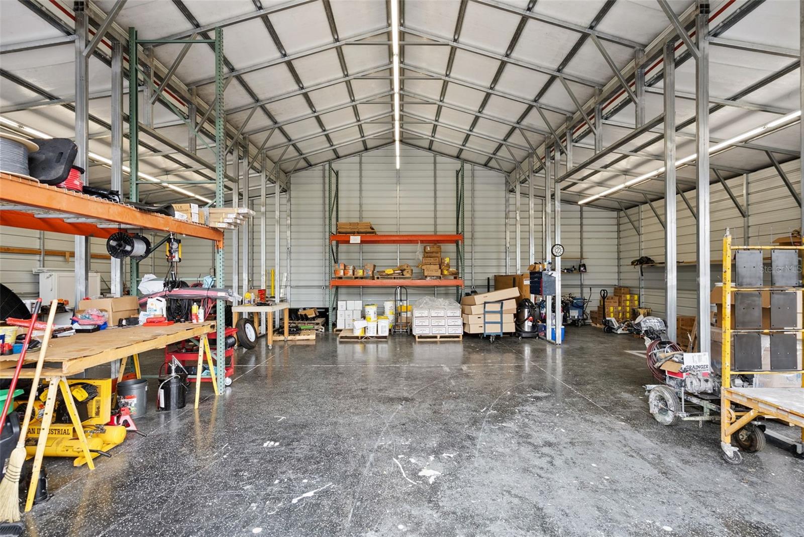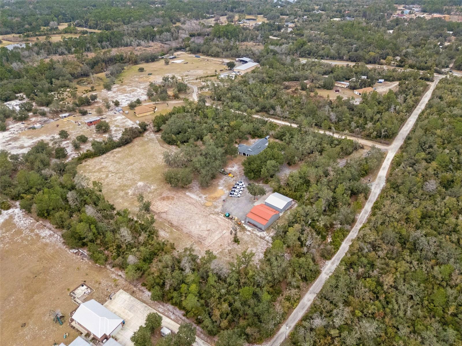 Welcome to this beautifully maintained 2017 custom home offering the perfect balance of modern comfort and peaceful country living on 10 fully usable acres. This thoughtfully designed 3-bedroom, 2-bath residence features an open floor plan with wood-plank tile throughout, a spacious kitchen with solid wood cabinetry, crown molding, granite countertops, stainless steel appliances, and a large island ideal for entertaining. The primary suite includes a tray ceiling, walk-in closet, and private bath, while all bedrooms feature built-in closets. In 2025 the property has seen several valuable improvements, including reconfigured fencing, an expanded and extended oversized driveway with fresh asphalt millings, and the enclosure of a previously open-sided covered structure adjacent to the garage. This structure has been enclosed with metal siding, creating additional secure workshop and storage space. The home is also supported by an updated carbon water filtration and softener system, professionally serviced. Outdoor amenities are extensive and well-suited for a variety of uses, featuring a 2-car garage with epoxy flooring, a 48x40 workshop equipped with electric, water, sink, cabinetry, shelving, and sub-panel, along with a 40x40 pole barn offering electric and water—ideal for equipment, recreational vehicles, or livestock needs. The property is fully fenced and cross-fenced with multiple gated entrances, including an electric front gate with dusk-to-dawn lighting. Two 50-amp RV hookups are available, one under roof with water and electric, offering flexibility for recreational vehicles, equipment, or high-capacity electric vehicle charging. Additional highlights include spray foam insulation throughout the home, porch, and garage; hardwood ceilings on the front porch and foyer; gutters; 8-foot interior doors; pre-wiring for a whole-house generator. Relax on the covered front and side porches while enjoying views of the surrounding pastures and open skies. Enjoy a rare setting adjacent to Audubon Park, a scenic community nature preserve in Deltona featuring open green space, walking trails, birdwatching, fishing, picnic areas, and lakefront recreation. This natural backdrop enhances privacy and preserves the property’s peaceful, rural character. Conveniently located while still offering space and seclusion, the property is well-suited for equestrian use, hobbies, or those seeking room to spread out—without sacrificing access to nearby amenities. A unique opportunity to own a turn-key acreage property with extensive improvements already in place.
