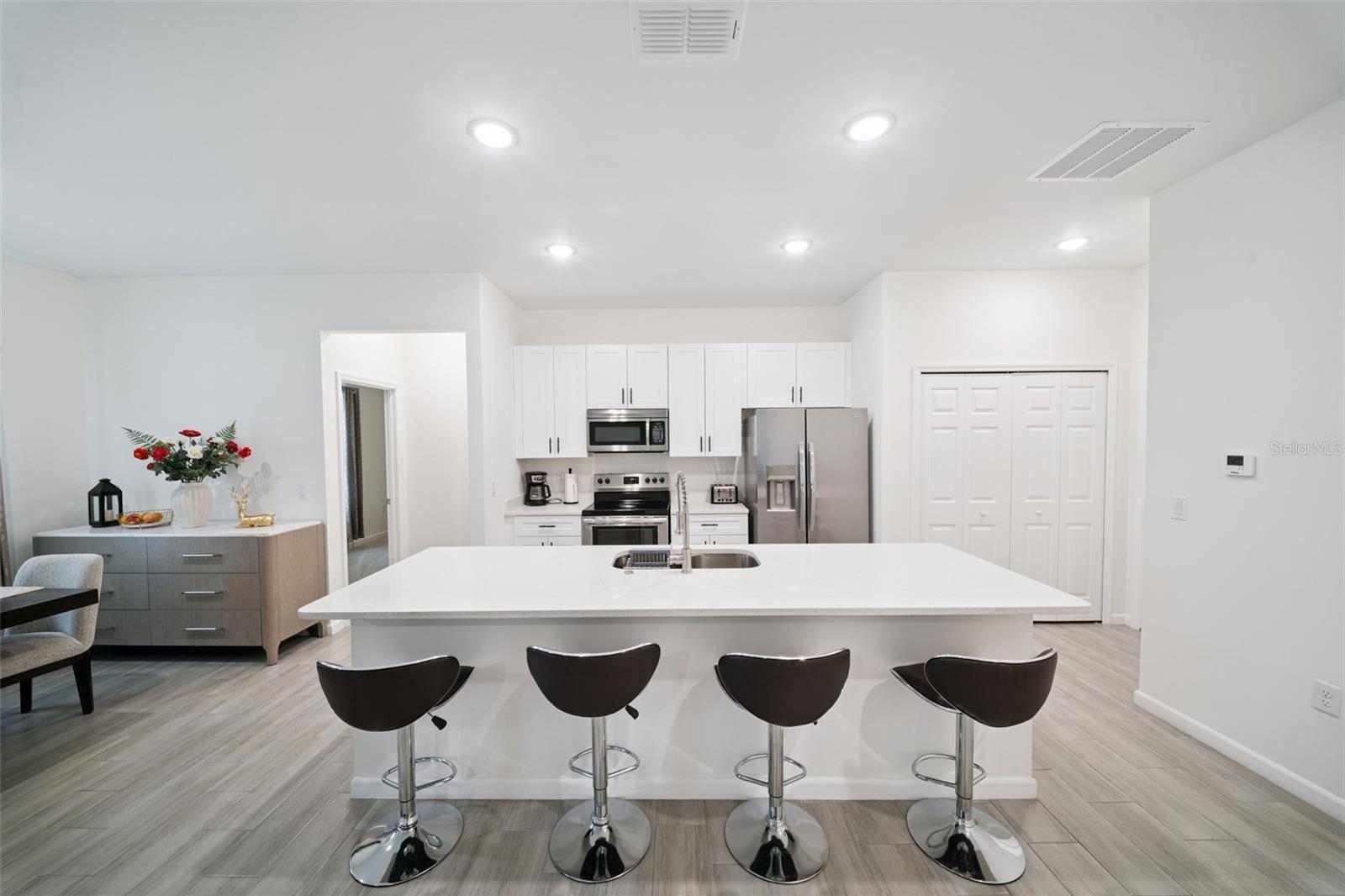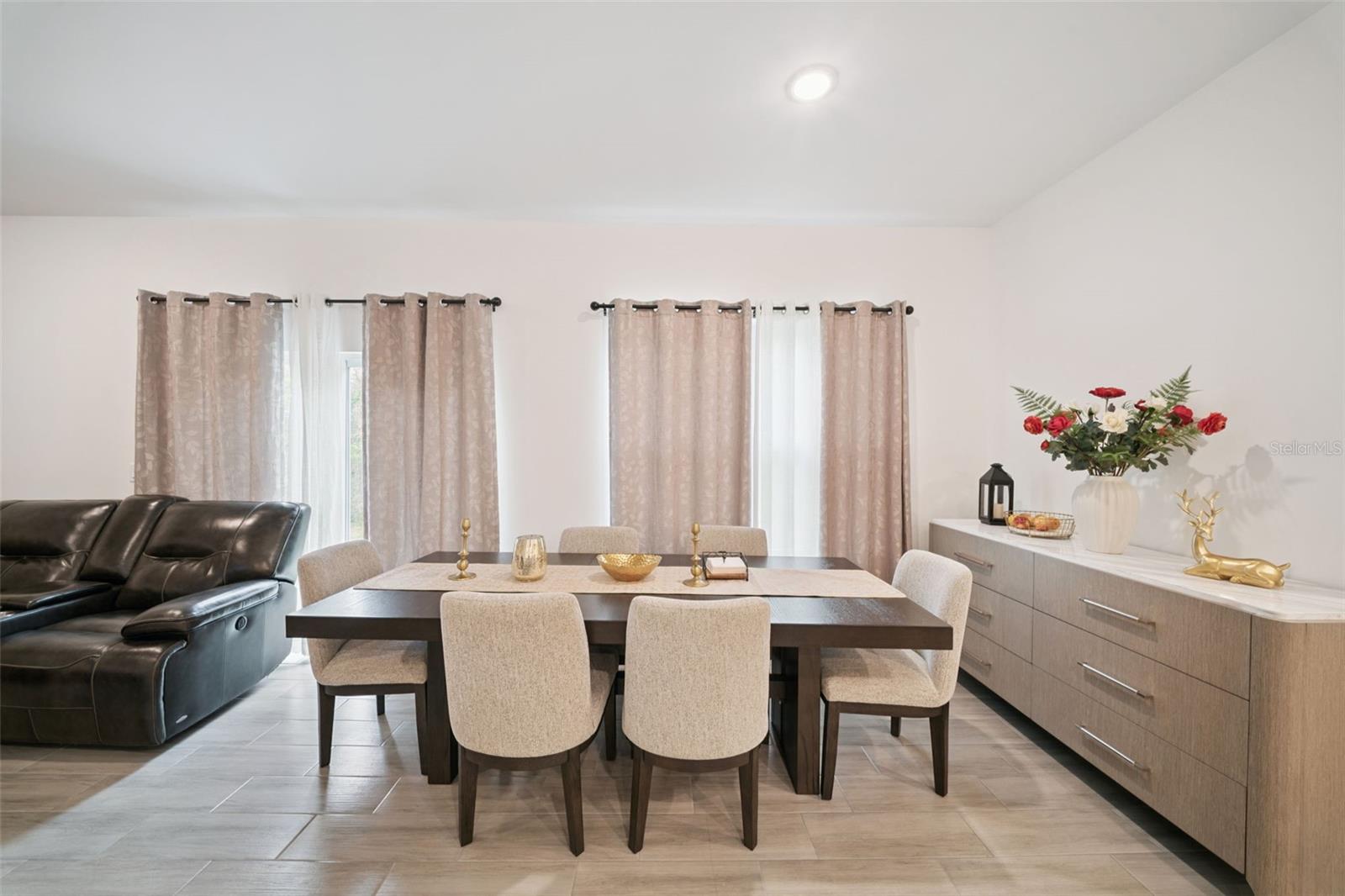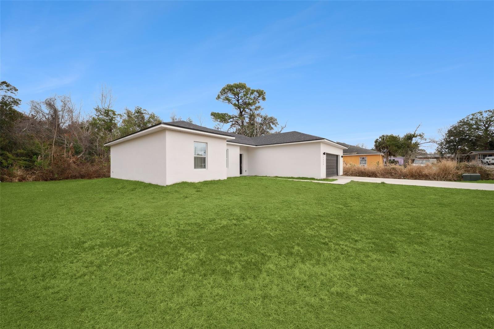 Fall in love with this bold Deltona showpiece! Built in 2023, this stunning 4 bedroom, 2 bathroom home sits on a spacious 0.21 acre lot and features modern design, open concept, 2 car garage and NO HOA. Inside, soaring ceilings, recessed lighting, and windows fill the home with natural light. The open layout flows effortlessly into a designer kitchen featuring quartz countertops, sleek cabinetry, stainless steel appliances, and a large island perfect for gathering and entertaining. Tile flooring throughout the main areas adds both style and durability. The spacious primary suite features a spa inspired walk in shower and a private retreat feel, while three additional bedrooms provides flexibility for guests, a home office, or a playroom. Enjoy the extra space of your 0.21 acre lot, ideal for backyard entertaining, pets, playtime, or creating your own outdoor oasis. Located in Deltona with quick access to I-4 and just a short drive to Orlando, Daytona Beach, and New Smyrna Beach, plus easy access to major attractions like Walt Disney World. Schedule your private showing today!