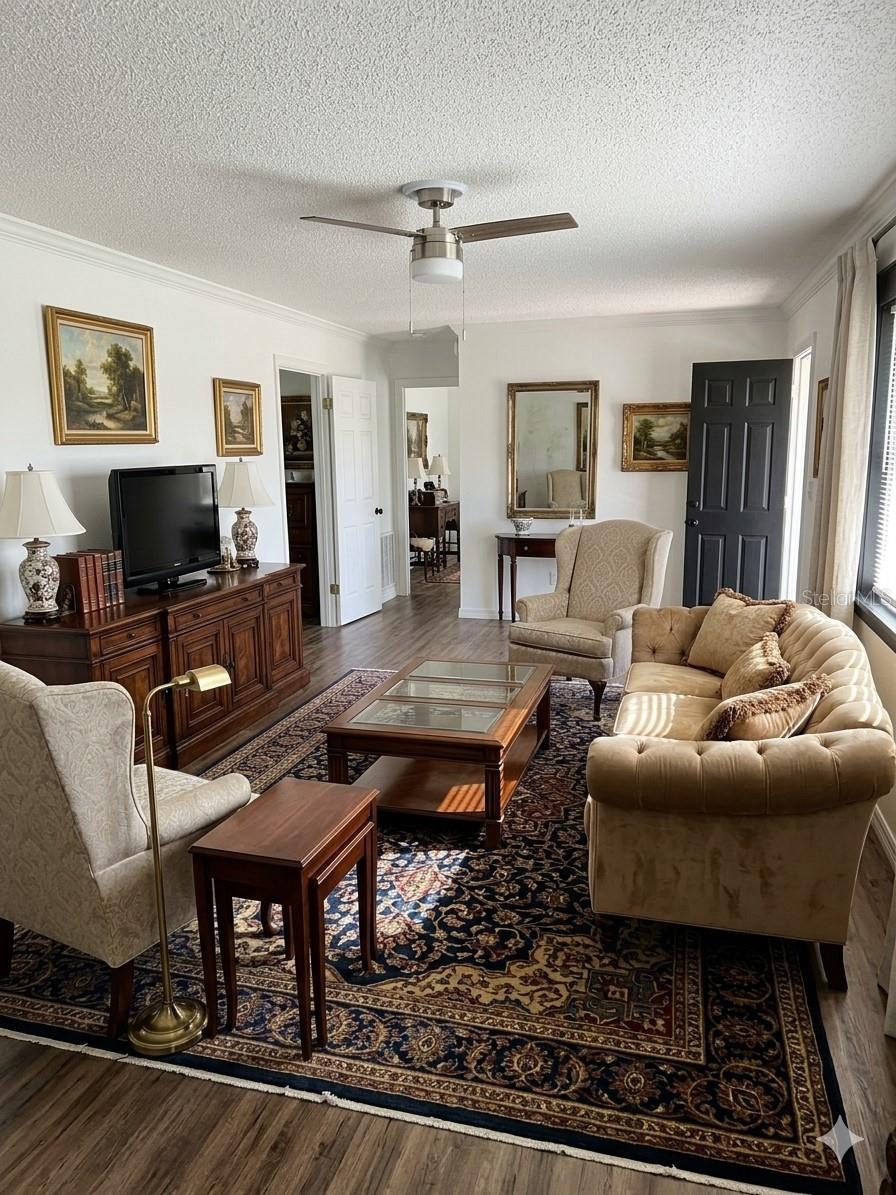 This beautifully maintained 3-bedroom, 2-bathroom residence, built in 1975, perfectly blends classic character with a functional and spacious layout. The heart of the home features a chef’s kitchen updated with modern stainless steel appliances and an abundance of cabinetry, providing ample storage for all your culinary needs. Throughout the home, you'll find stylish, durable wood-look flooring that flows seamlessly through the open and airy living spaces, designed for both comfortable daily life and effortless entertaining. Each of the three well-appointed bedrooms offers generous closet space and plenty of natural light. Outside, you can enjoy the Florida weather year-round from the privacy of your screened-in patio, an ideal retreat for morning coffee or evening relaxation. This home captures the timeless appeal of its mid-seventies roots while offering a modern, move-in-ready experience on a well-established lot.