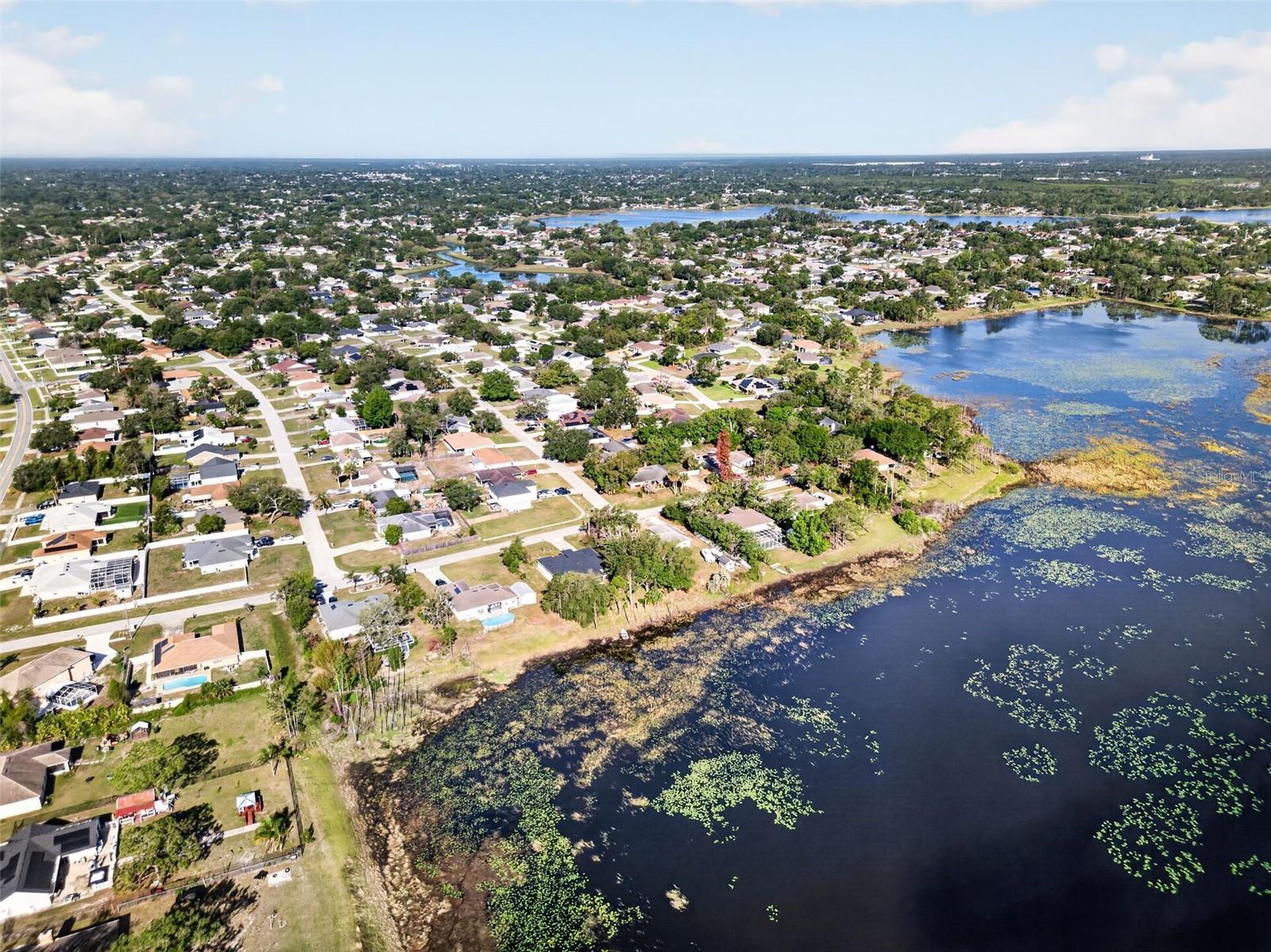 Set on a spacious corner lot framed by towering pines, palms, and lush mature landscaping, this single-story brick home offers standout curb appeal and the kind of setting buyers notice right away. Inside, the layout opens to a generously sized living area with rich wood-look flooring, oversized windows, abundant natural light, and a striking brick fireplace that adds warmth and character. The adjoining dining space is bright and inviting, while the large front room with bay-style windows offers flexible space for dining, office, sitting room, or creative use. Sliding glass doors connect the main living space to the screened lanai and pool area, creating an easy indoor-outdoor flow that is ideal for relaxing or entertaining. Outside, the oversized homesite, extended driveway, privacy fencing, and mature greenery create a private, tucked-away feel with room to enjoy the Florida lifestyle. A rare opportunity to own a home with timeless brick architecture, spacious living areas, a pool, and an impressive lot in an established Deltona setting.