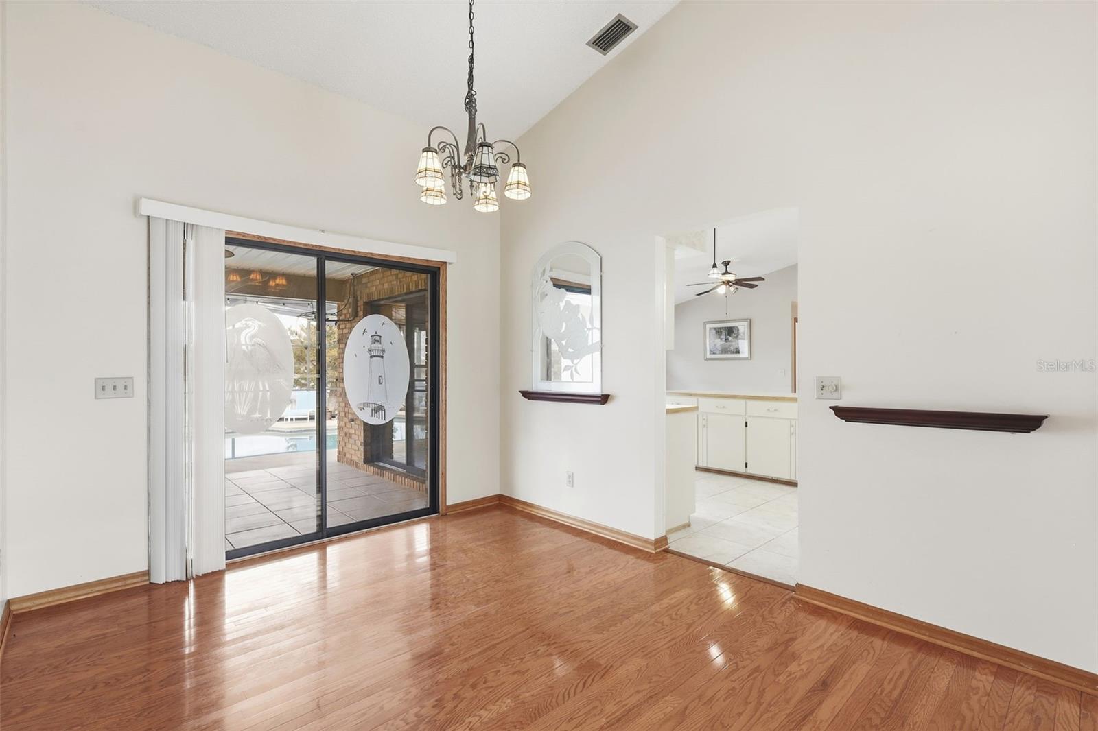 Amazing lakefront pool home in the highly sought-after Hidden Lake Estates community! This beautiful brick 3-bedroom, 2-bath home features soaring ceilings and a floor plan designed for both comfort and entertaining. From the kitchen, enjoy effortless flow into the family room along with sweeping views of the sparkling pool and serene lake beyond. Natural light pours into the main living areas, creating a bright and inviting atmosphere throughout. Major updates provide peace of mind, including a brand-new roof installed in November 2025 and solar panels that were recently reinstalled and are owned outright—offering significant energy savings. The A/C and water heater are both just 5 years old, and the A/C has been serviced quarterly. Best of all—no carpet! The spacious primary suite offers generous room, ample closet space, and a spa-like ensuite bath complete with a separate soaking tub and walk-in shower. This versatile floor plan provides endless potential to customize and truly make it your own. Step outside to your covered patio and enjoy Florida living at its finest. The oversized, solar-heated pool features an auto pop-up cleaning system for easy maintenance. Situated on nearly an acre, this property offers space to roam, relax, and entertain. Fish from your private dock while taking in peaceful views of Hidden Lake. This is lakefront living at its best—schedule your private showing today!