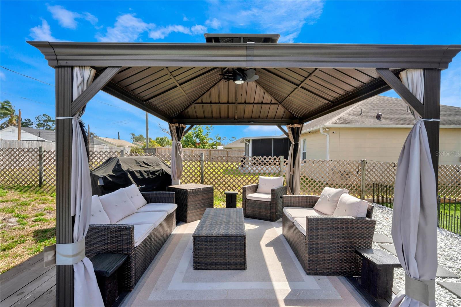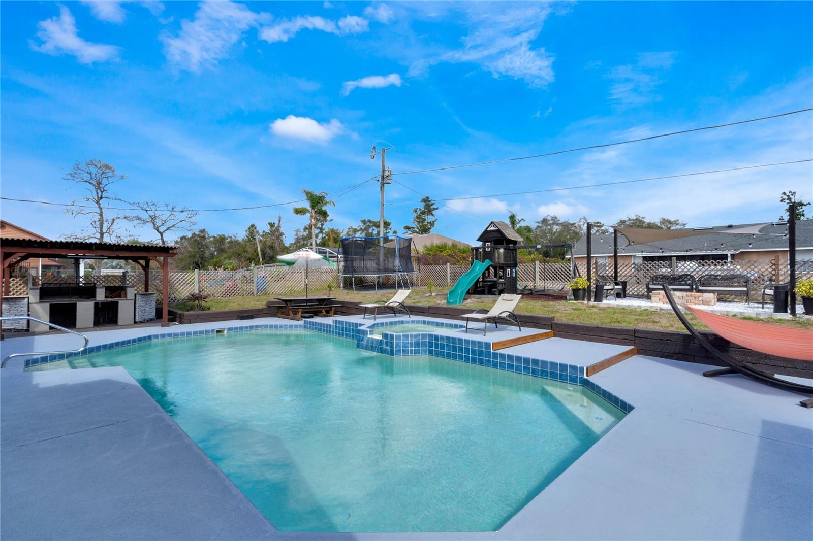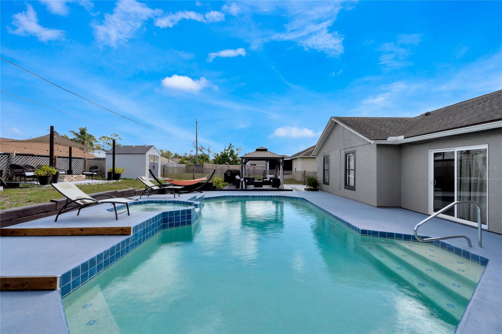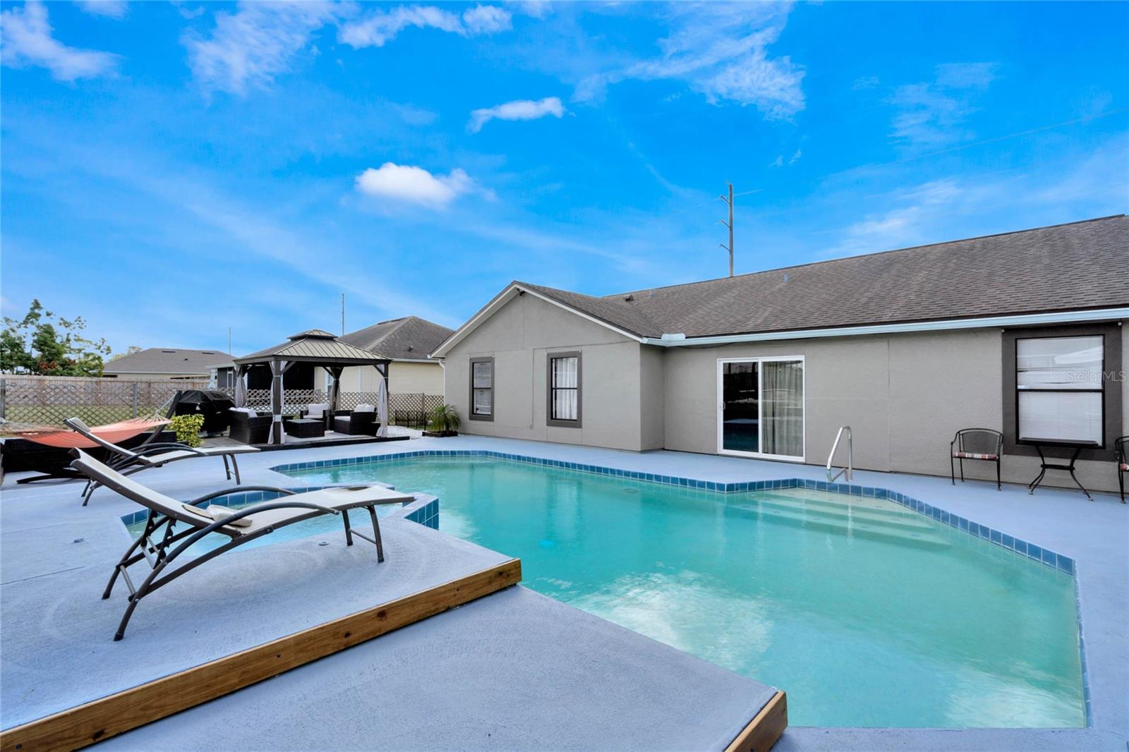 Your Private Florida Oasis – No HOA, All the Freedom Step into a stunning tropical retreat where comfort, style, and entertainment come together. Whether you're hosting lively gatherings, unwinding by the pool, or enjoying the thoughtfully designed outdoor space, this home offers the perfect blend of relaxation and functionality. Key Features: Freshly Painted Inside and Out – Enjoy the crisp, clean look of a home that feels brand new with fresh interior and exterior paint, creating a bright and welcoming atmosphere throughout. Resort-Style Pool & Jacuzzi – Enjoy a beautifully maintained pool with an integrated jacuzzi, perfect for year-round enjoyment. Expansive Backyard Designed for Entertainment – This fully fenced outdoor space includes a gazebo, pergola with a built-in grill and picnic area, a fire pit, a trampoline, a children’s play area, a basketball hoop, and a mini soccer field with synthetic turf. Spacious and Functional Layout – A well-designed split floor plan offers four bedrooms, two bathrooms, a living room, a family room, and a game room, providing ample space for both relaxation and entertaining. Recent Upgrades for Peace of Mind – A brand-new air conditioning system with a 10-year warranty, a 2017 roof, a newer hot water tank, smart lighting throughout social areas, and new ceiling fans enhance both efficiency and comfort. A Suncast 8'x10' storage shed provides additional storage solutions. Prime Location – Conveniently located in Deltona with easy access to I-4 and 415, placing you between Orlando’s world-renowned attractions and Florida’s beautiful beaches. Schools, shopping, and dining options are just minutes away. A Home That Offers More Whether you are a first-time homebuyer, an investor, or searching for the perfect Florida home, this property delivers. Its combination of space, style, and outdoor living makes it a rare find.