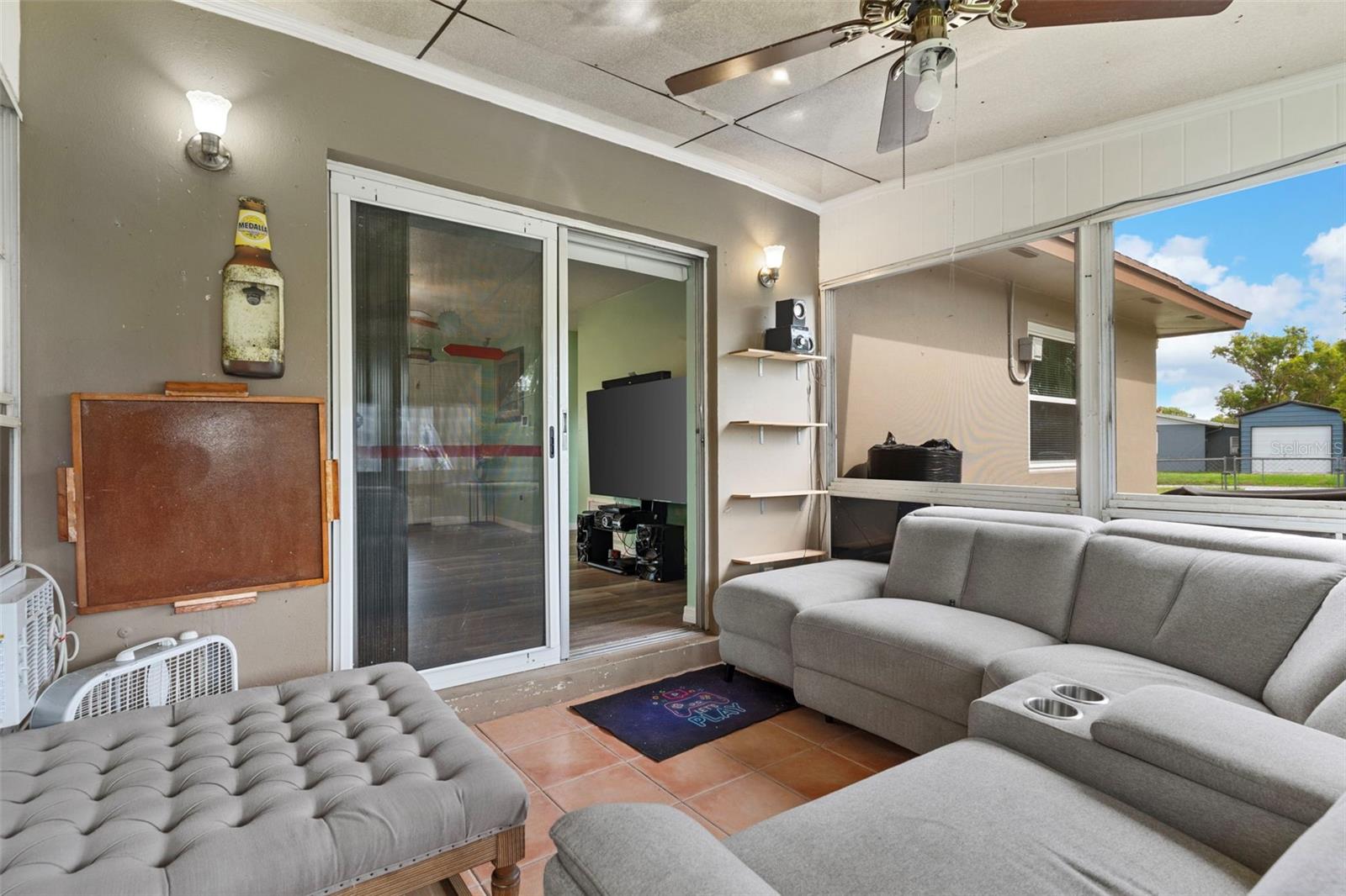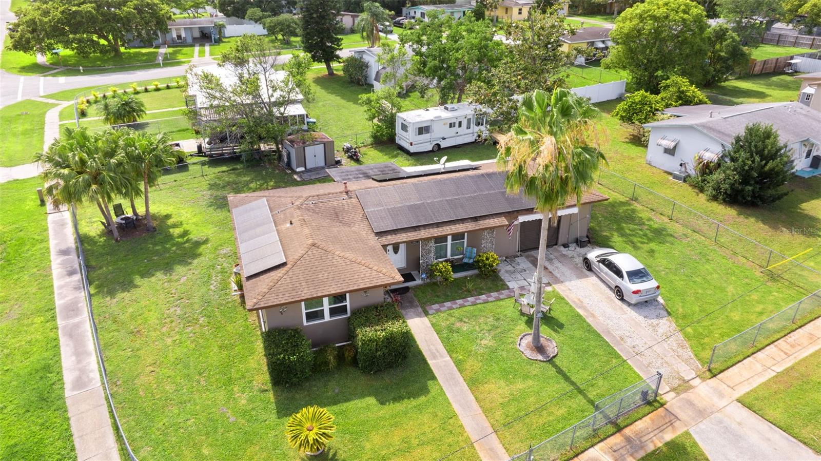 OWNER IS SUPER MOTIVATED...PRICE IMPROVEMENT + $2,000 SELLER CONCESSION! Welcome to this charming and well-maintained 2-bedroom, 1.5-bath home in the heart of Deltona! This cozy concrete block residence offers both comfort and functionality with several desirable features. As you arrive, you'll notice the oversized landscaped lot with plenty of space to park an RV, motorcycles, or additional vehicles. Also a JACUZZI that is INCLUDED (DOES NOT HEAT) The front of the home is fully fenced and includes an automatic electric gate for added privacy and convenience. Step inside to find a bright and open layout with thoughtful updates throughout. The living space flows into a relaxing enclosed porch, perfect for unwinding year-round. Enjoy the included Jacuzzi spa, ideal for relaxing evenings at home. The bathrooms have been updated with new shower heads, and the home also includes a water softener system fully paid for added comfort. Seller is also including additional water heater in the sale of the home. For those looking to save on energy bills, the property features assumable solar panels with a Good-Leap lease—information is available and attached for your convenience seller will not pay off solar; panels are transferable. Security cameras are also included, providing peace of mind. The attached 1-car garage has been freshly painted and can easily double as a workspace. In addition, there is a shed in the backyard that stays with the home—great for storage or hobby use. Whether you’re a first-time homebuyer, downsizing, or investing, this home offers a practical layout with room to make it your own. Located just minutes from major hospitals like Halifax Health and Advent Health, as well as shopping centers, entertainment, and dining options (all within 3.5–4.0 miles). You're also just 15 miles from Daytona Beach, making day trips to the coast a breeze! Deltona sits conveniently between Orlando and Daytona Beach, providing the perfect balance of suburban living and access to Florida’s top destinations. Don't miss out on this unique opportunity—schedule your private showing today!