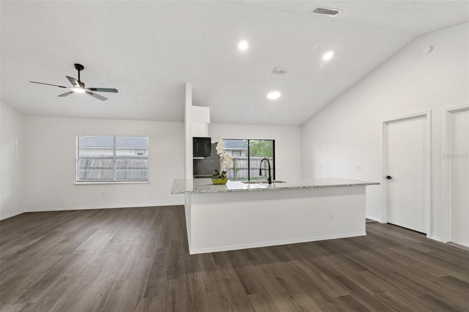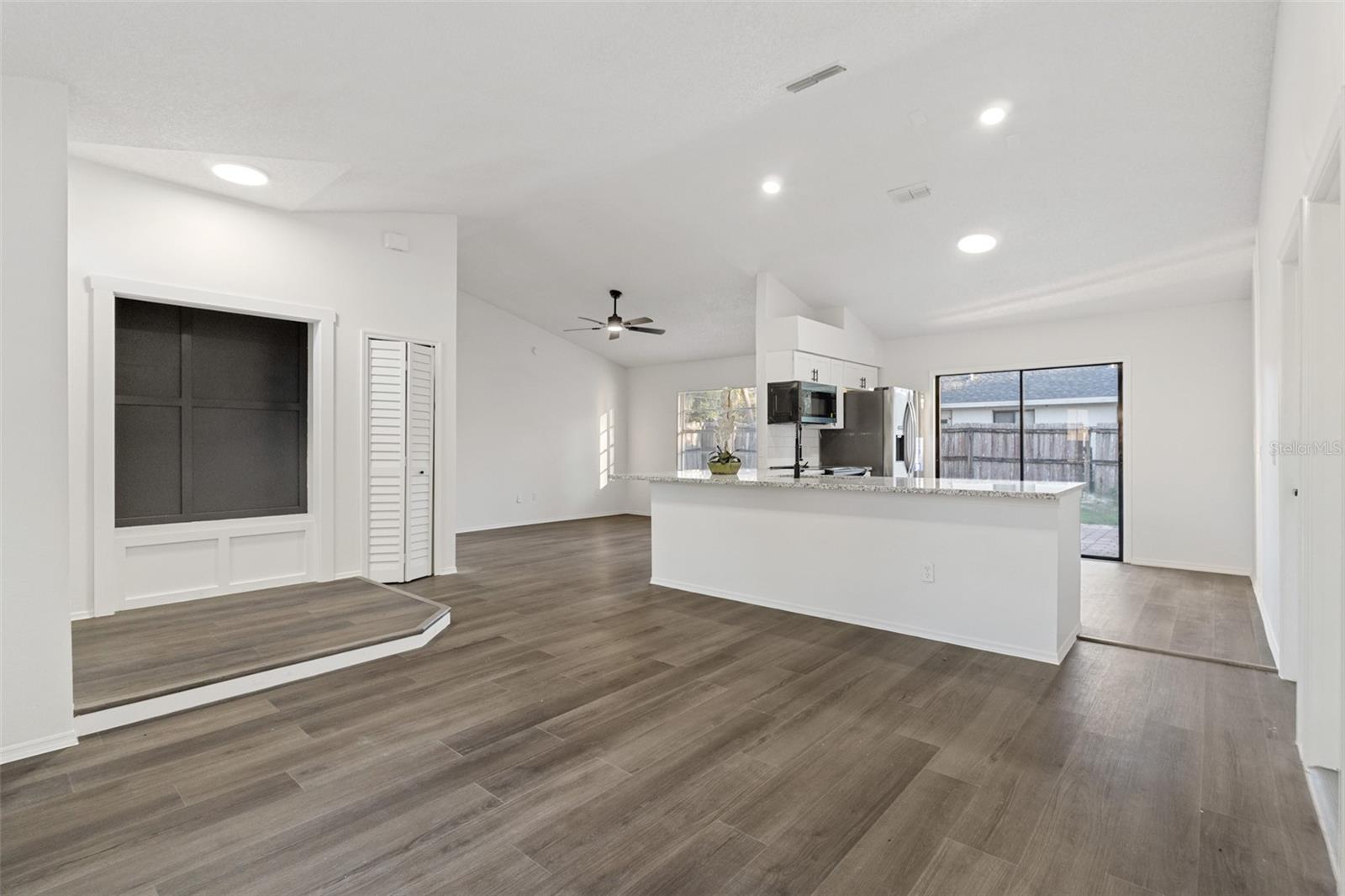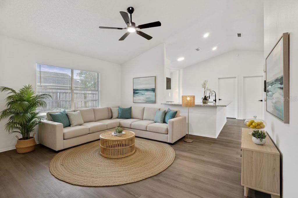 Beautifully Remodeled Corner-Lot Home in Deltona Lakes! One or more photos has been virtually staged. Move-in-ready 3-bedroom, 2-bathroom home on a large corner lot with stunning upgrades throughout — new LVP flooring, fresh interior and exterior paint, and a new HVAC system. Enjoy a bright split floor plan with vaulted ceilings, a bay window, and a stylish kitchen with granite countertops and stainless steel appliances. Relax or entertain in your spacious fenced backyard, perfect for gatherings or quiet evenings. Conveniently located near top-rated schools, shopping, dining, and major highways.Don’t miss this one — schedule your private tour today!