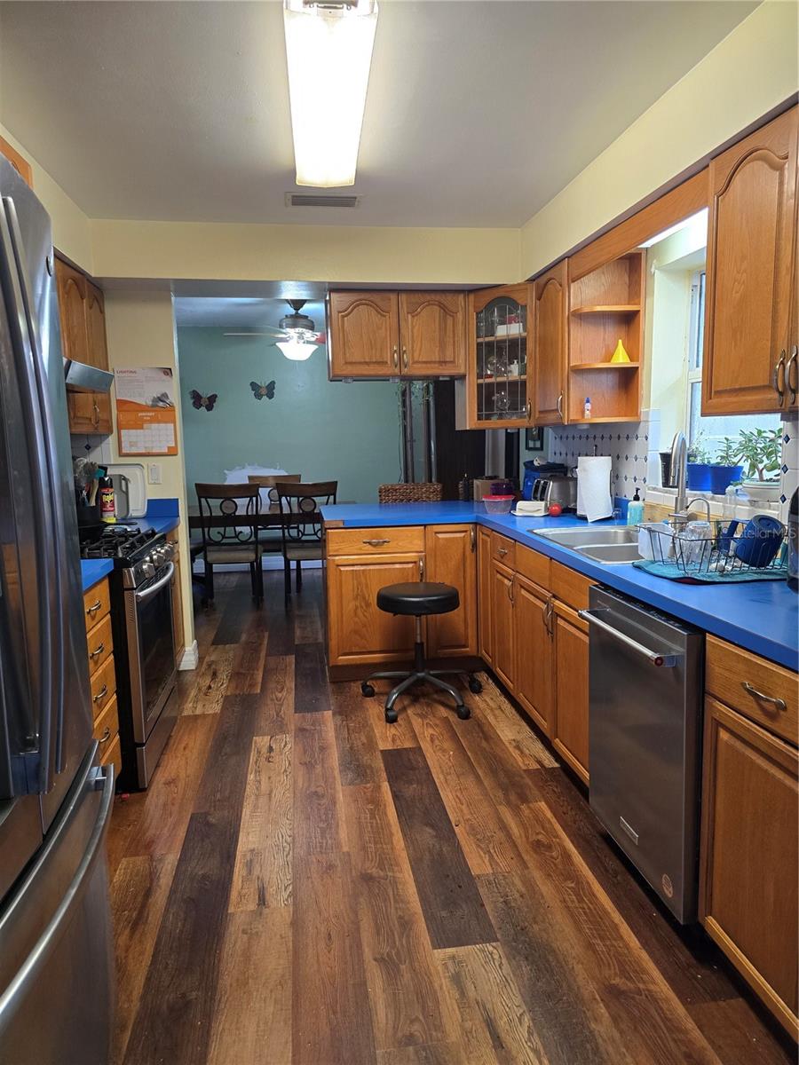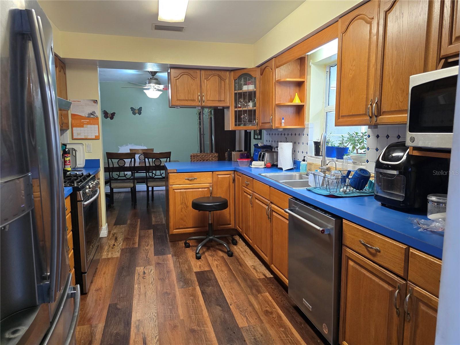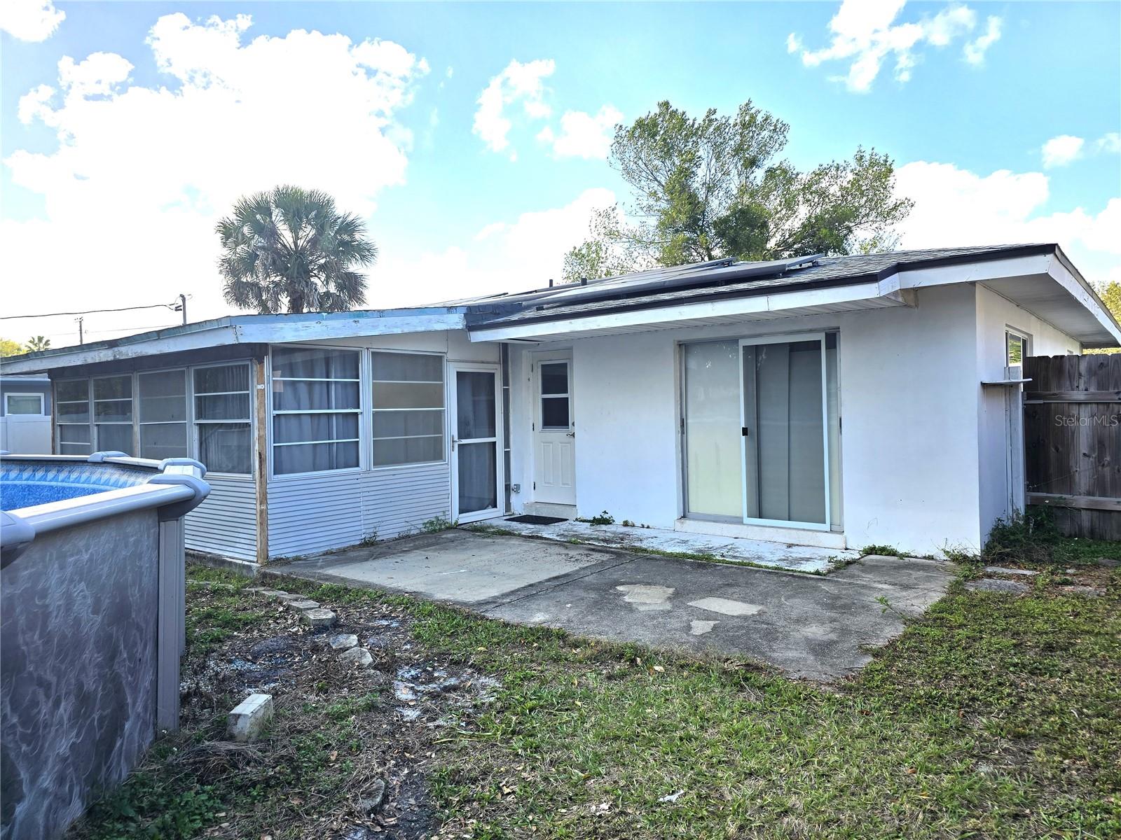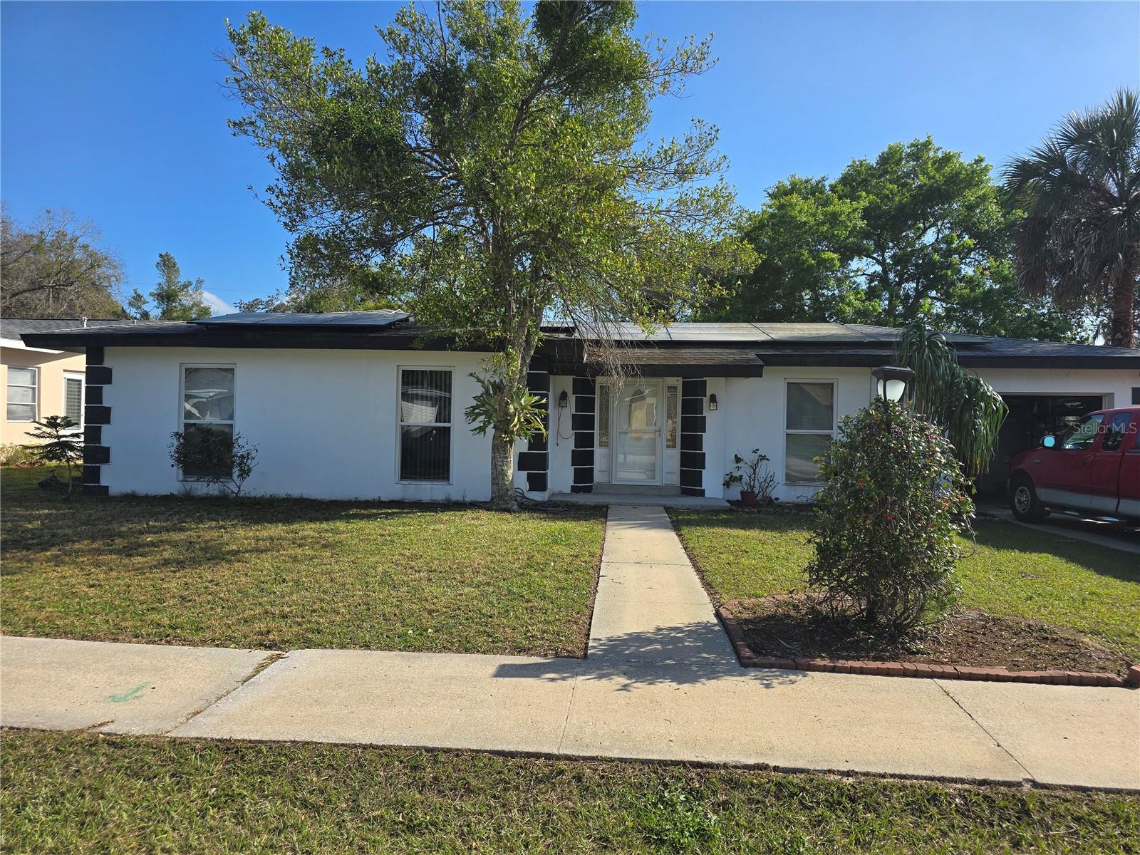 3 bedroom/2 bath home in the heart of Deltona! Wood laminate throughout the home with tile in the bathrooms. Kitchen has wood cabinets with stainless steel appliances. Master bath and hall bath have been updated. The rear porch is 17 x 10 and is fully enclosed with a 18,000 BTU window AC for additional heated/cooled square footage (not recorded in the current 1338 heated/cooled sq. ft. of the home). Huge yard! Home has solar panels so monthly electric bill is $36 per month. Great location - close to shopping, schools, medical facilities, restaurants - easy access to I-4.