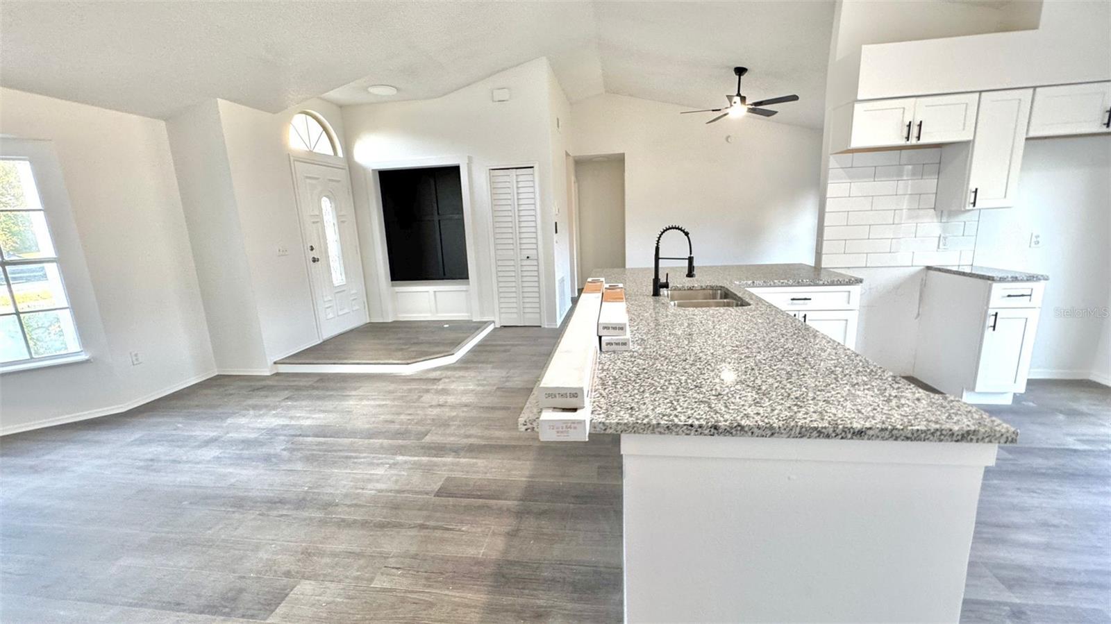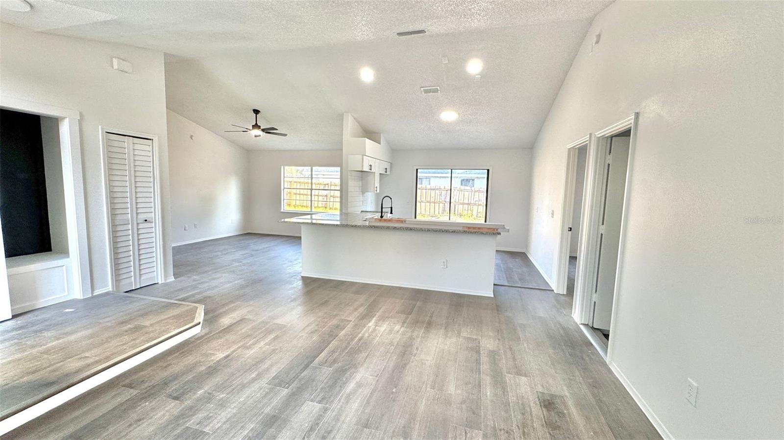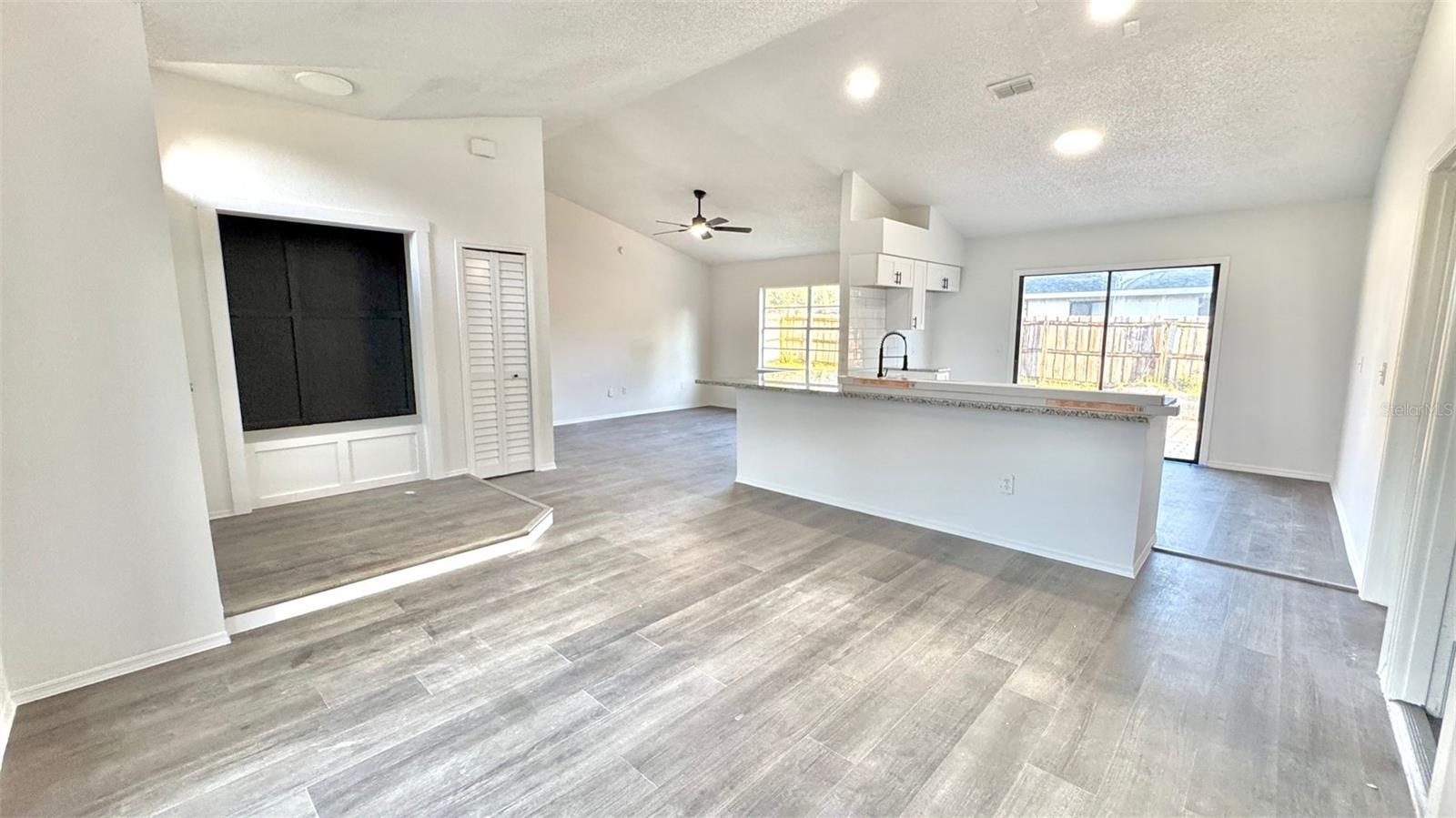 Beautifully Remodeled 3-bedroom, 2-bathroom home located on a large corner lot in the peaceful Deltona Lakes subdivision. With brand-new luxury vinyl plank (LVP) flooring throughout, fresh interior and exterior paint, and a new HVAC system, this move-in-ready home has been thoughtfully upgraded from top to bottom. Enjoy a desirable split floor plan that features a bright dining area with a charming bay window, a spacious living room with soaring vaulted ceilings, and a stylish kitchen with granite countertops, a breakfast bar, and brand-new stainless steel appliances. Step through the sliding glass doors and discover your own private oasis—a large fenced-in backyard perfect for entertaining, sunbathing, grilling out, or simply relaxing with your favorite book. There's room to garden, play, or create the outdoor space of your dreams. Perfectly located with convenient access to top-rated schools, shopping centers, dining options, parks, and major highways Don’t miss this opportunity—schedule your private tour today!