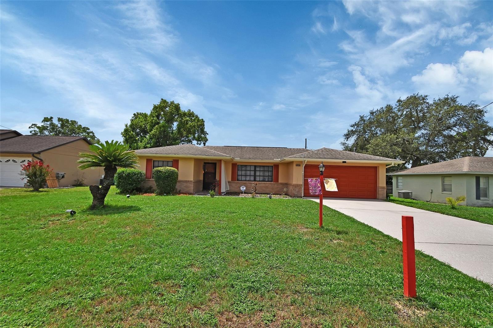 Welcome home! This is a beautifully maintained two bedroom, two bathroom, two car garage home. As you enter the front door into the great room, you are met with an abundance of natural light, warm colors and beautiful laminate floors. There’s a formal dining that is spacious enough for entertaining. The kitchen boasts stainless steel appliances and plenty of counter and storage space. There is also an eat-in dining area with sliding glass doors that exit to the large 11 x 19 screened back porch that looks out onto the spacious backyard and is perfect for outdoor living. The primary bedroom has a large walk-in closet and en suite bathroom with a walk-in shower. The washer and dryer will remain with the home. A lawnmower is even included! This home has the perfect mixture of updates while maintaining some of its unique, vintage charm. Some important items: new water heater, the air conditioner was installed in 2013, roof was also installed in 2013, rain gutters. It is conveniently located minutes away from I-4, Epic Theatres, Amazon Distribution Center, medical facilities, and many other conveniences. Truly, this won’t last long. Call for your private showing today! Home is sold "As Is"