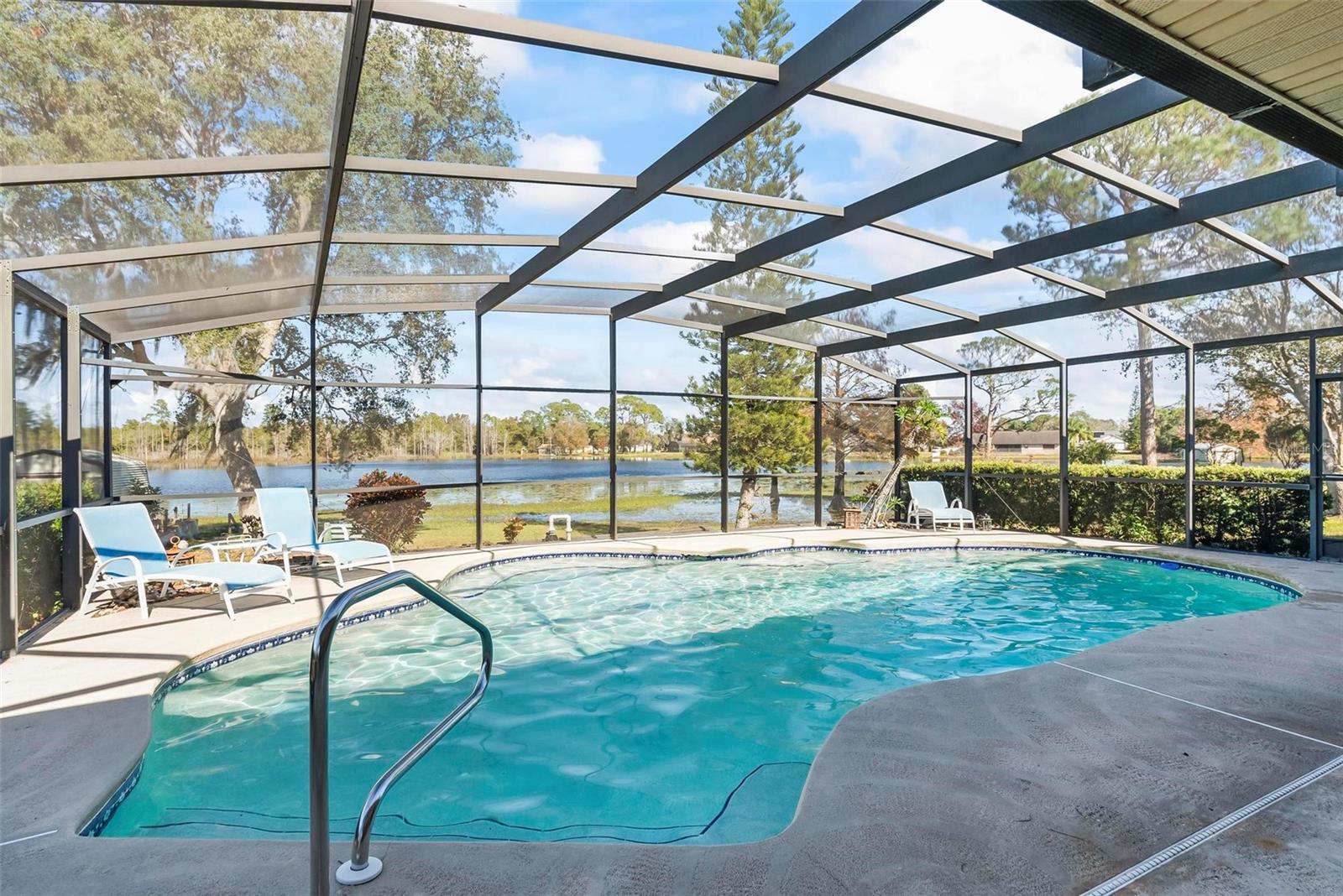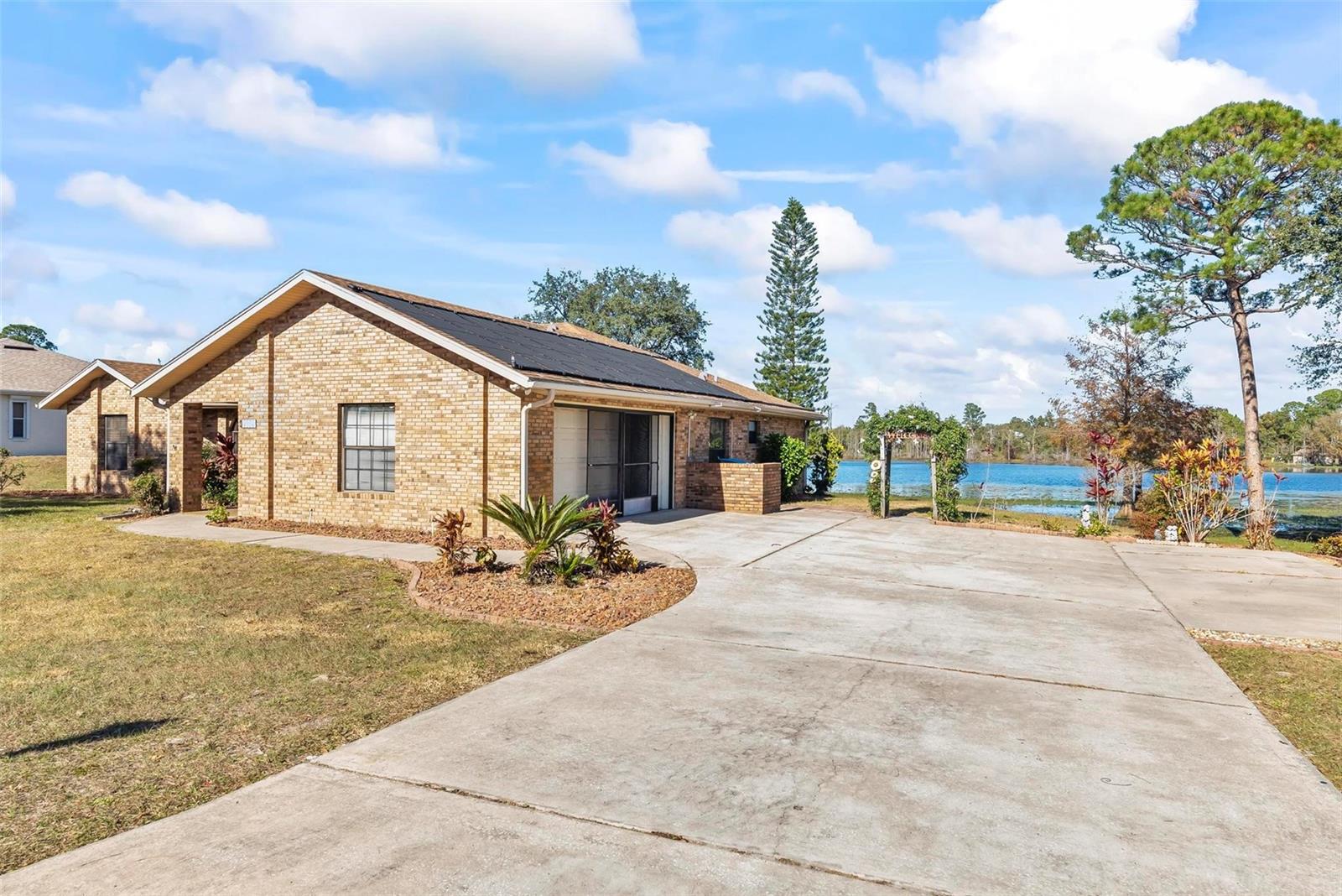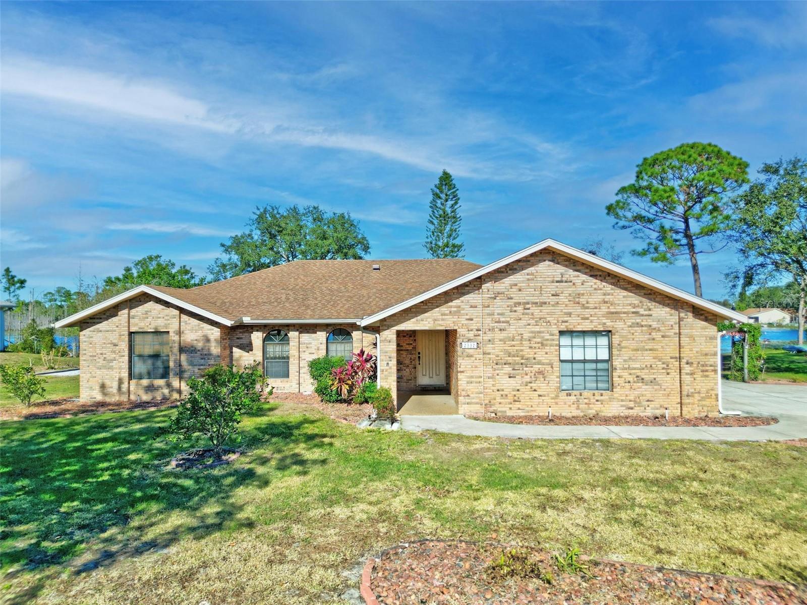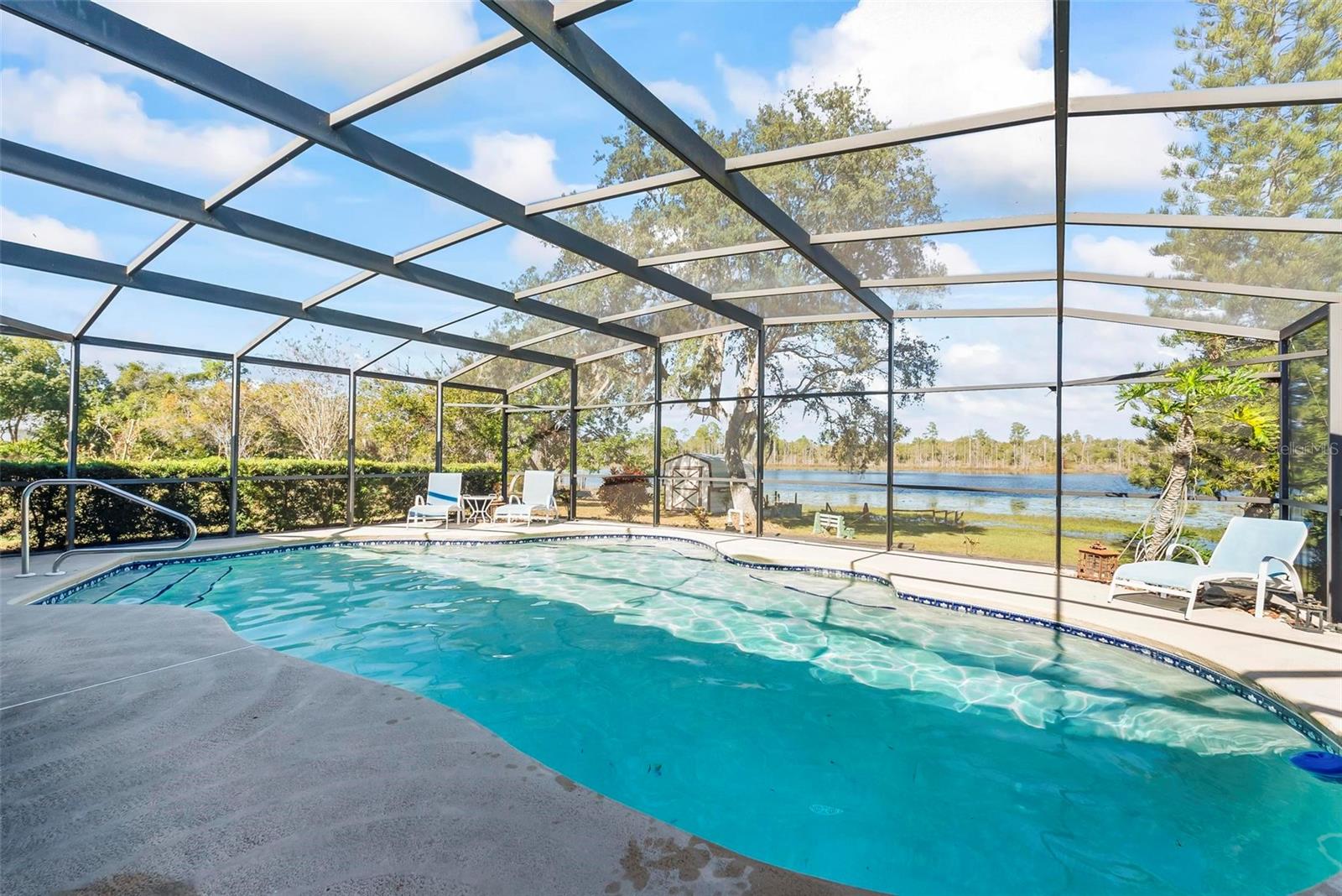 Wow What a view! Waterfront property And Pool! NEW ROOF Just Installed 11/25 Beautiful Brick Home located in Hidden Lakes! High ceilings with decorative windows. Solid wood floors in Living and Dining room . Huge kitchen with lots of cabinets large counter top area with room for 6 bar strolls! All open up to the Eat in area and the large family room! All tile floors with the magnificent view of the Lake and Pool in back yard! Also enjoy the Truss porch 23.11 x 10.10 off the screened in pool solar heated that's over sized pool 31 x 18 with the auto pop up cleaning system. Spilt bedroom plan Primary Bedroom has walk in closet and regular closet spacious bath room with walk in shower and roman tub with separate toilet area that goes to the pool area. Spare bedroom's are nice size and one has a walk in closet! Inside laundry room with Side Garage 19.10 x 20.11 wit large driveway ! Oversized lot that's .84 acre that goes into the lake with dock! AC unit is 5 years old and gets serviced quarterly. Hot water Heater is 5 years old. Have 4 Point and Wind Mitt in attachments along with Sellers discloser and existing survey. Solid wood doors with stain package , double glass windows Quality Built! New Roof Will Be Installed and solar panels for the Pool will be Installed before Closing!!