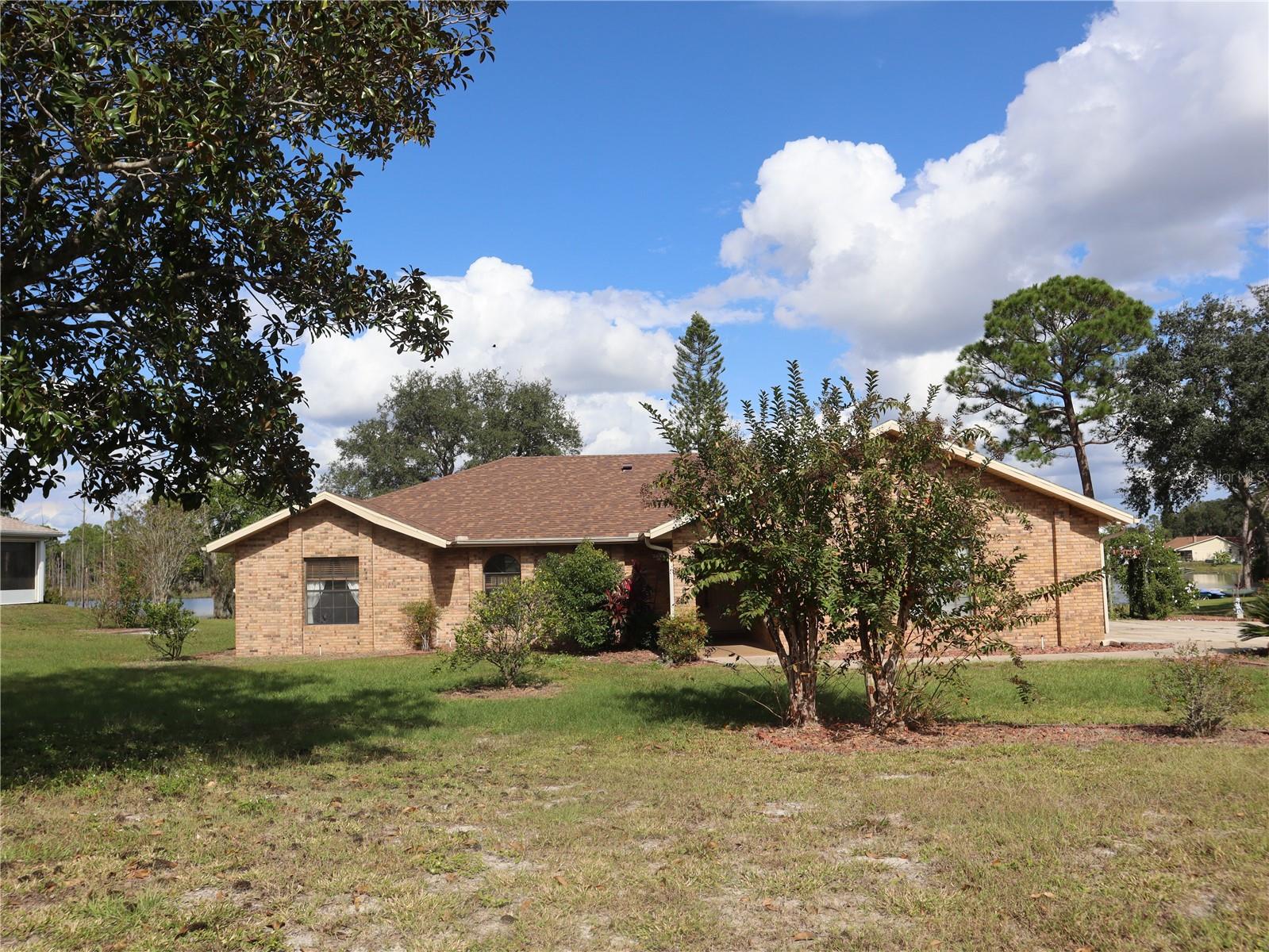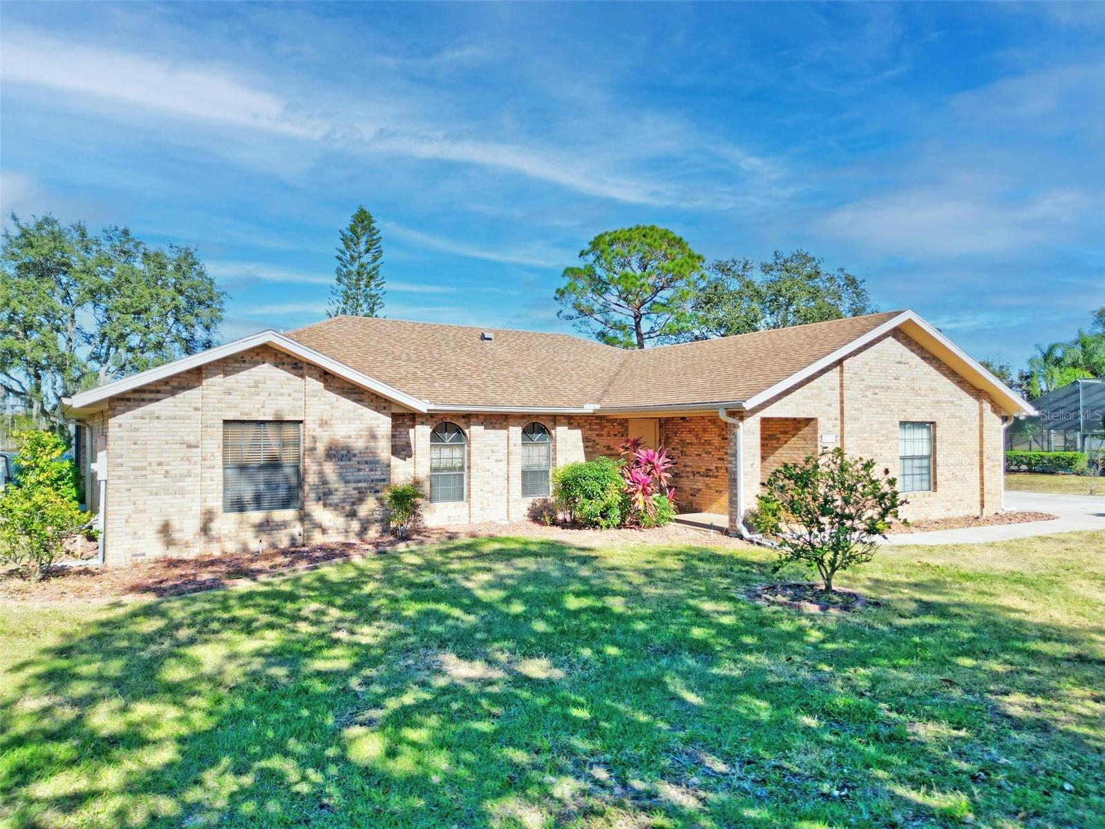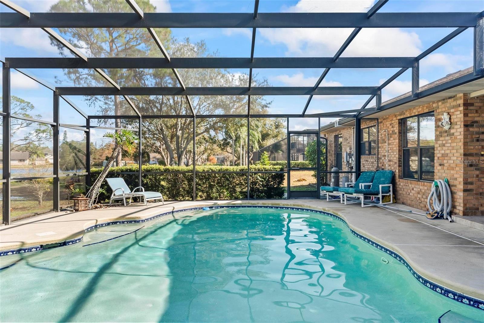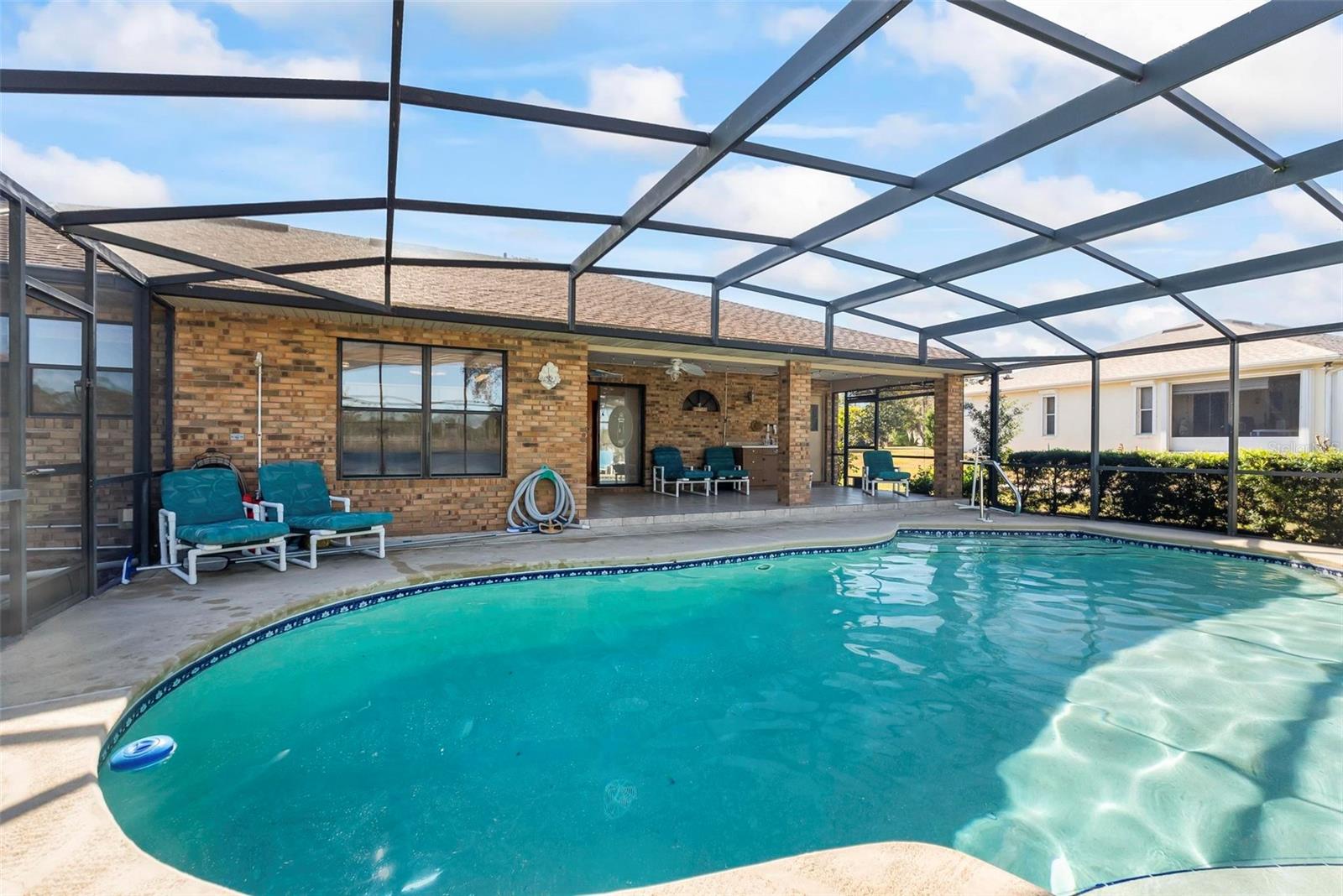 Wow What a view! Waterfront property And Pool! NEW ROOF Just Installed 11/25 Beautiful Brick Home located in Hidden Lakes! High ceilings with decorative windows. Solid wood floors in Living and Dining room . Huge kitchen with lots of cabinets large counter top area with room for 6 bar strolls! All open up to the Eat in area and the large family room! All tile floors with the magnificent view of the Lake and Pool in back yard! Also enjoy the Truss porch 23.11 x 10.10 off the screened in pool solar heated that's over sized pool 31 x 18 with the auto pop up cleaning system. Spilt bedroom plan Primary Bedroom has walk in closet and regular closet spacious bath room with walk in shower and roman tub with separate toilet area that goes to the pool area. Spare bedroom's are nice size and one has a walk in closet! Inside laundry room with Side Garage 19.10 x 20.11 wit large driveway ! Oversized lot that's .84 acre that goes into the lake with dock! AC unit is 5 years old and gets serviced quarterly. Hot water Heater is 5 years old. Have 4 Point and Wind Mitt in attachments along with Sellers discloser and existing survey. Solid wood doors with stain package , double glass windows Quality Built! New Roof Will Be Installed and solar panels for the Pool will be Installed before Closing!!