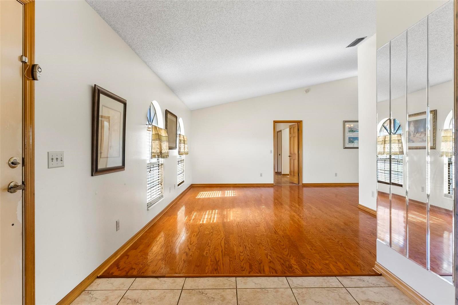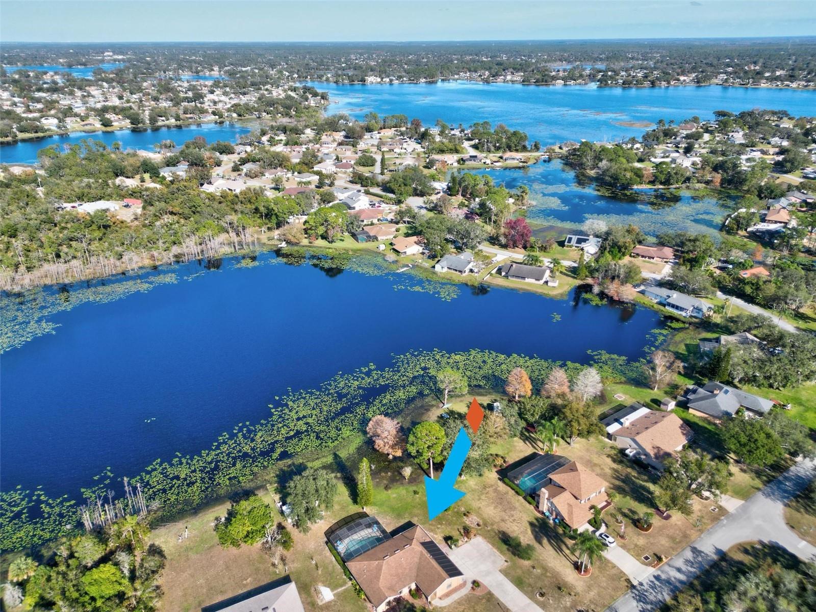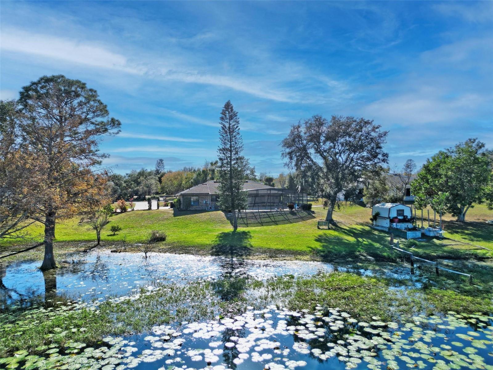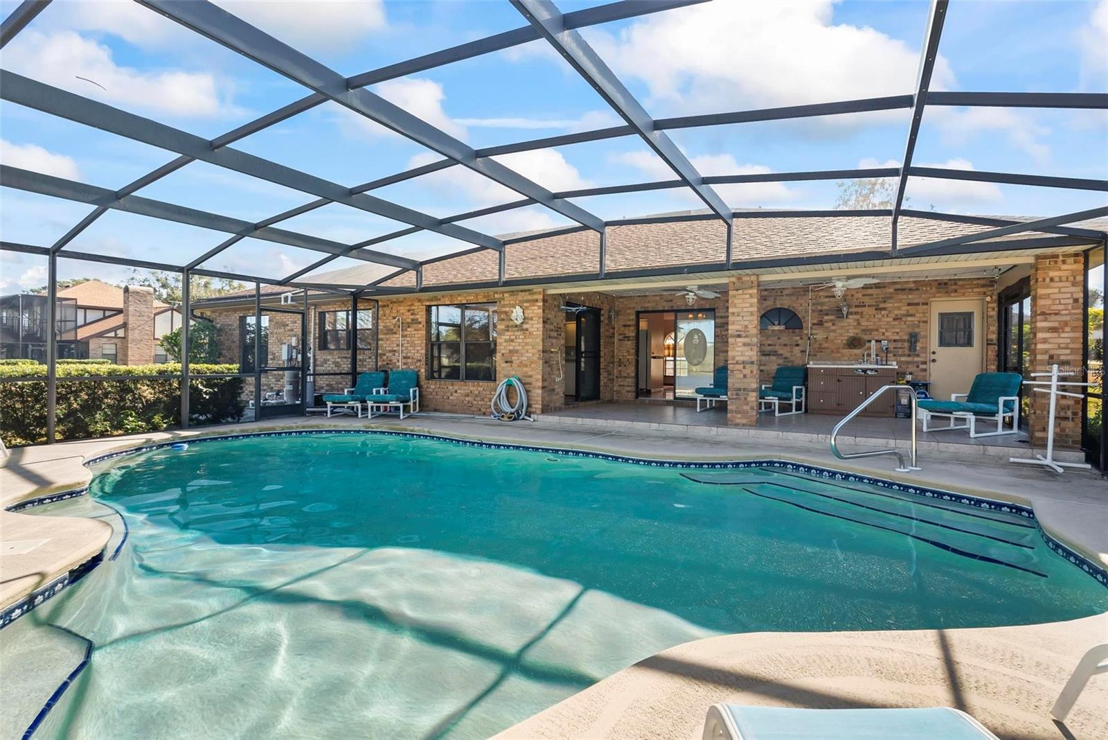 Wow What a view! Waterfront property And Pool! NEW ROOF Just Installed 11/25 Beautiful Brick Home located in Hidden Lakes! High ceilings with decorative windows. Solid wood floors in Living and Dining room . Huge kitchen with lots of cabinets large counter top area with room for 6 bar strolls! All open up to the Eat in area and the large family room! All tile floors with the magnificent view of the Lake and Pool in back yard! Also enjoy the Truss porch 23.11 x 10.10 off the screened in pool solar heated that's over sized pool 31 x 18 with the auto pop up cleaning system. Spilt bedroom plan Primary Bedroom has walk in closet and regular closet spacious bath room with walk in shower and roman tub with separate toilet area that goes to the pool area. Spare bedroom's are nice size and one has a walk in closet! Inside laundry room with Side Garage 19.10 x 20.11 wit large driveway ! Oversized lot that's .84 acre that goes into the lake with dock! AC unit is 5 years old and gets serviced quarterly. Hot water Heater is 5 years old. Have 4 Point and Wind Mitt in attachments along with Sellers discloser and existing survey. Solid wood doors with stain package , double glass windows Quality Built! New Roof Will Be Installed and solar panels for the Pool will be Installed before Closing!!