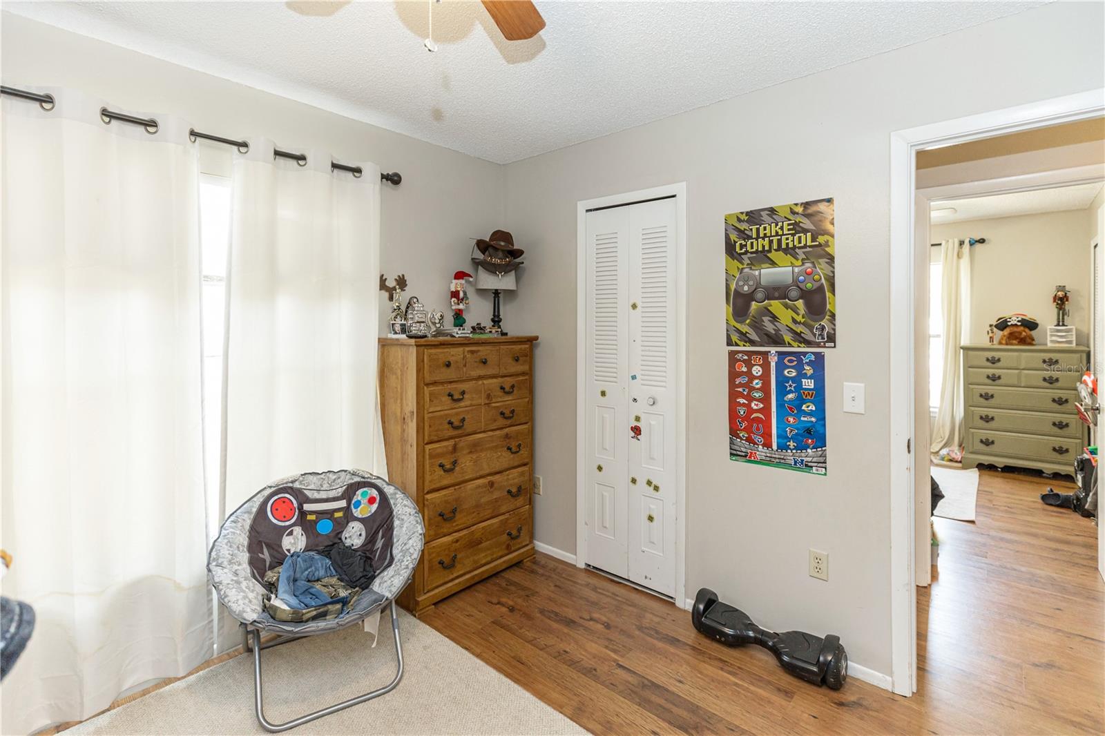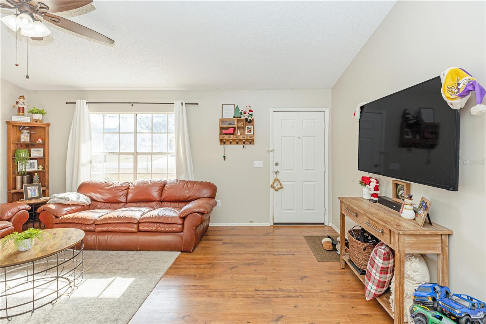 Cute as a Button! This 3 bedroom 2 bath charmer is sure to delight. A deck at the entry welcomes you with a pretty sitting area so you can enjoy the neighborhood happenings. The home rests upon an oversized corner lot, fenced to be pet and child friendly. There is plenty of parking for gathering alongside the fence by the corner. There are sliding doors leading to a paver patio off the primary bedroom leading to the backyard to enjoy the sunshine and fresh air. Laminate flooring throughout all but the bathrooms lends itself to easy cleanup. The kitchen sits in the heart of the home so the chef can participate in all the activities. To make purchasing this home a little sweeter there are several delicious pineapple plants in the back yard! Make your showing appointment today so you don't miss out on this affordable adorable home. This property may be under audio/visual surveillance.