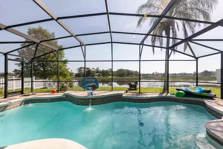 Reduced! Welcome to your own private paradise! Features open concept with 4 large bedroom. If you need more bedrooms, this home can be transformed into a 5-bedroom home. Bonus room could be man cave or beautiful home office. IT has 2.5 bathrooms and a HUGE kitchen with beautiful counter tops. This home has a newer roof (July 2022) and a newer water heater (2016). AC is only 5 months old. Very well care for home. Fresh paint inside and out. Enjoy sunrises from your covered patio and screen-enclosed pool overlooking Louise lake. Newer a/c, pool pump, and freshly painted interior. This home is a DREAM come true. Located with easy access to Florida attraction area or head North to THE WORLD MOST FAMOUS BEACH. Daytona Beach and home of car racing. Hurry get your new home for the NEW YEAR.