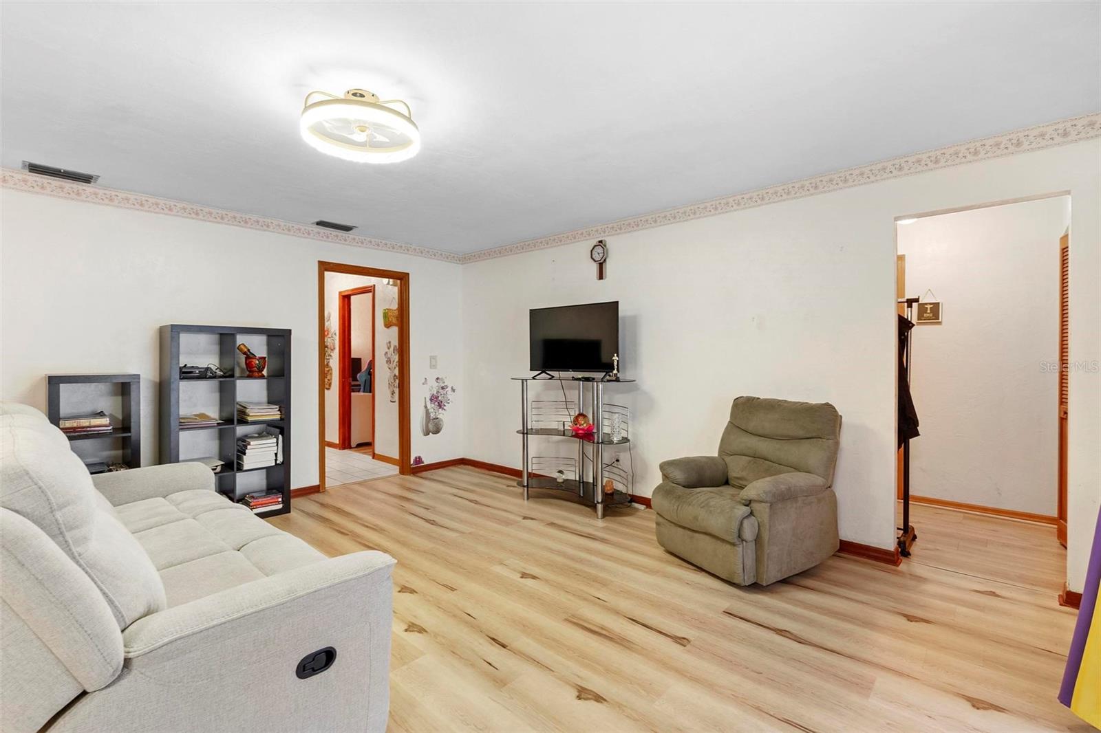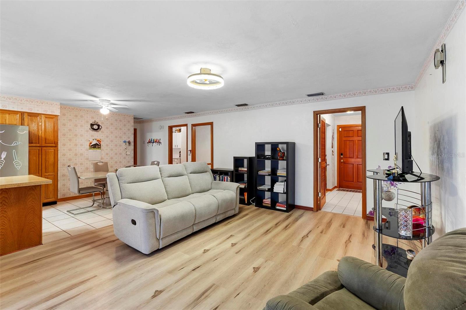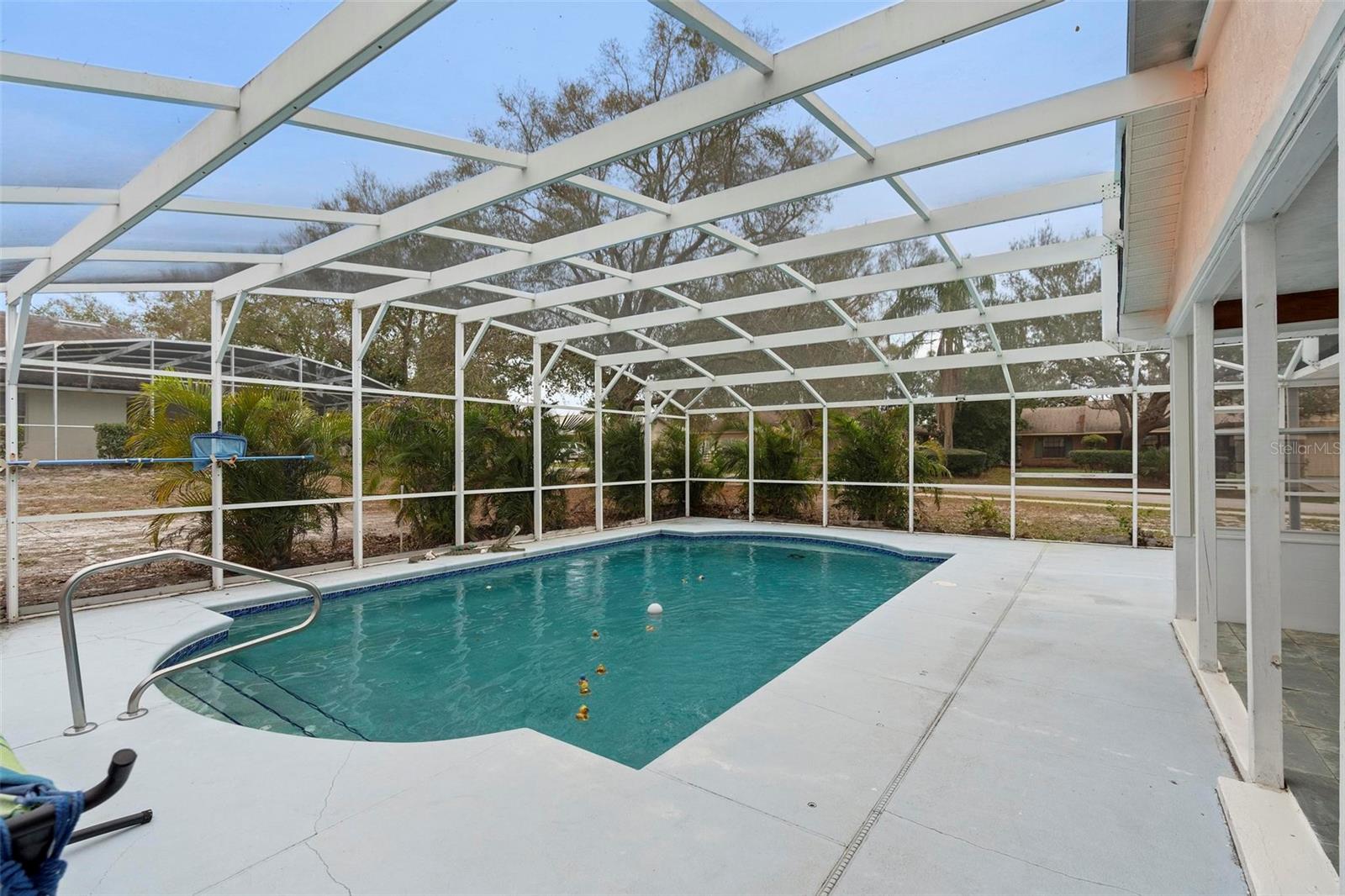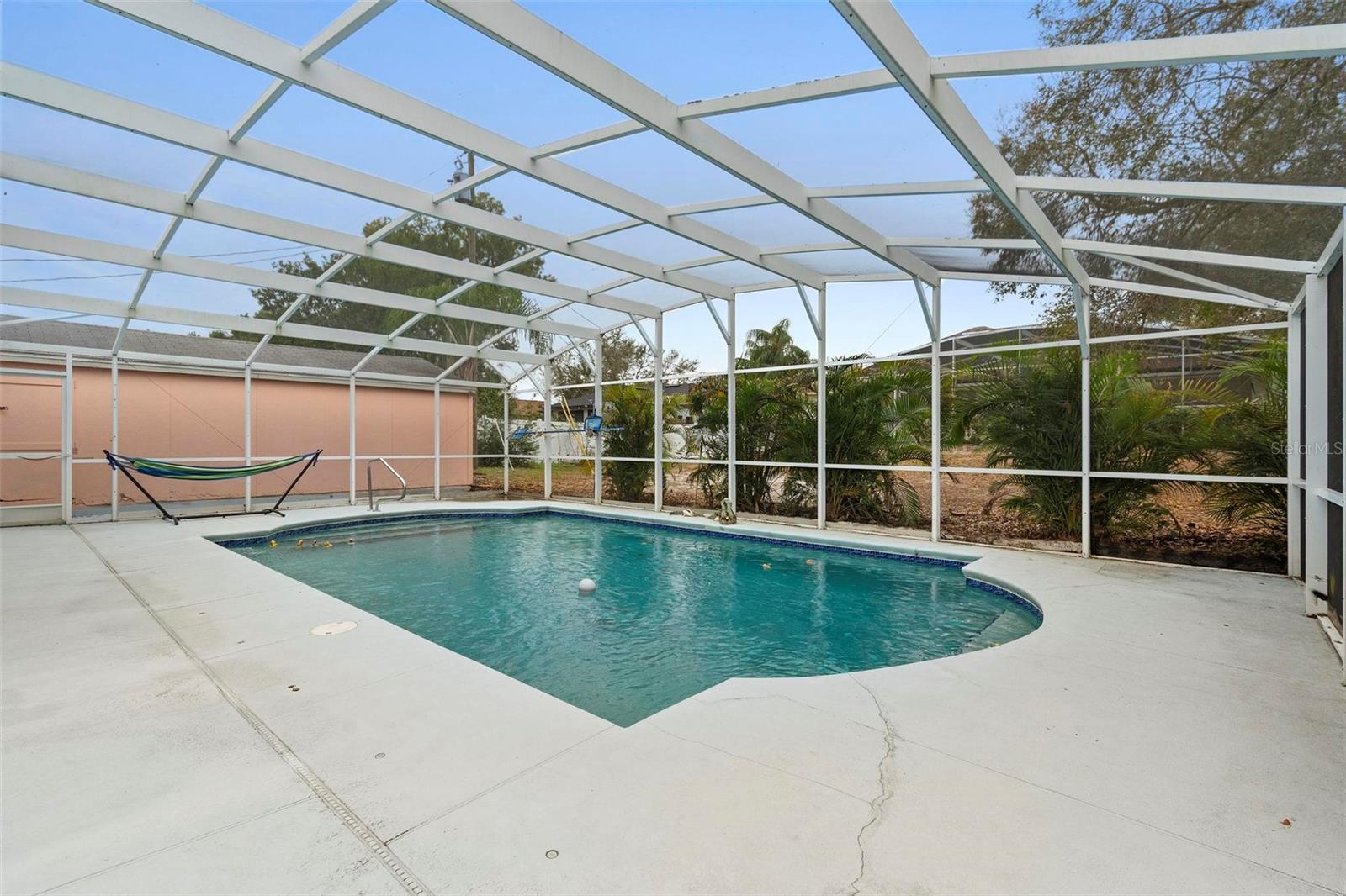 Welcome to this beautifully maintained 3-bedroom, 2-bathroom pool home located in the desirable community of Deltona, Florida. Situated on a spacious corner lot, this home offers both privacy and plenty of room for outdoor enjoyment. The open-concept floor plan features a bright and airy living area that seamlessly flows into the dining and kitchen spaces—perfect for entertaining family and friends. The kitchen has been updated with newly replaced floor tile, adding a fresh and modern feel to the heart of the home. In addition to the three bedrooms, you'll find a versatile den that can easily be converted into a fourth bedroom to suit your needs. The home’s centerpiece is the sparkling in-ground pool, providing a relaxing retreat in your own backyard. Whether you're enjoying a sunny afternoon by the pool or hosting gatherings, this space is perfect for creating lasting memories. Recent updates include brand-new floors in the living room, bedrooms, and master bath, complementing the updated kitchen tile for a cohesive, contemporary look throughout. Additionally, a large shed on the property provides extra storage space—ideal for tools, equipment, or even a workshop. The large corner lot offers ample outdoor space for pets, gardening, or simply soaking up the Florida sunshine. With its prime location in Deltona, you're close to shopping, dining, schools, and have easy access to major highways for a stress-free commute. An added bonus: the current mortgage may be assumable with an accepted contract and qualifying credit—offering a potential opportunity for favorable financing terms. This home truly has it all—the perfect blend of comfort, convenience, and style. Don’t miss the opportunity to make this beautiful property your own!
