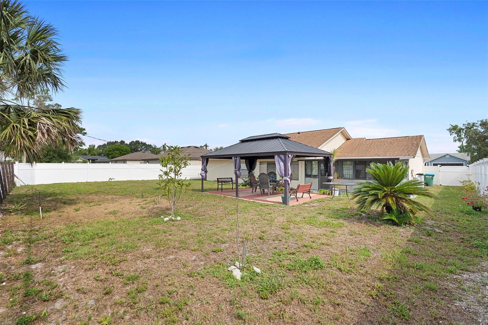 Welcome to Deltona—an inviting and well-maintained home that offers the perfect blend of comfort, space, and outdoor living. Situated on a generous lot, this property provides privacy, flexibility, and room to grow—ideal for families, entertainers, or anyone looking to enjoy Florida living to the fullest. Step inside and you’ll be welcomed by a spacious layout with multiple living and dining areas, giving you the freedom to design the space to fit your lifestyle. A highlight of the home is the air-conditioned enclosed Florida Room, offering a bright and comfortable space for relaxing, working, or entertaining year-round. You’ll also enjoy the large 14' x 19' enclosed patio, perfect for hosting gatherings or unwinding in the evenings. The backyard is a true standout—fully fenced and featuring a 14' x 20' gazebo, ideal for outdoor dining, family get-togethers, or simply enjoying peaceful mornings with your favorite beverage. There’s plenty of room for gardening, pets, or even adding a pool. Conveniently located just minutes from shopping centers, dining options, parks, and major roadways, this home is both peaceful and connected. Whether you're upsizing, downsizing, or looking for your next chapter, 2287 Belen Dr delivers space, charm, and value.