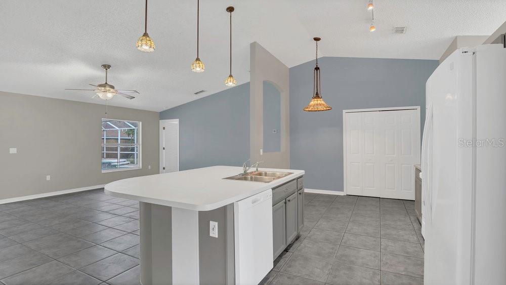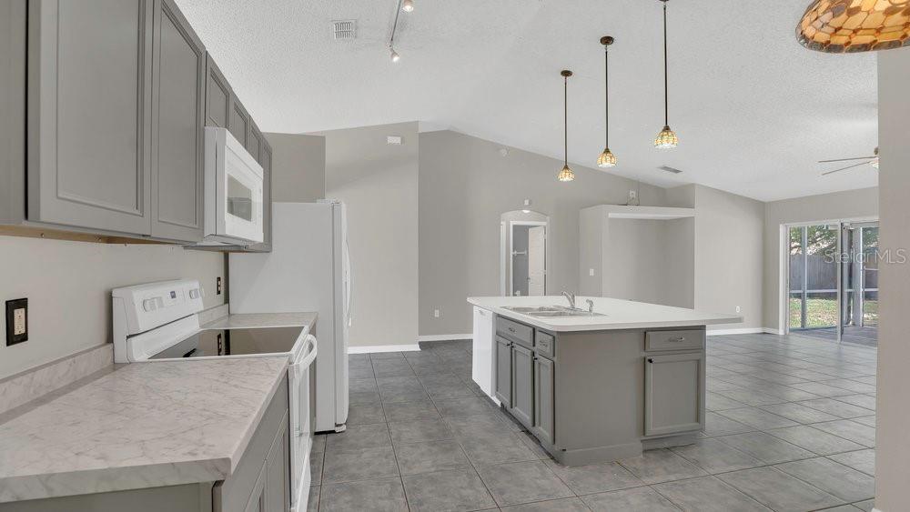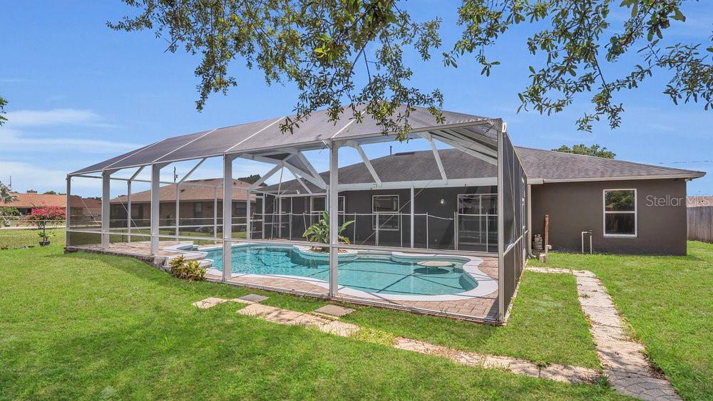 POOL HOME. Check out this 4 bedroom 2 bath Holiday built house located on a quiet side street in Deltona with easy access to I-4 and shopping. Freshly painted, tile throughout and high ceilings. Huge kitchen with new appliances, tons of cabinets, closet pantry and a breakfast bar that overlooks the spacious living room that leads to the screen enclosed porch with an open area and an inground swimming pool. The primary bedroom is nice and bright and has a walk-in closet. There is also an indoor laundry room. AC is only 5 years old. Roof 2018. Water Heater is less than a year old. Septic has been pumped in the last 18 months. Move in ready. Zoned for University High. Go Titans.