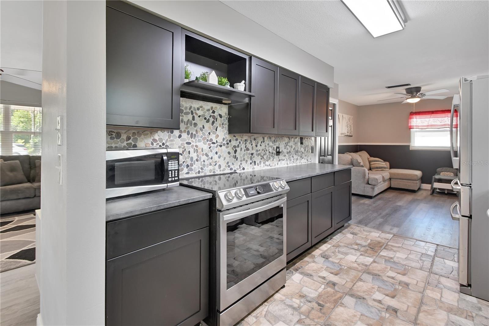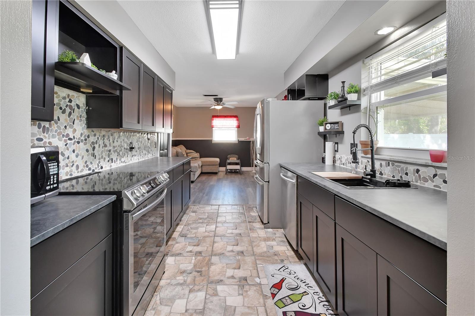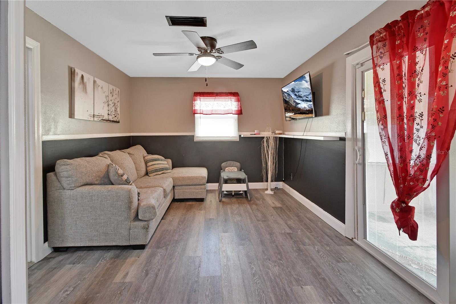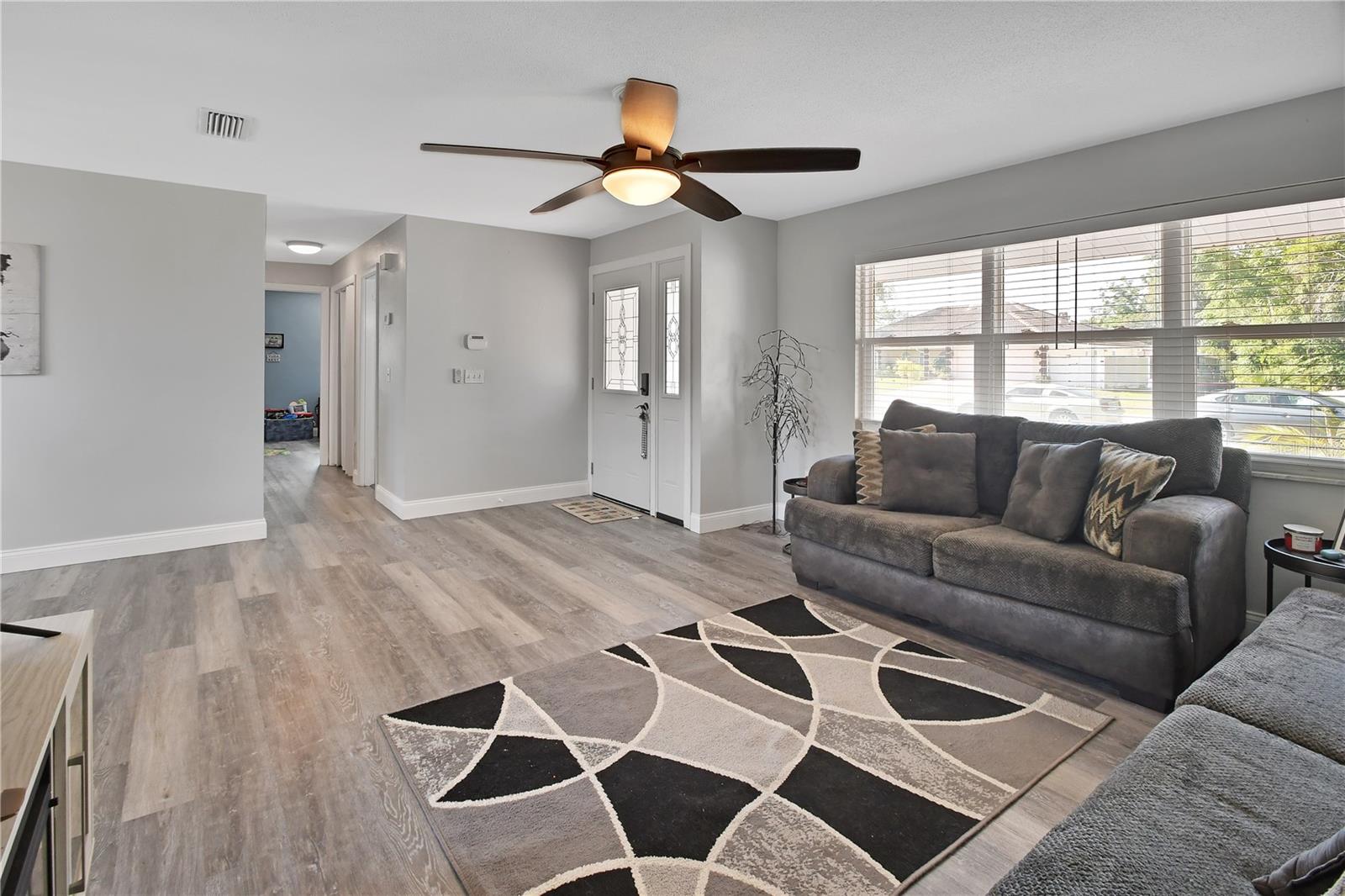 Welcome to this move-in ready 3-bedroom, 2-bath block home offering 1,624 square feet of well-designed living space in an excellent location. With easy access to shopping, restaurants, and the interstate, this home is perfect for convenience and lifestyle. Just a 30-minute drive to New Smyrna Beach and 10 minutes to the scenic Spring-to-Spring Trail, ideal for walking, biking, and outdoor adventures. This home has seen thoughtful updates throughout, including: • Roof and HVAC are just under 10 years old • Windows and exterior doors (2017) • Mini split system for added 3rd bedroom (2019) • Luxury vinyl plank flooring and 5” baseboards (2023) • Stylish kitchen facelift (2025) • Inside and outside electrical panels replaced in 2023 The kitchen has received a recent facelift, giving it a fresh, contemporary feel to the heart of the home. The garage has been very well converted into a laundry room, mudroom, and a spacious third bedroom with its own mini split system for customized comfort. Situated on nearly 1/4 acre, the fully vinyl-fenced backyard offers privacy and room to relax, complete with a storage shed and an above-ground swimming pool—your own outdoor retreat. This move-in ready gem is the perfect blend of location, comfort, and value—don’t miss your opportunity to make it yours!