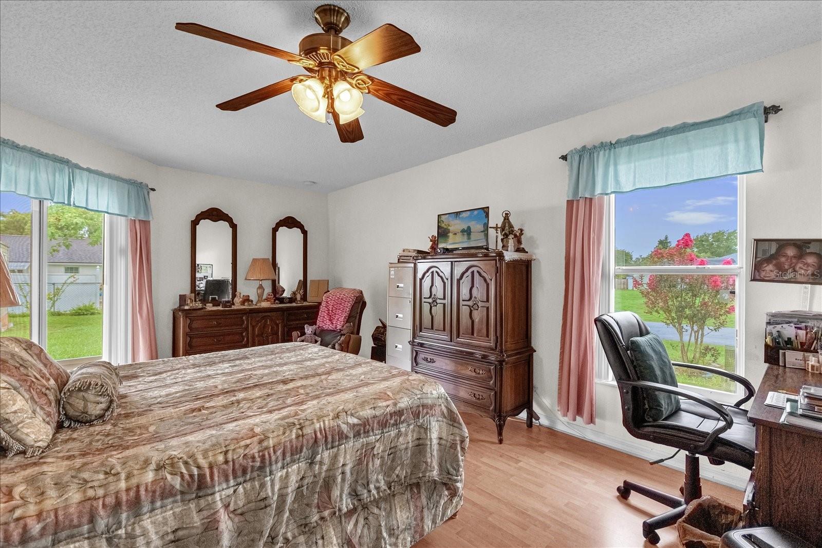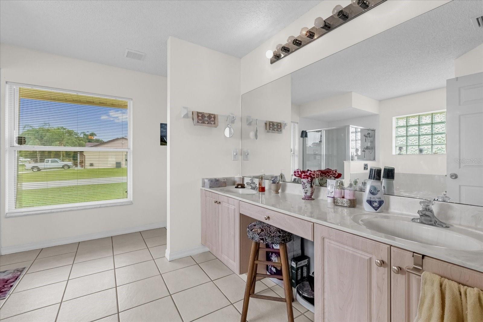 This stunning 3-bedroom, 2-bathroom home, built in 2006, is in pristine, move-in-ready condition, perfect for those seeking comfort and style. Nestled on an oversized corner lot, the property boasts exceptional curb appeal and ample outdoor space. The expansive primary bedroom serves as a serene retreat, complemented by a luxurious primary bathroom featuring a jacuzzi soaker tub, a separate shower, and elegant double vanity sinks. The heart of the home is its well-appointed kitchen with a convenient breakfast bar, flowing seamlessly into a formal dining room and a cozy dinette—ideal for hosting large family gatherings or entertaining guests. A 2-car garage provides ample storage and convenience, making this home a perfect blend of functionality
