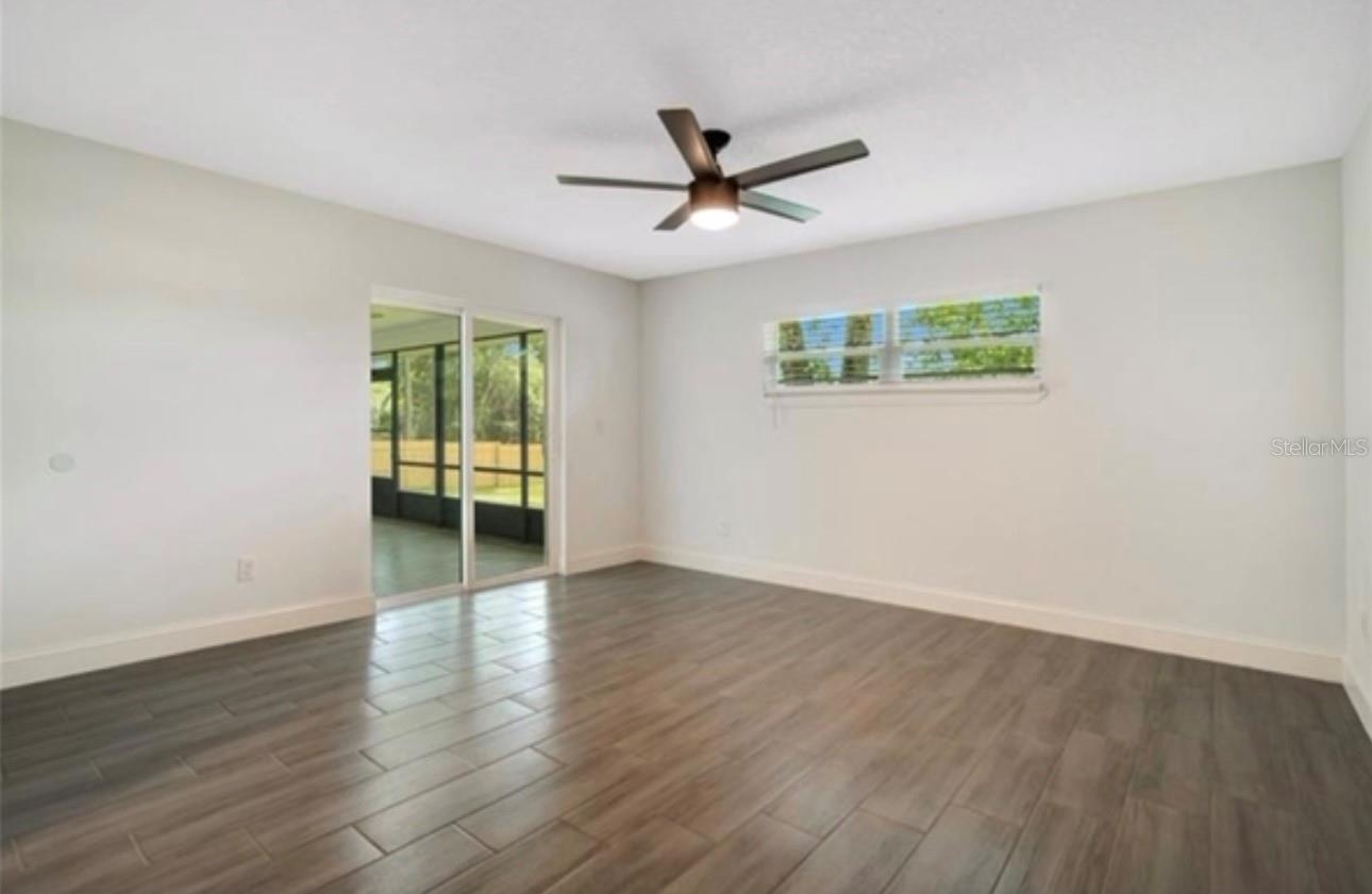 Welcome to this beautifully maintained and spacious single-family home, thoughtfully designed with comfort, functionality, and natural light in mind. The open-concept layout creates a bright and airy feel throughout the living areas, making it ideal for both everyday living and entertaining. Enjoy seamless indoor-outdoor living with sliding glass doors in both the main living space and the primary suite, leading out to a screened-in patio and an expansive backyard. The outdoor space offers exceptional privacy, with only one rear neighbor who is barely visible, giving you the peaceful retreat you’ve been looking for. Inside, the home is officially listed as a 3-bedroom, but it includes an additional flex room that can easily be used as a 4th bedroom, office, nursery, or playroom. With just the addition of a closet, it can be fully converted into a bedroom to suit your needs. Recent upgrades provide added peace of mind, including a new roof and new HVAC system, both completed in 2023. Located in a desirable area within a short walking distance to Wes Crile Park, you’ll have access to walking trails, sports courts, playgrounds, and more—perfect for active lifestyles or peaceful strolls. This home truly has it all: space, updates, privacy, and location. Come see for yourself what makes this one special!