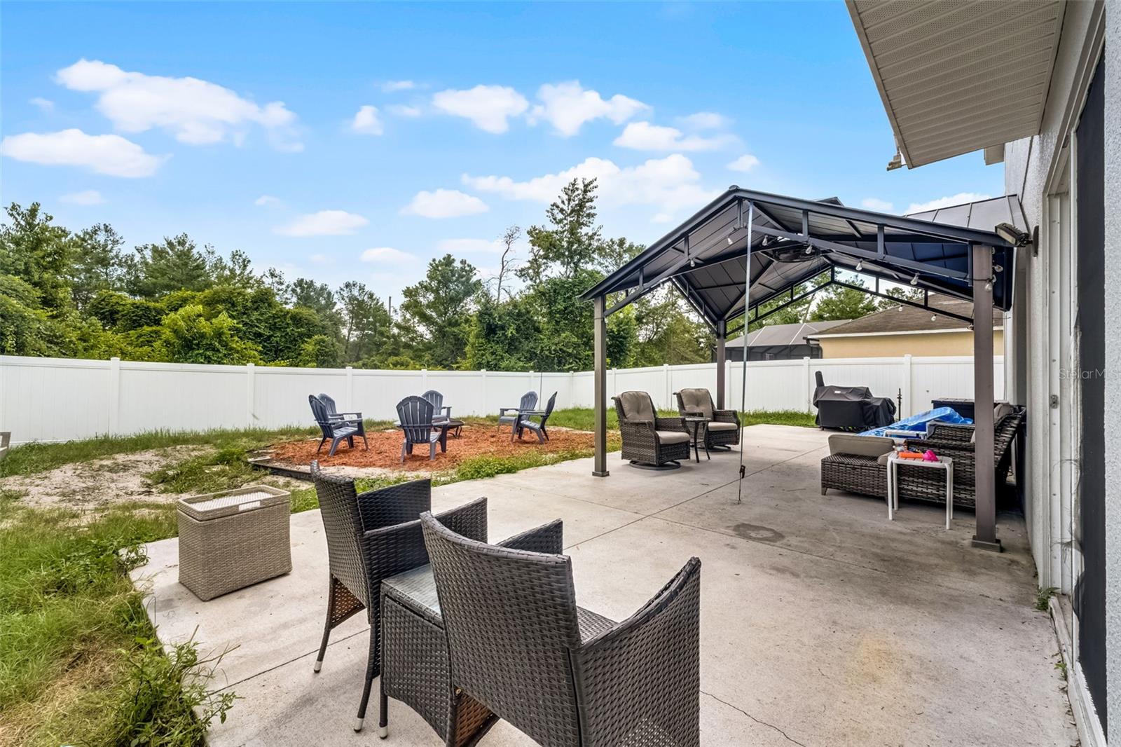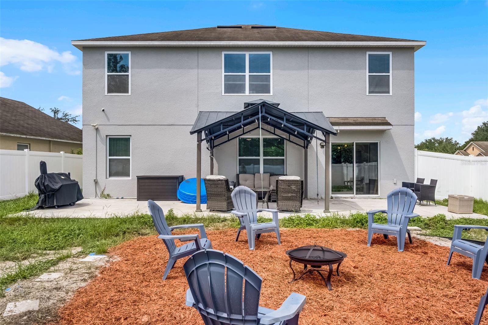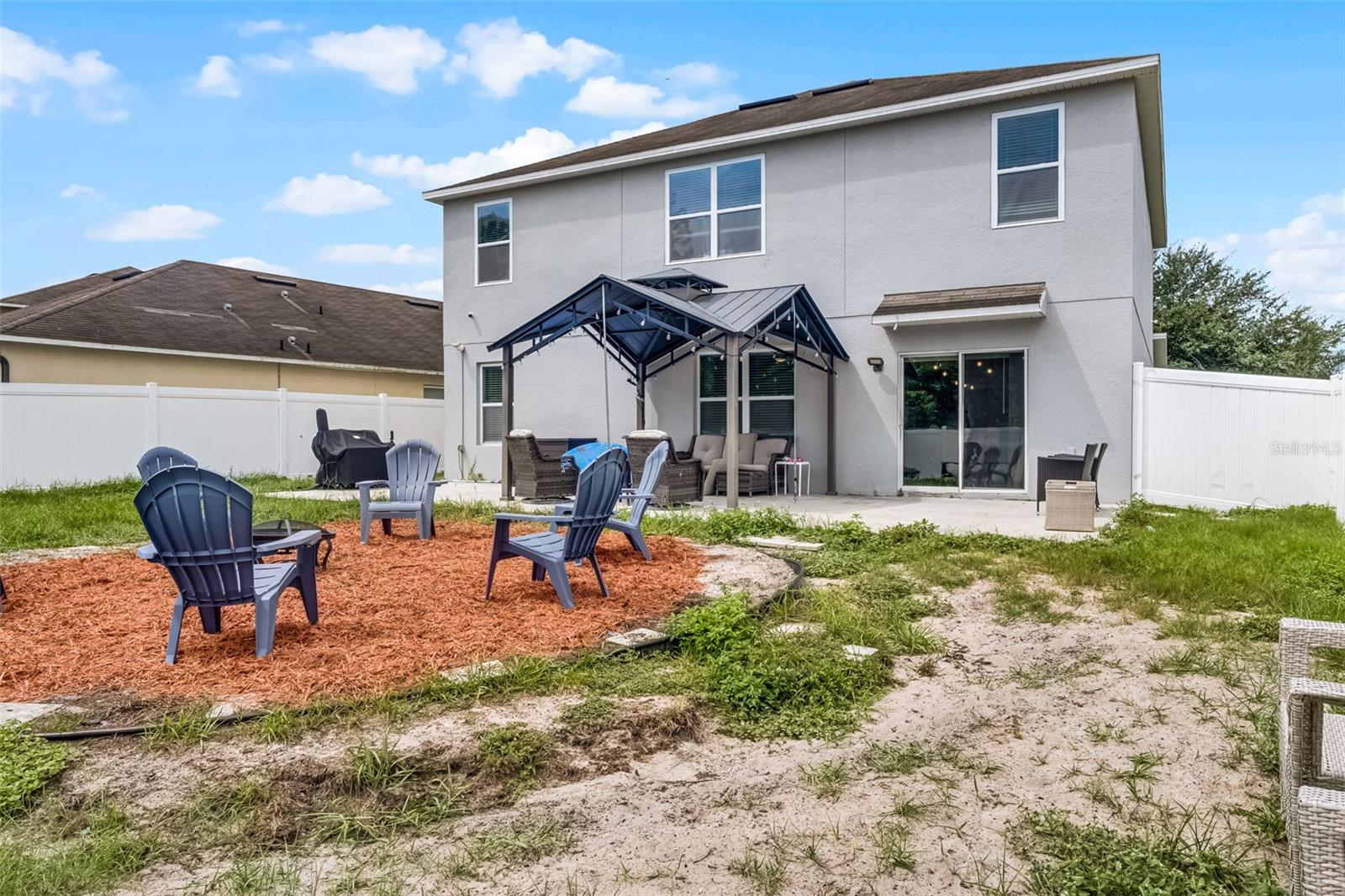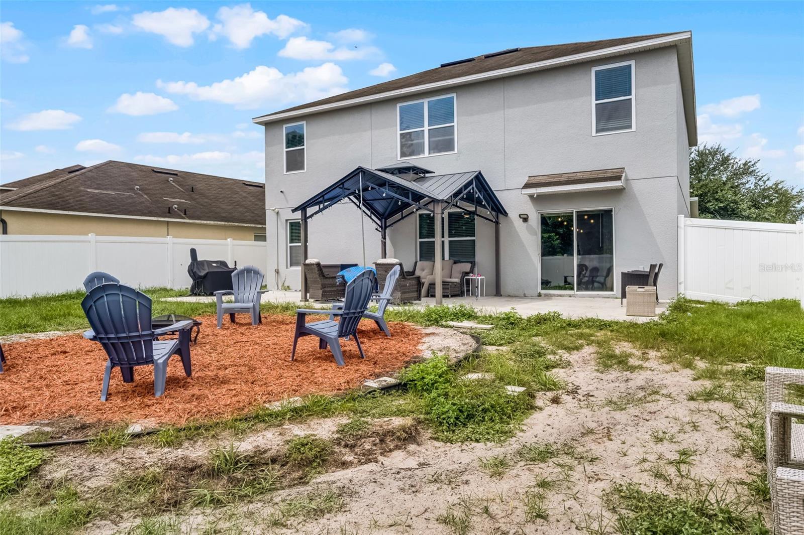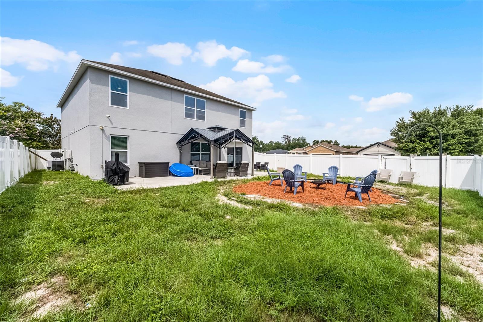 Welcome to your dream home in the desirable Arbor Ridge community of Deltona, Florida! This stunning two-story residence, built in 2017, offers a generous 2,654 square feet of air-conditioned living space and a total of 3,845 square feet under roof—giving you all the room you need to spread out, entertain, and enjoy every corner of this thoughtfully designed property. As you step through the front door, you're immediately greeted by timeless architectural details that set the tone for the entire home. From the elegant board and batten walls to the crown molding and the crisp 5 1/4 inch baseboards, every inch of this house whispers quality and charm. The heart of the home is the expansive kitchen, a true entertainer’s paradise, featuring a large center island with gleaming granite countertops and an open layout that flows seamlessly into the living area. Whether you're hosting a lively gathering or a cozy family dinner, this space is designed to bring people together. On the main floor, you'll find a spacious guest bedroom and a full bathroom—perfect for visitors or family members who prefer to avoid stairs. Upstairs, five additional oversized bedrooms offer flexible living arrangements for growing families, guests, or home office needs and brand-new carpet throughout the entire upstairs and stairwell. The luxurious primary suite is a private retreat, complete with dual sinks, his and her walk-in closets, and a separate water closet for added privacy and comfort. Also located on the second floor is a conveniently situated laundry room, making daily chores just a little bit easier. Step outside and you'll find your own backyard oasis. This oversized, fully fenced corner lot is ideal for outdoor living and entertaining. Spend your afternoons relaxing under the covered gazebo or gather around the cozy fire pit on cooler evenings. There's ample space to bring your vision to life—whether it’s adding a custom outdoor kitchen, a sparkling pool, or a lush garden retreat. Perfectly located just a two-minute drive to I-4, you're only 25 minutes from the sandy beaches and just 30 minutes from all the excitement Orlando has to offer. This home combines space, comfort, style, and location into one perfect package. Don’t miss your chance to make it yours!