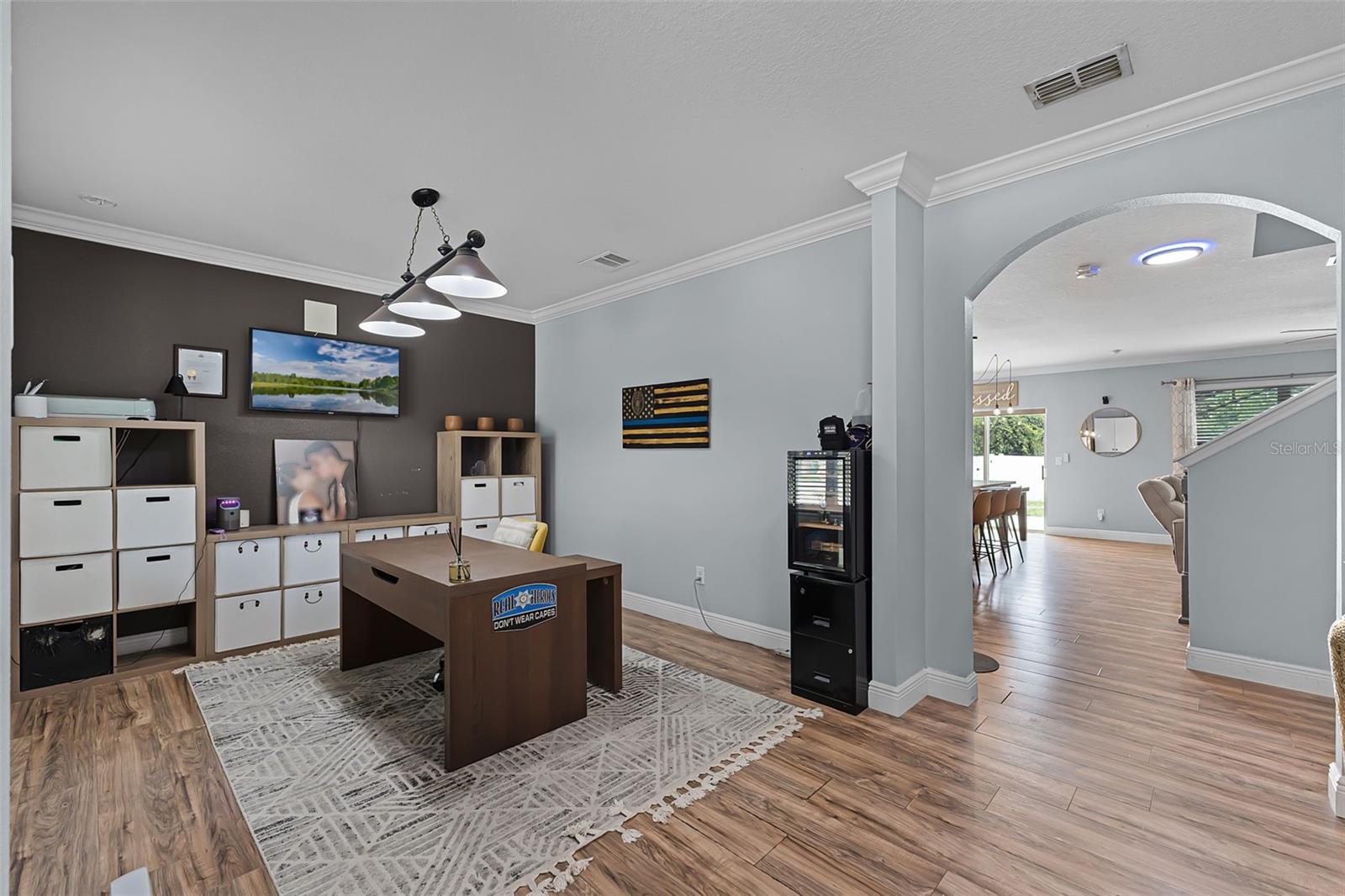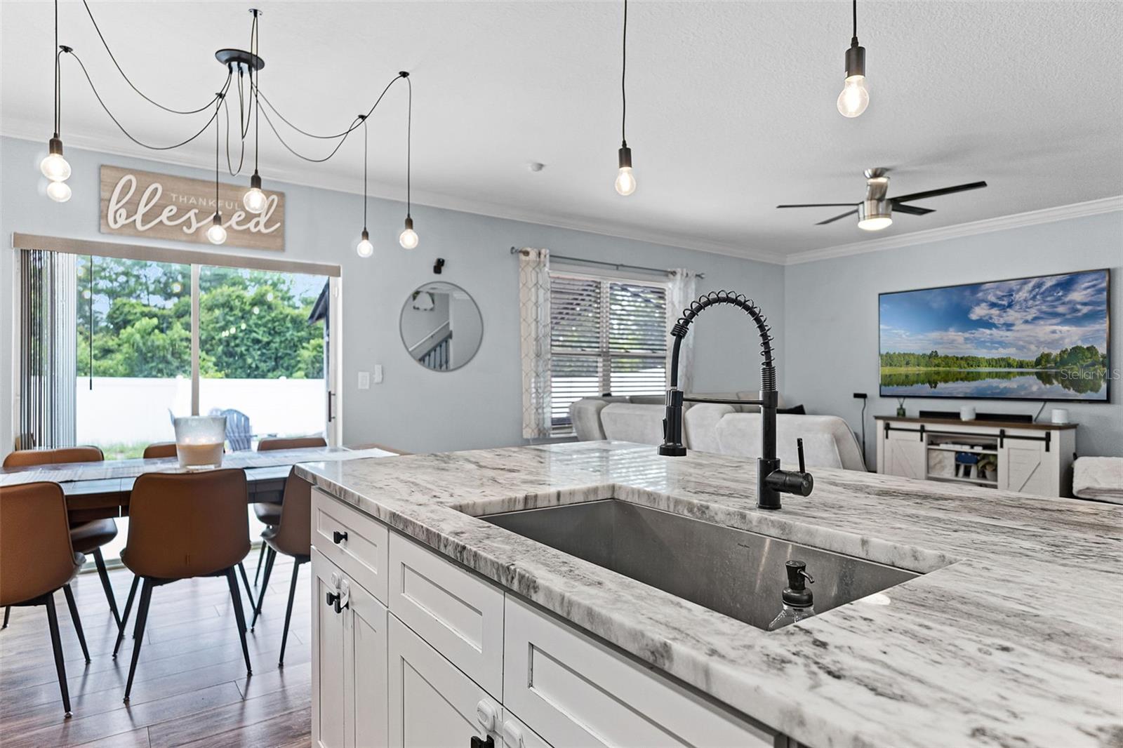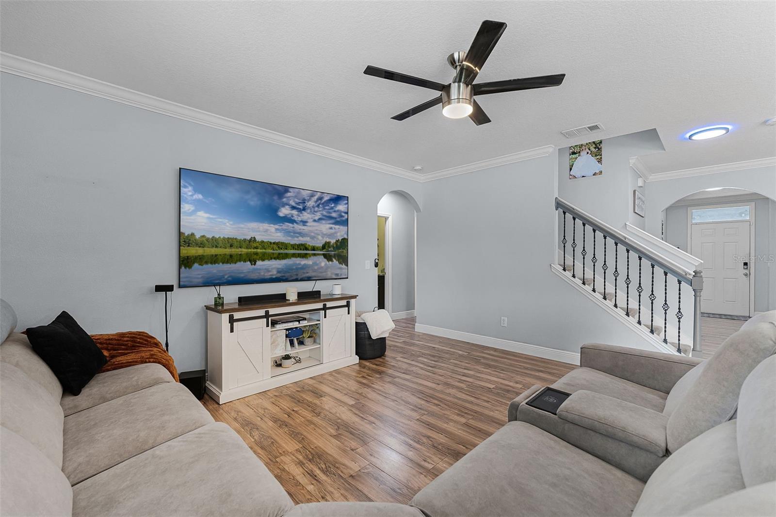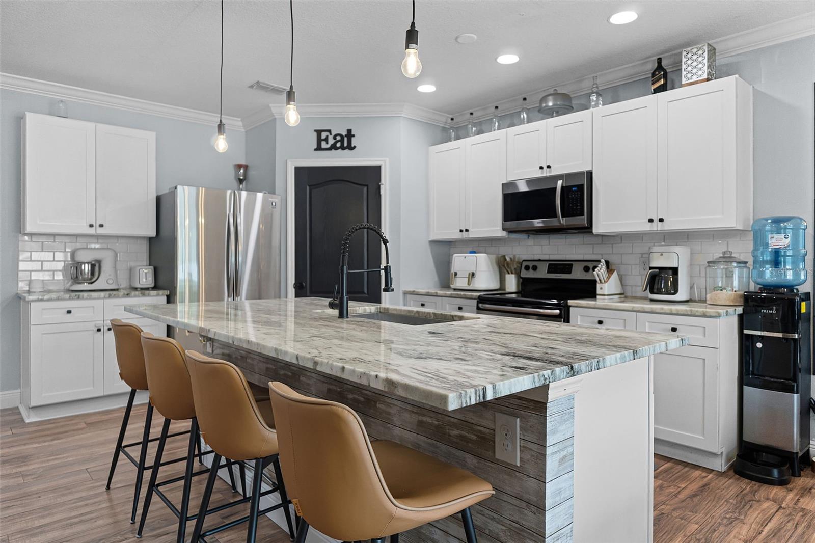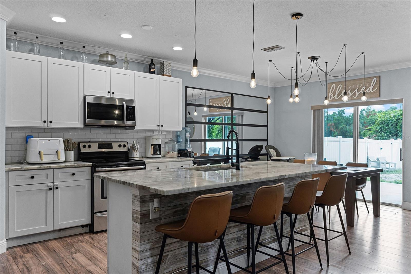 Welcome to your dream home in the desirable Arbor Ridge community of Deltona, Florida! This stunning two-story residence, built in 2017, offers a generous 2,654 square feet of air-conditioned living space and a total of 3,845 square feet under roof—giving you all the room you need to spread out, entertain, and enjoy every corner of this thoughtfully designed property. As you step through the front door, you're immediately greeted by timeless architectural details that set the tone for the entire home. From the elegant board and batten walls to the crown molding and the crisp 5 1/4 inch baseboards, every inch of this house whispers quality and charm. The heart of the home is the expansive kitchen, a true entertainer’s paradise, featuring a large center island with gleaming granite countertops and an open layout that flows seamlessly into the living area. Whether you're hosting a lively gathering or a cozy family dinner, this space is designed to bring people together. On the main floor, you'll find a spacious guest bedroom and a full bathroom—perfect for visitors or family members who prefer to avoid stairs. Upstairs, five additional oversized bedrooms offer flexible living arrangements for growing families, guests, or home office needs and brand-new carpet throughout the entire upstairs and stairwell. The luxurious primary suite is a private retreat, complete with dual sinks, his and her walk-in closets, and a separate water closet for added privacy and comfort. Also located on the second floor is a conveniently situated laundry room, making daily chores just a little bit easier. Step outside and you'll find your own backyard oasis. This oversized, fully fenced corner lot is ideal for outdoor living and entertaining. Spend your afternoons relaxing under the covered gazebo or gather around the cozy fire pit on cooler evenings. There's ample space to bring your vision to life—whether it’s adding a custom outdoor kitchen, a sparkling pool, or a lush garden retreat. Perfectly located just a two-minute drive to I-4, you're only 25 minutes from the sandy beaches and just 30 minutes from all the excitement Orlando has to offer. This home combines space, comfort, style, and location into one perfect package. Don’t miss your chance to make it yours!